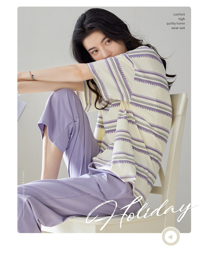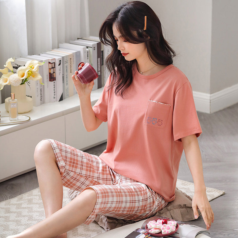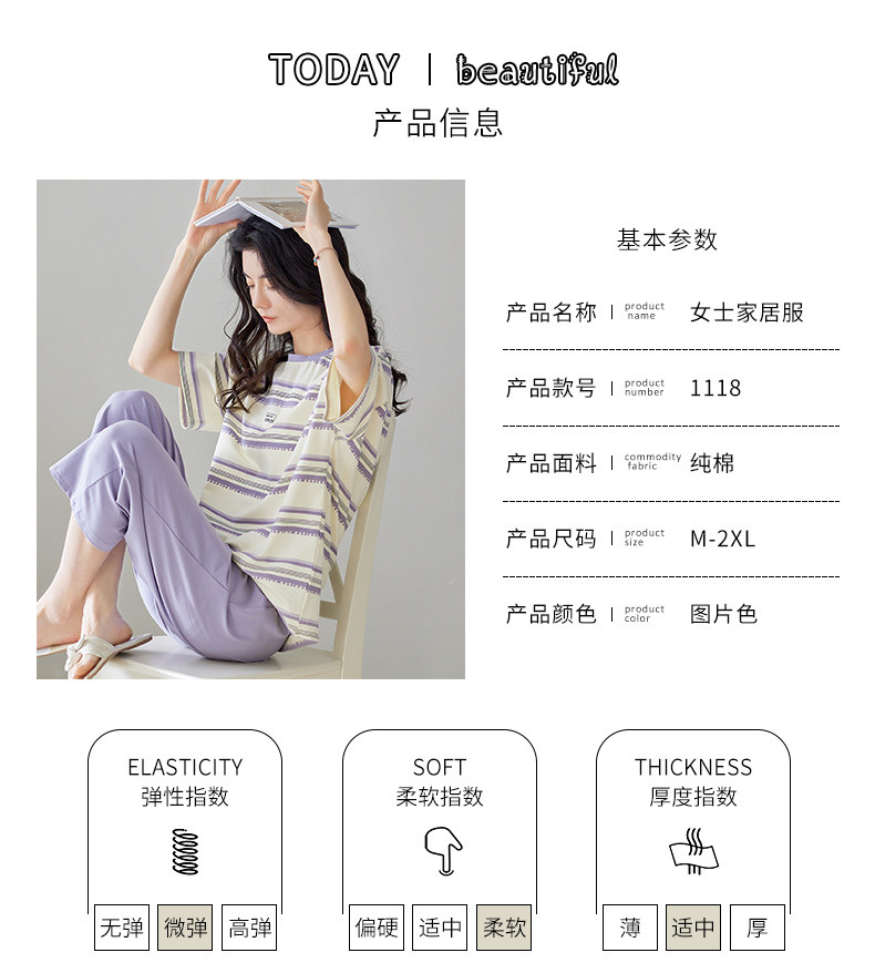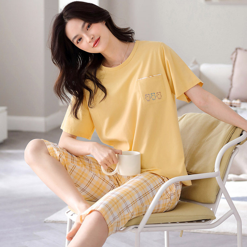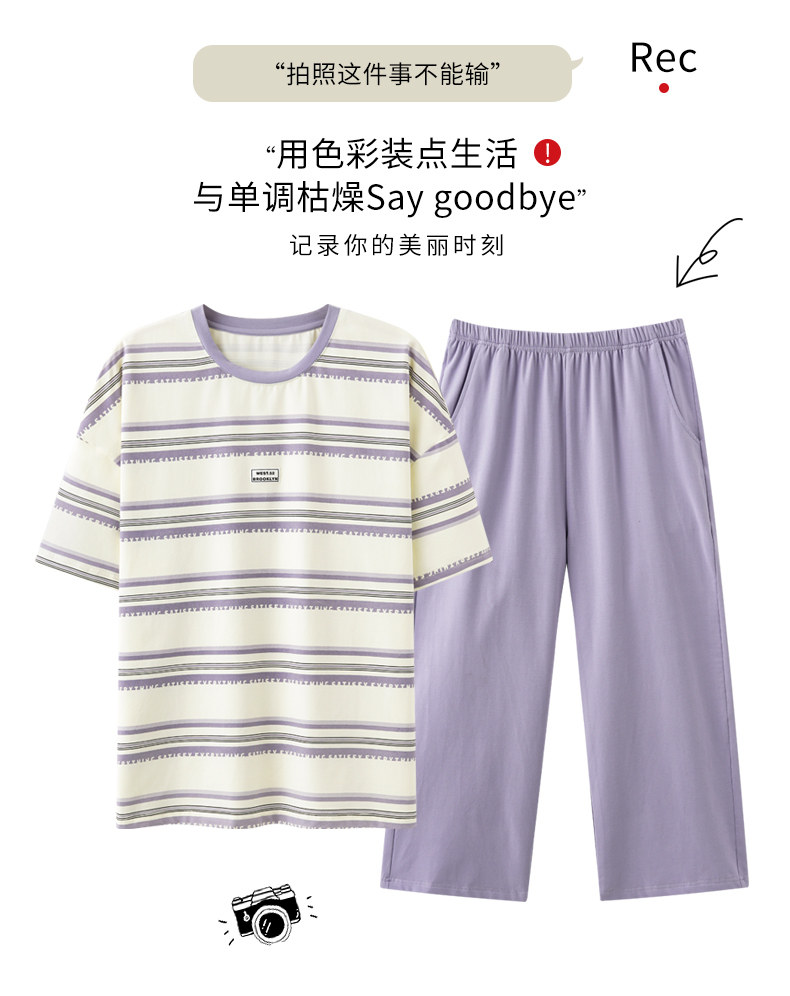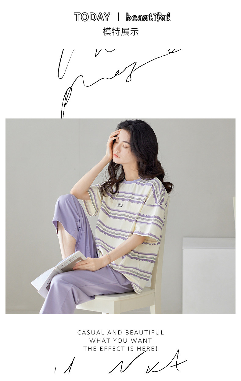 秋鹿 Хлопковые тонкие штаны с круглым воротником, летняя мультяшная комфортная пижама, свободный крой