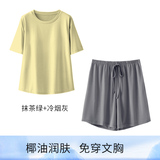 Топ с чашечками, летняя тонкая пижама, шелковые шорты, короткий рукав, большой размер