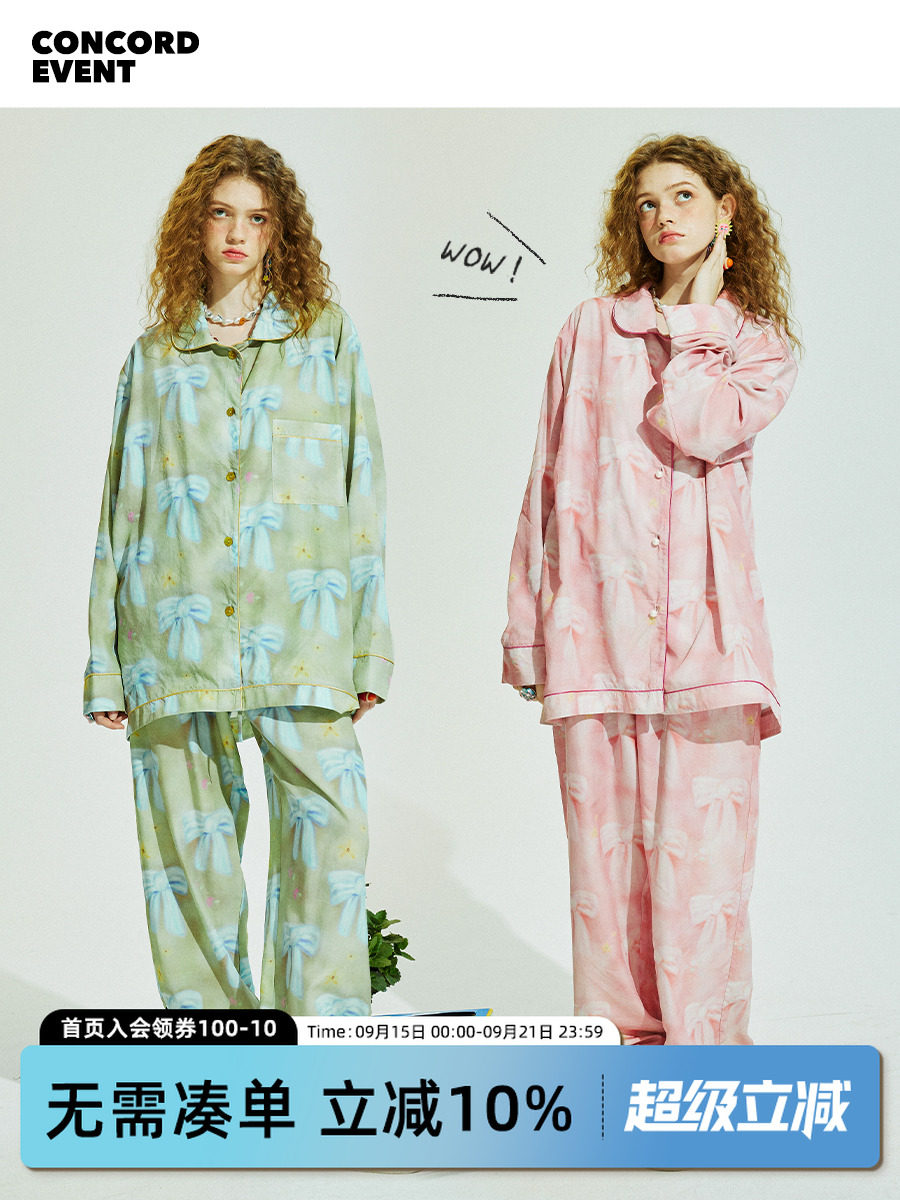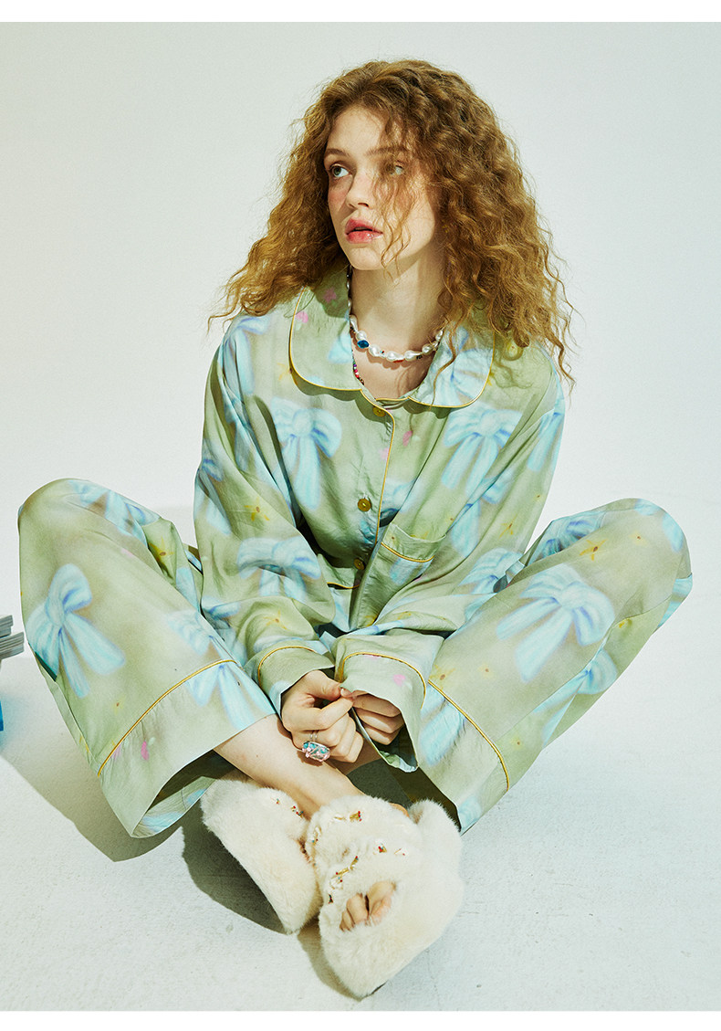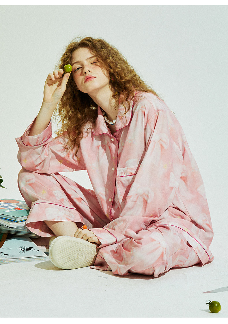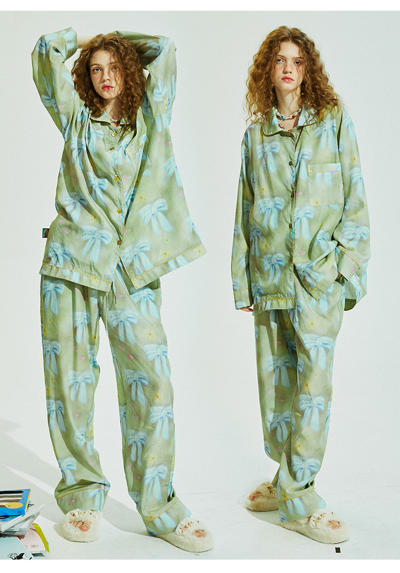 Осенняя комфортная пижама с бантиком, комплект