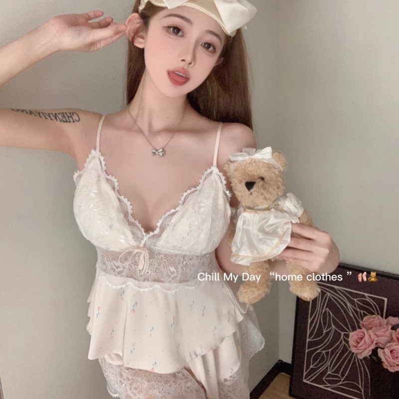 Бюстгалтер, шорты, летняя пижама, кружевной сексуальный милый топ с чашечками, эффект подтяжки