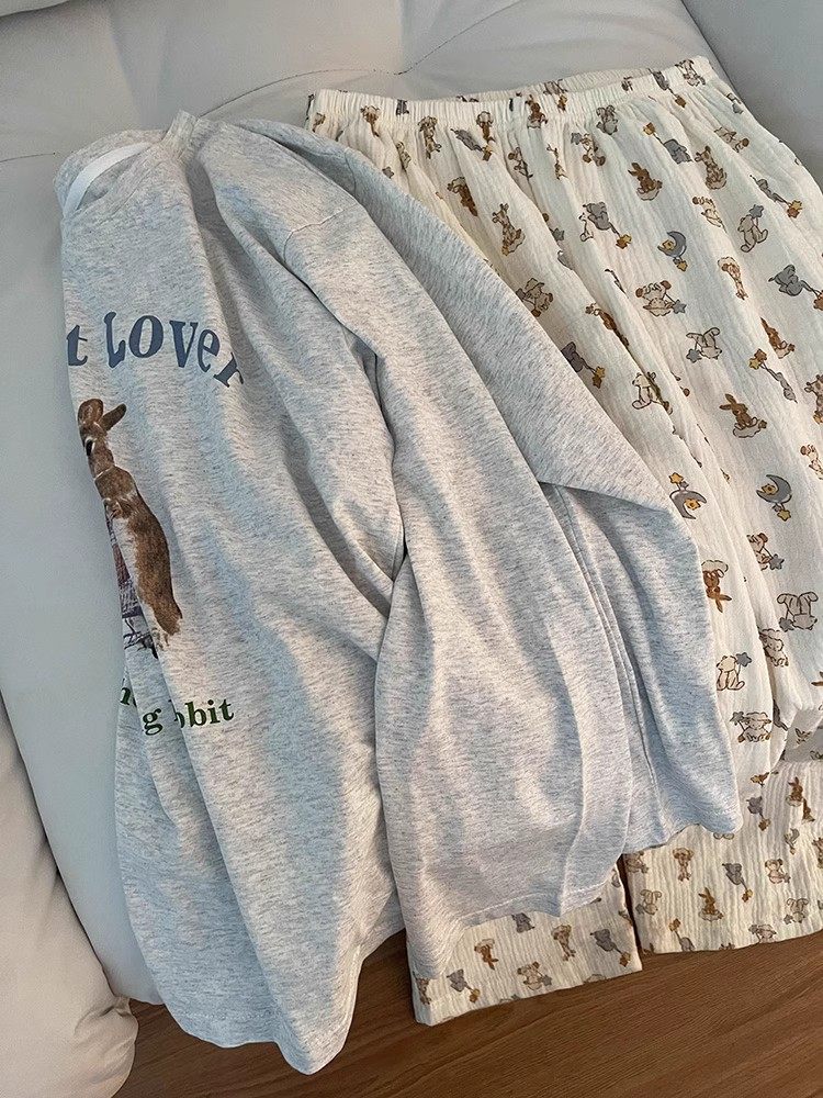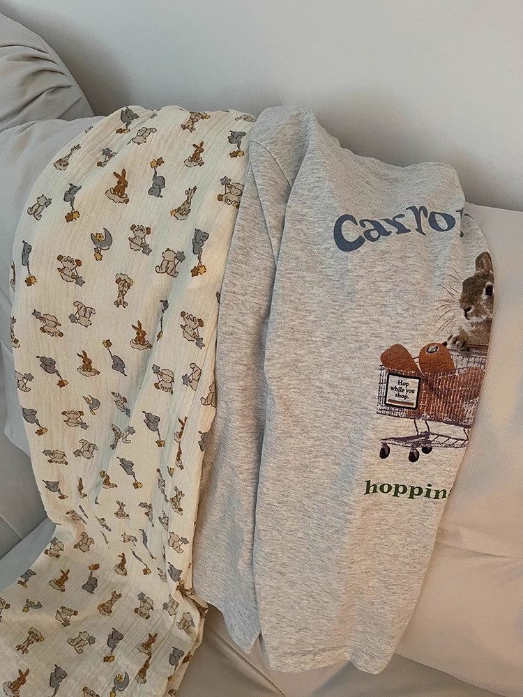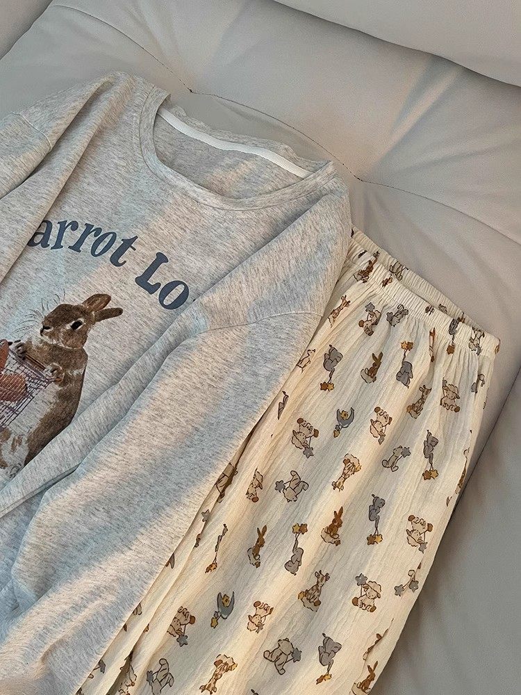 Корейские женские весенние и осенние пижамы из чистого хлопка 2024, новый стиль для девочек, милые и могут выходить на улицу, хлопковые марлевые брюки, украшение для дома