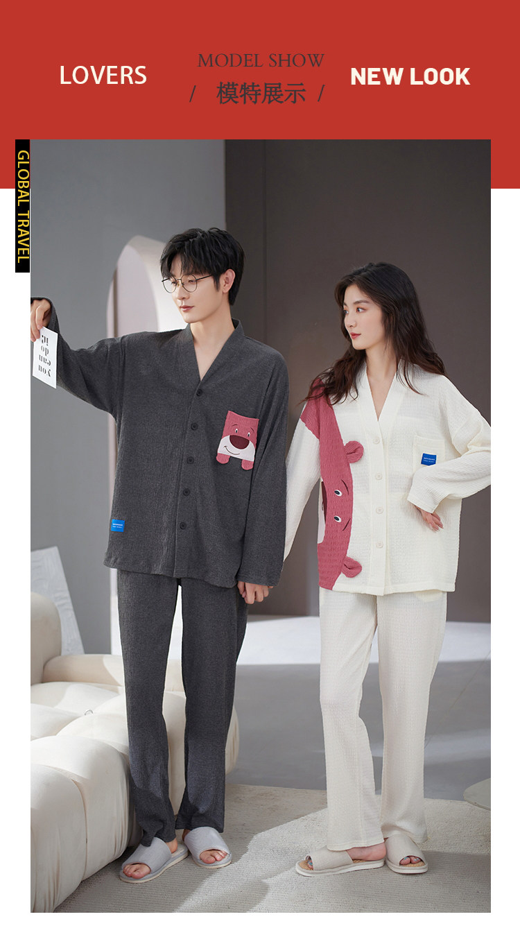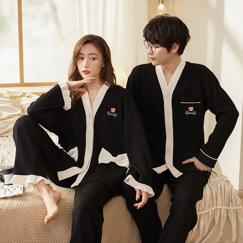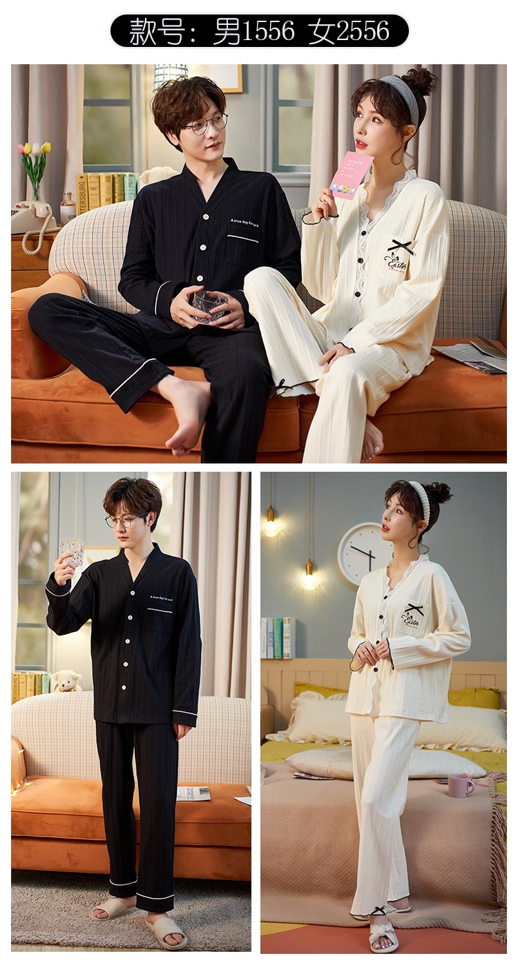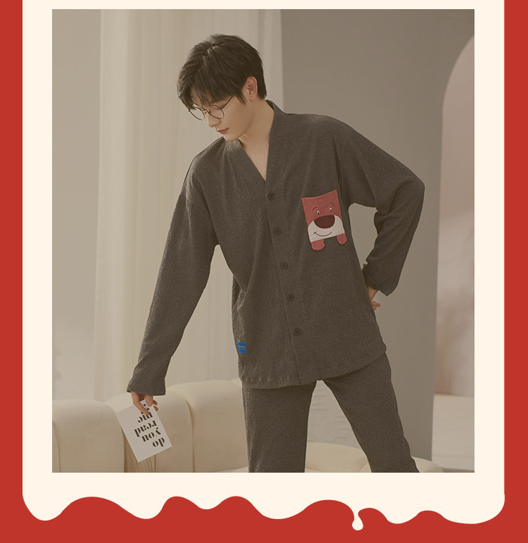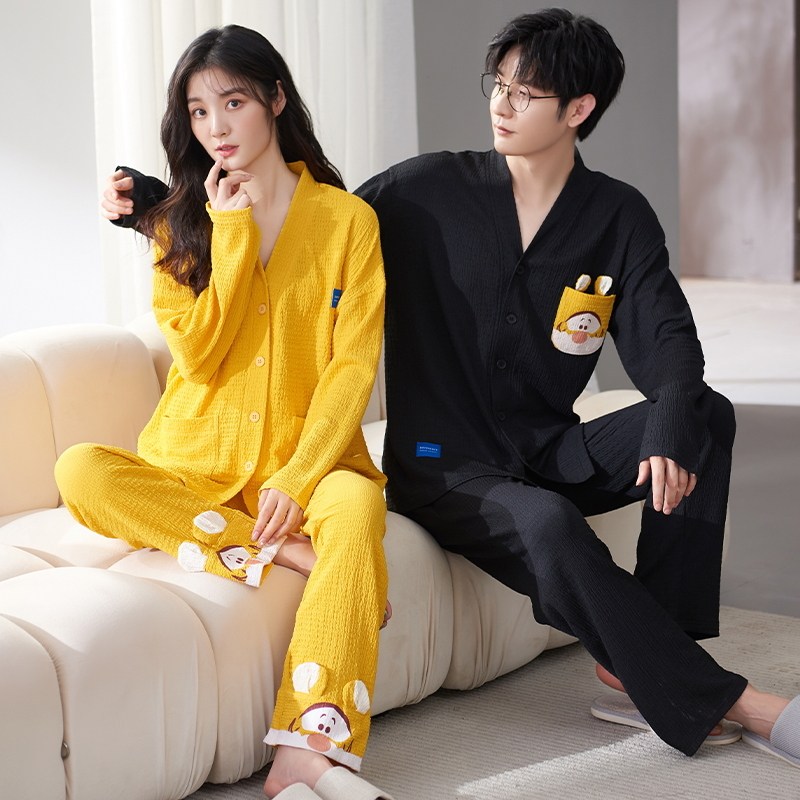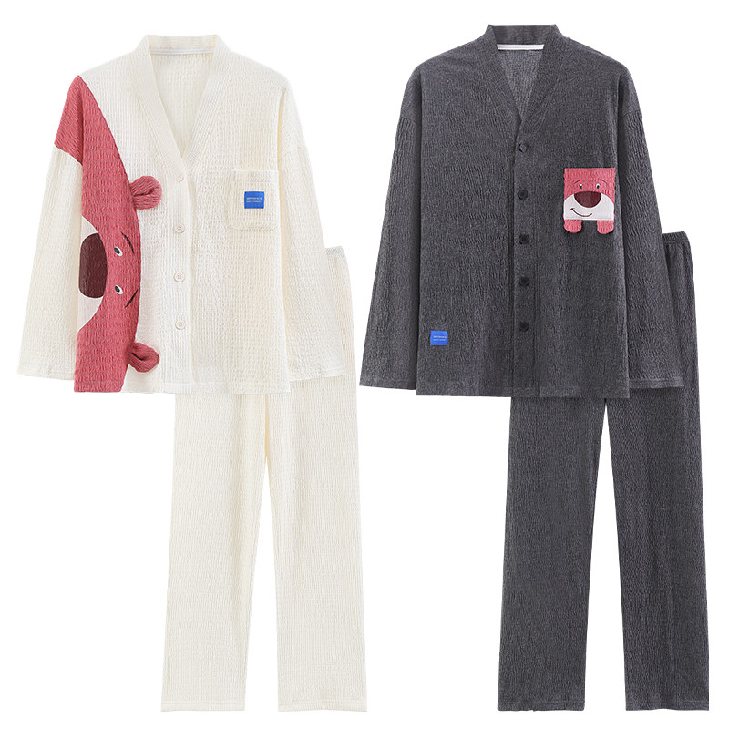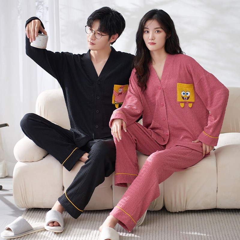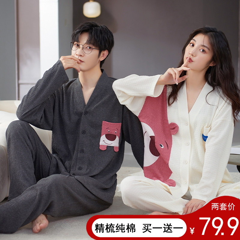 Весенняя летняя пижама, хлопковый лонгслив, мужские штаны, осенний шелковистый комплект, для влюбленных