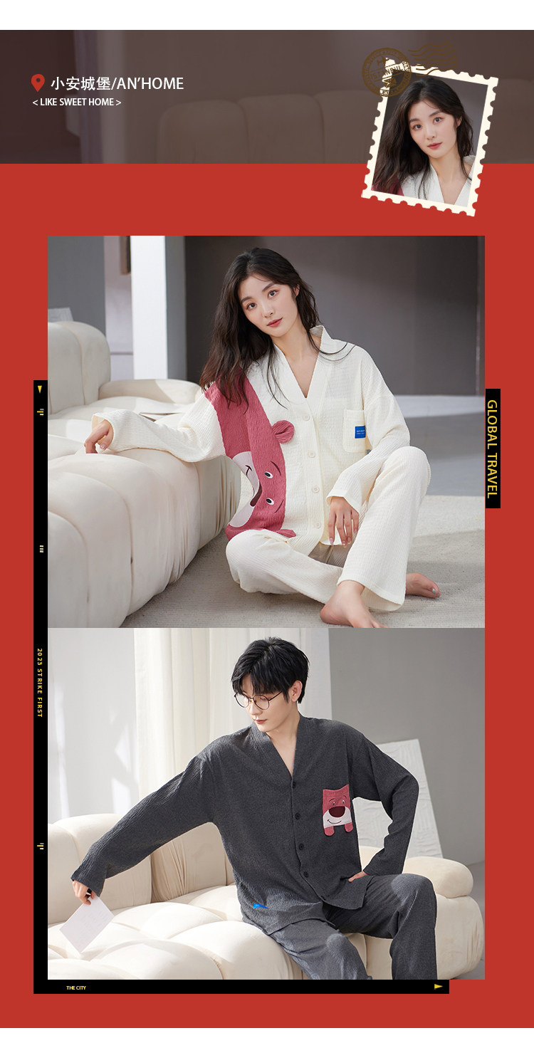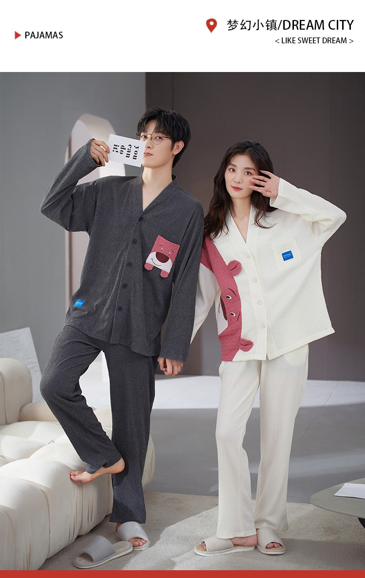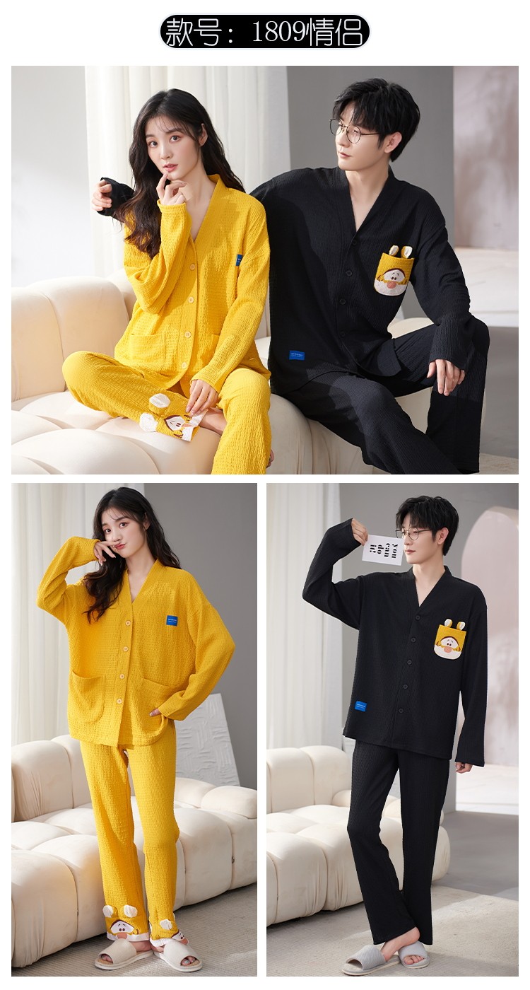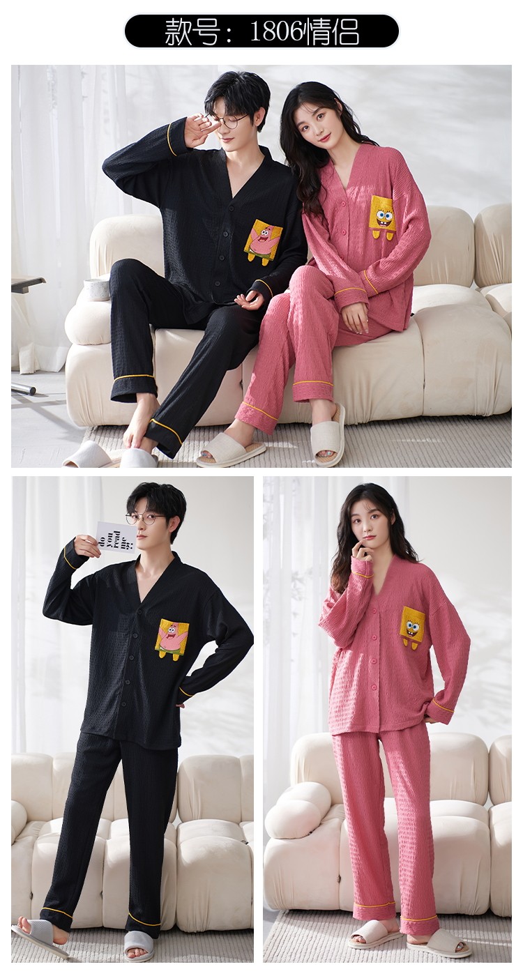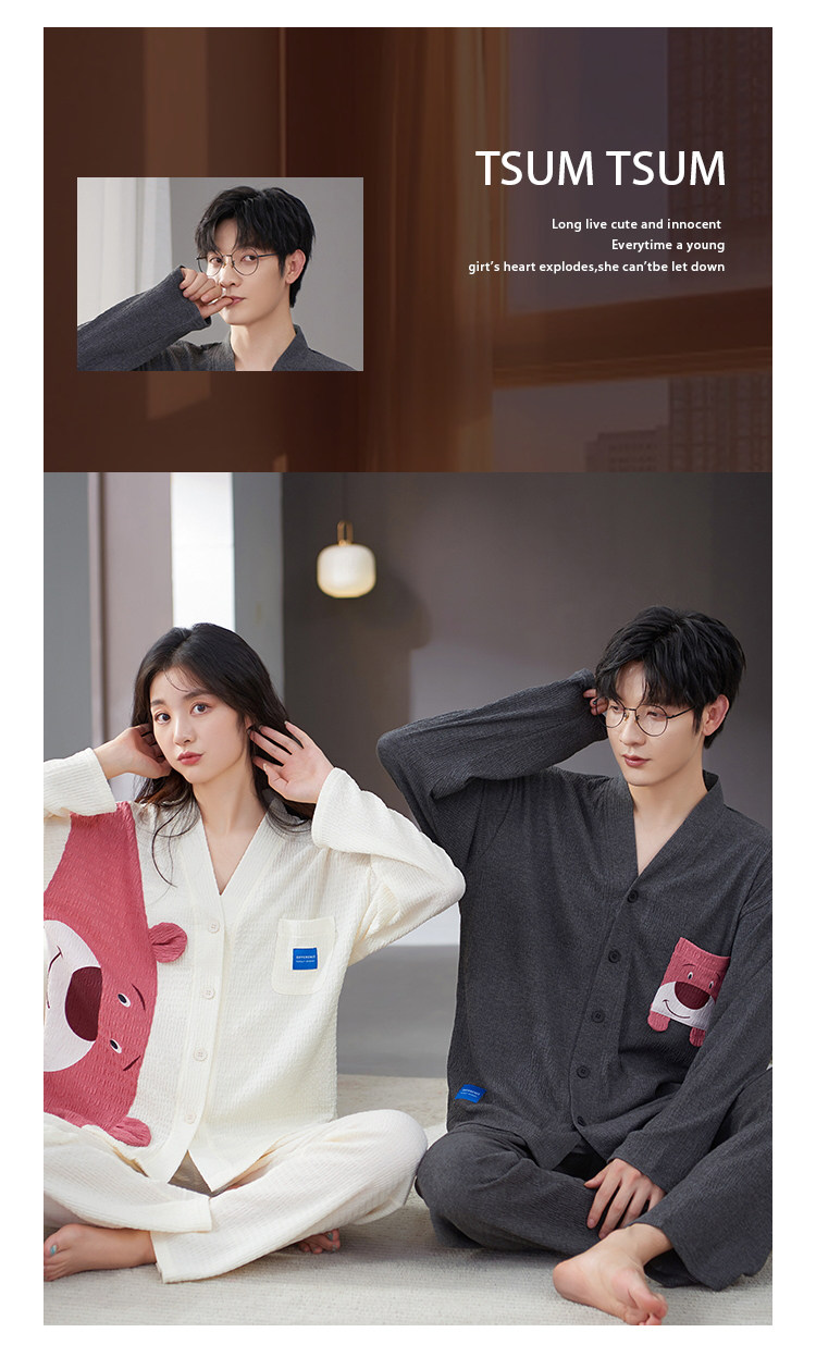 Весенняя летняя пижама, хлопковый лонгслив, мужские штаны, осенний шелковистый комплект, для влюбленных