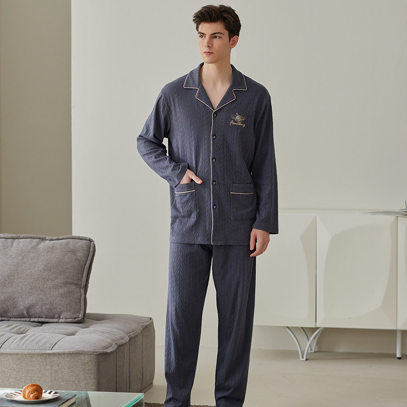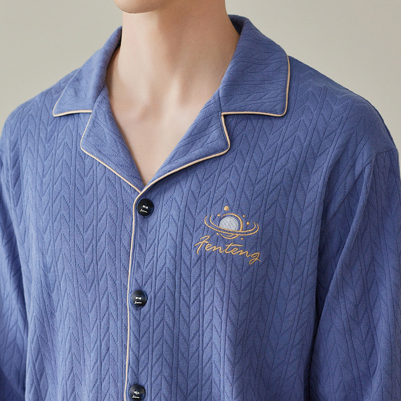 芬腾 Демисезонная пижама, хлопковый лонгслив, нарукавники, комплект, кардиган, мужской стиль, оверсайз, большой размер