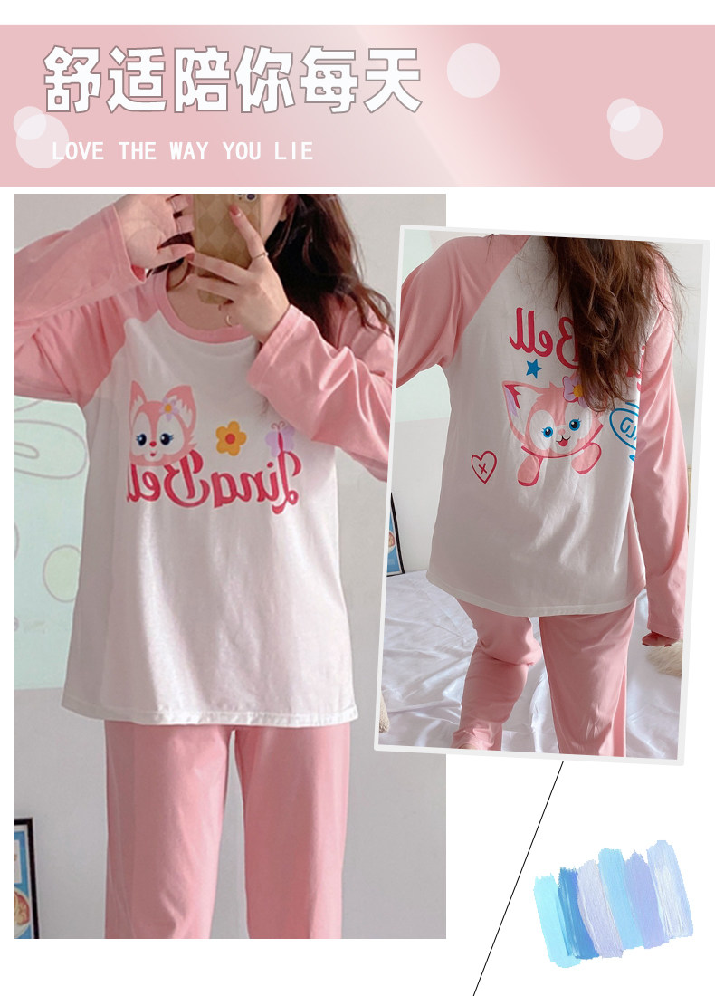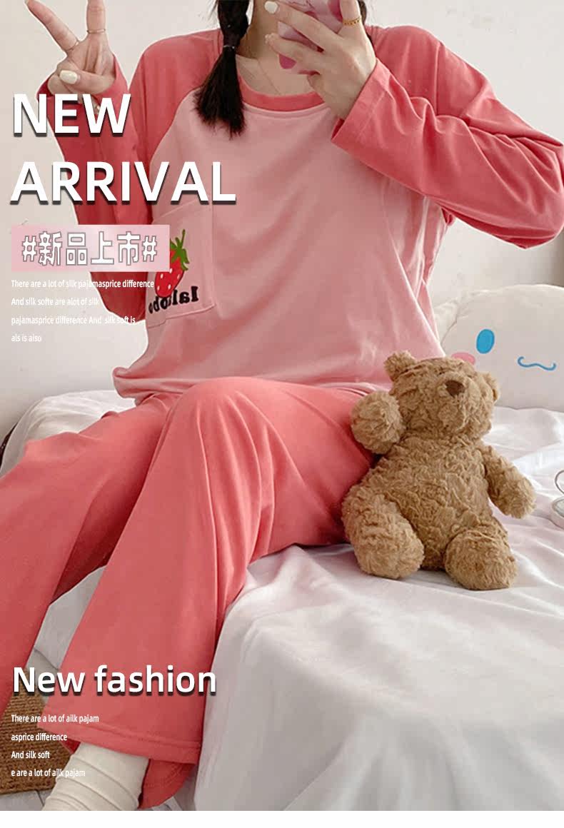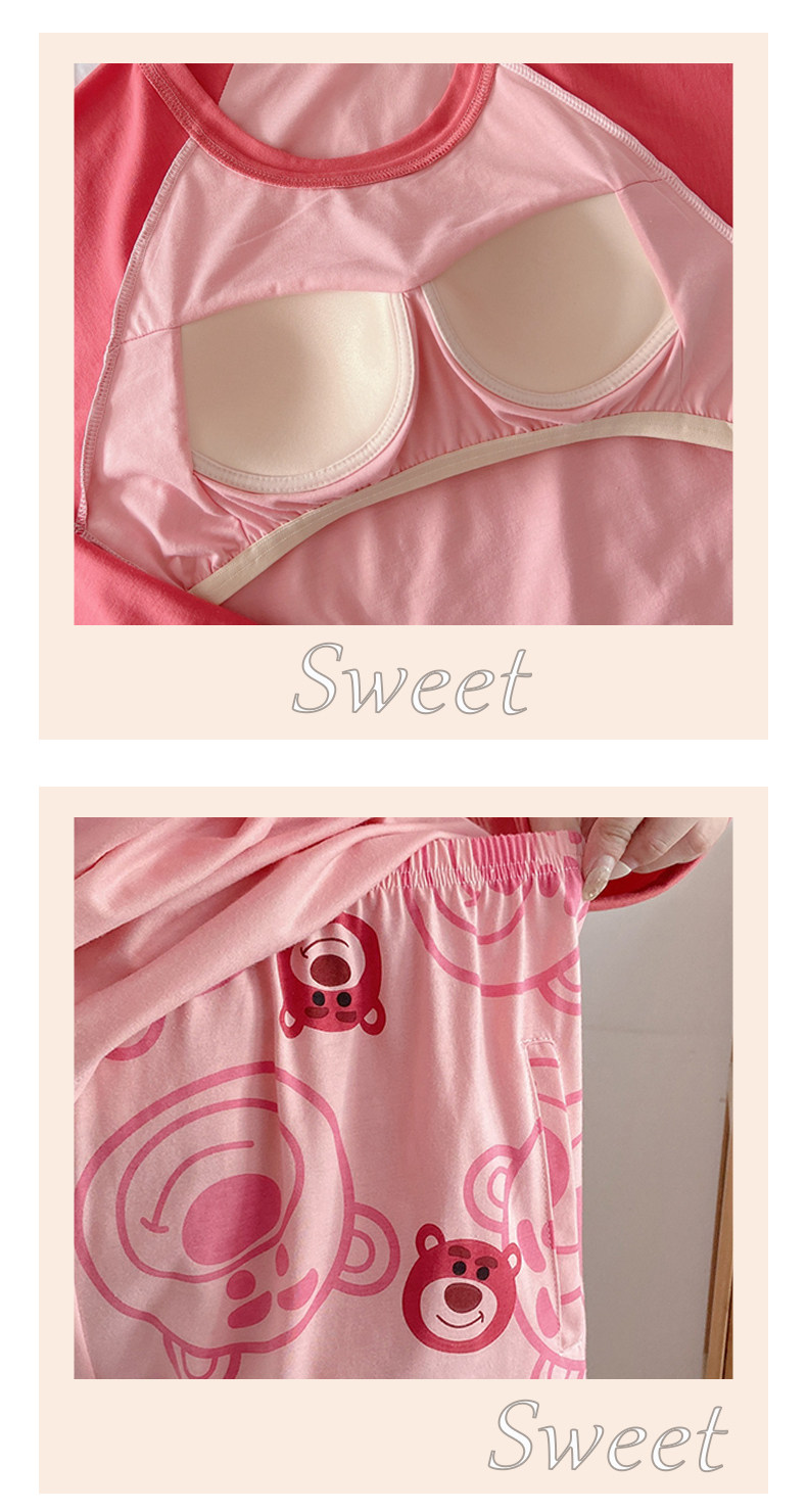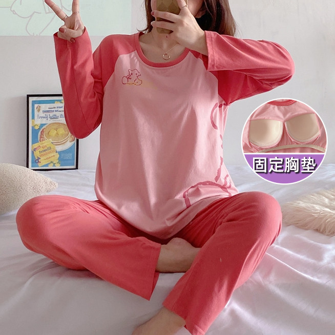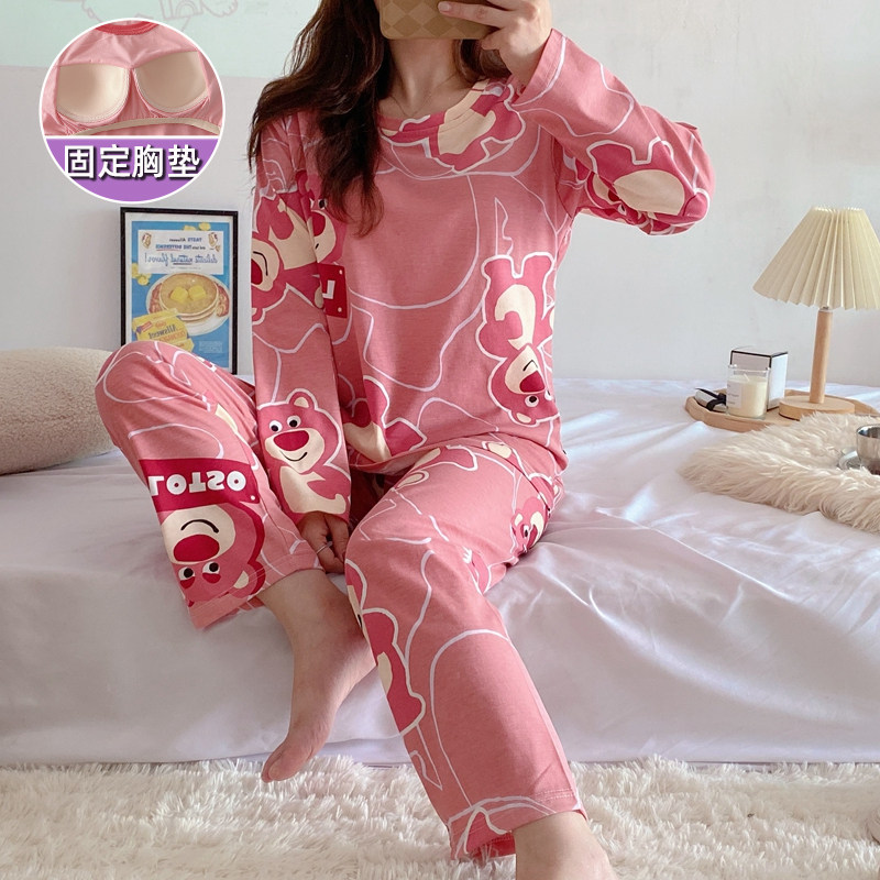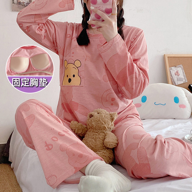 Вставки в бюстгальтер, пижама, осенний хлопковый лонгслив, мультяшный милый комплект для школьников и студентов, простой и элегантный дизайн