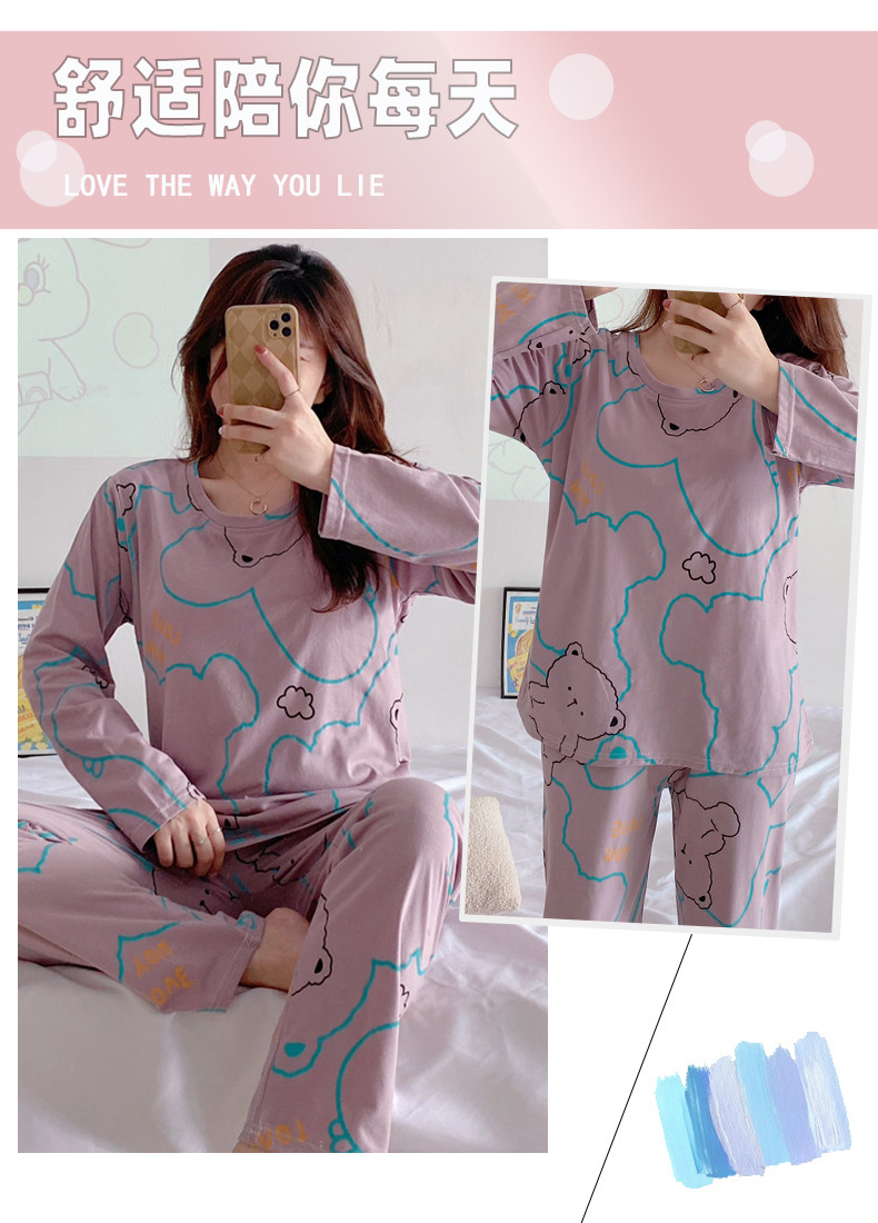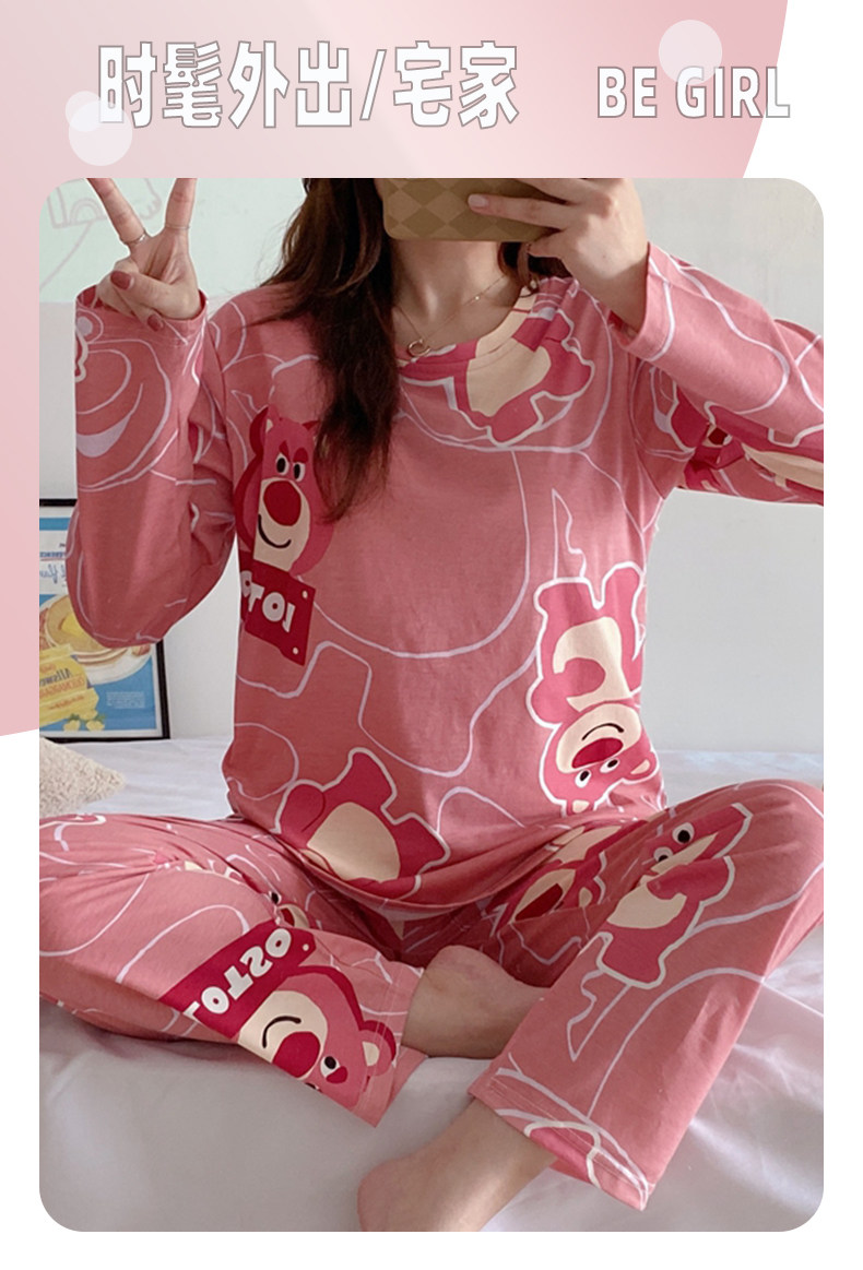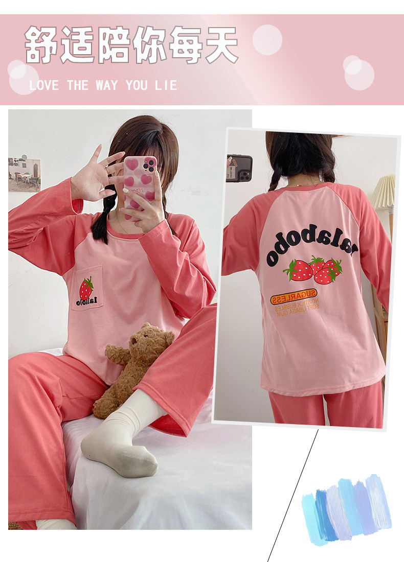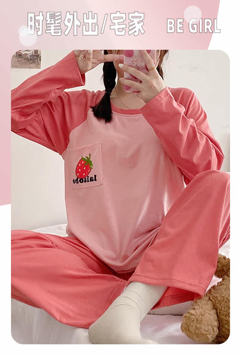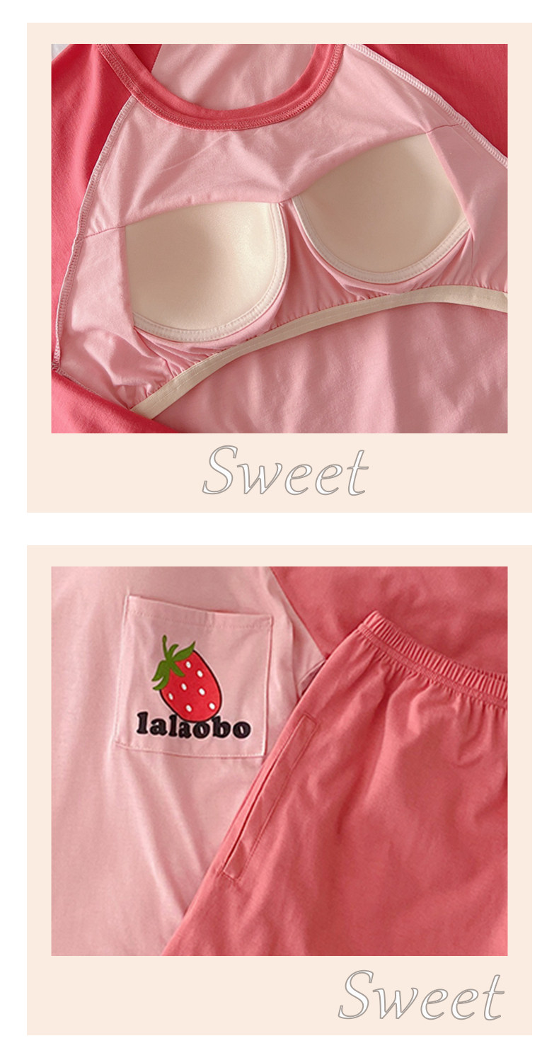 Вставки в бюстгальтер, пижама, осенний хлопковый лонгслив, мультяшный милый комплект для школьников и студентов, простой и элегантный дизайн