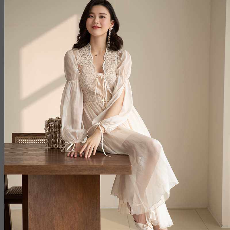 Утренняя халата невеста высокого класса нишевая кружевная спящая красавица длинная
