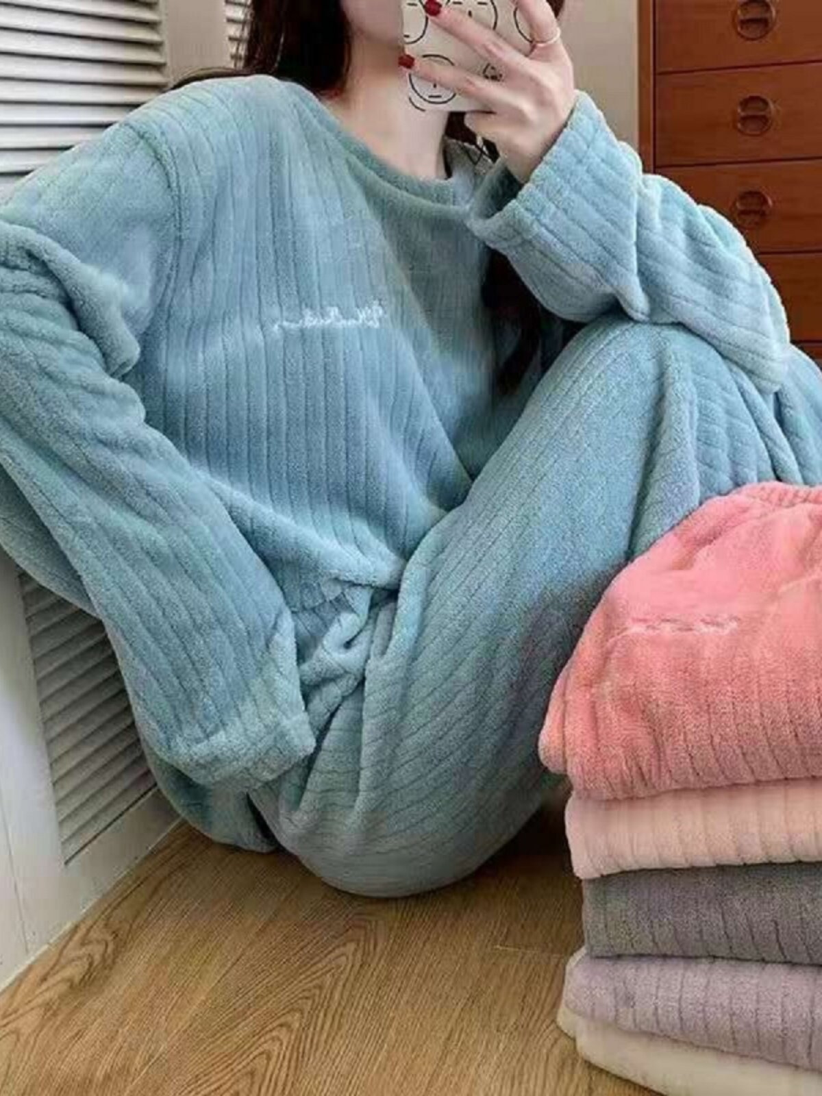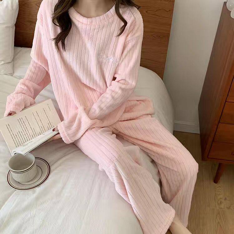 Фланелевый удерживающий тепло цветной комплект для отдыха, зимняя милая спортивная пижама, свободный крой