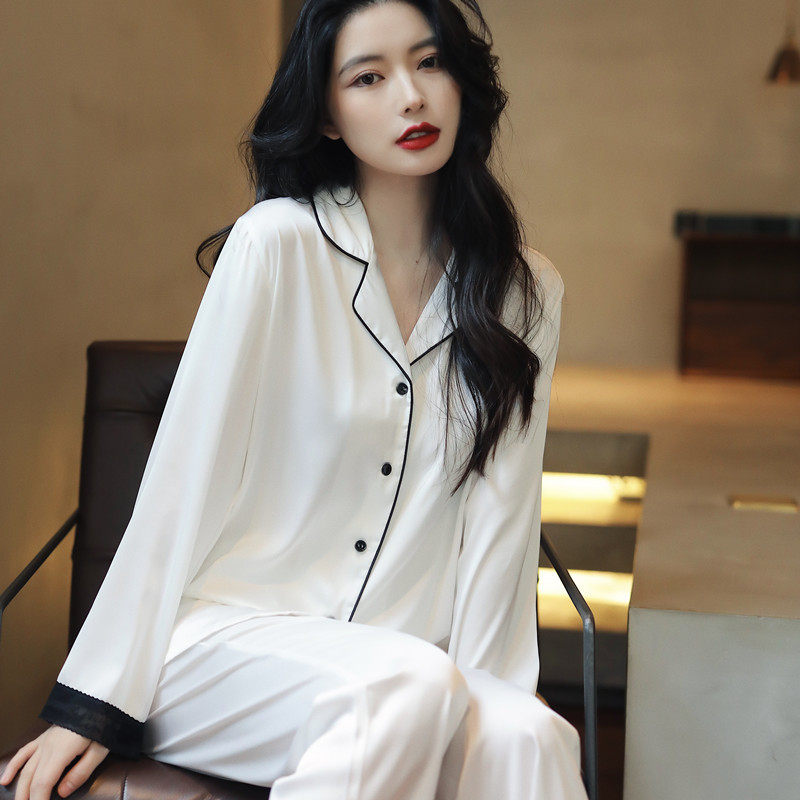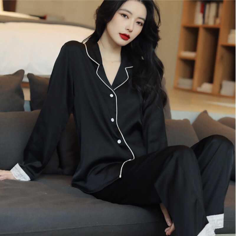 Шелковая осенняя демисезонная пижама, тонкий лонгслив, шелковый комплект, летний костюм, изысканный стиль, популярно в интернете
