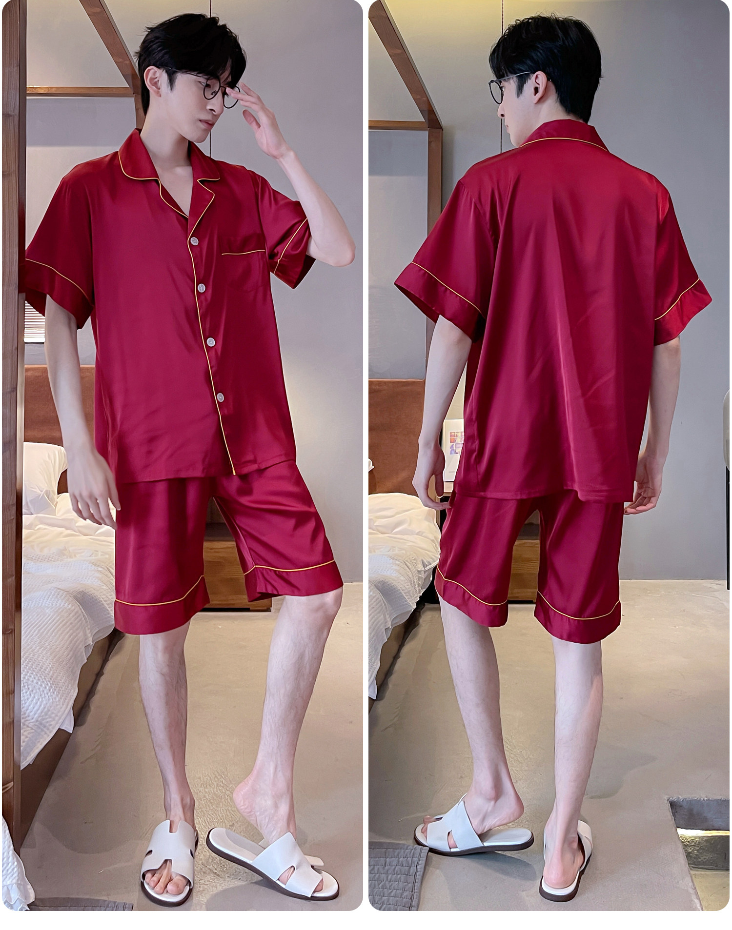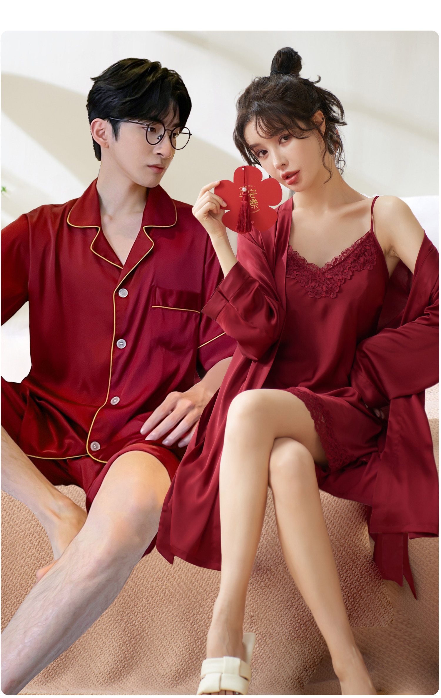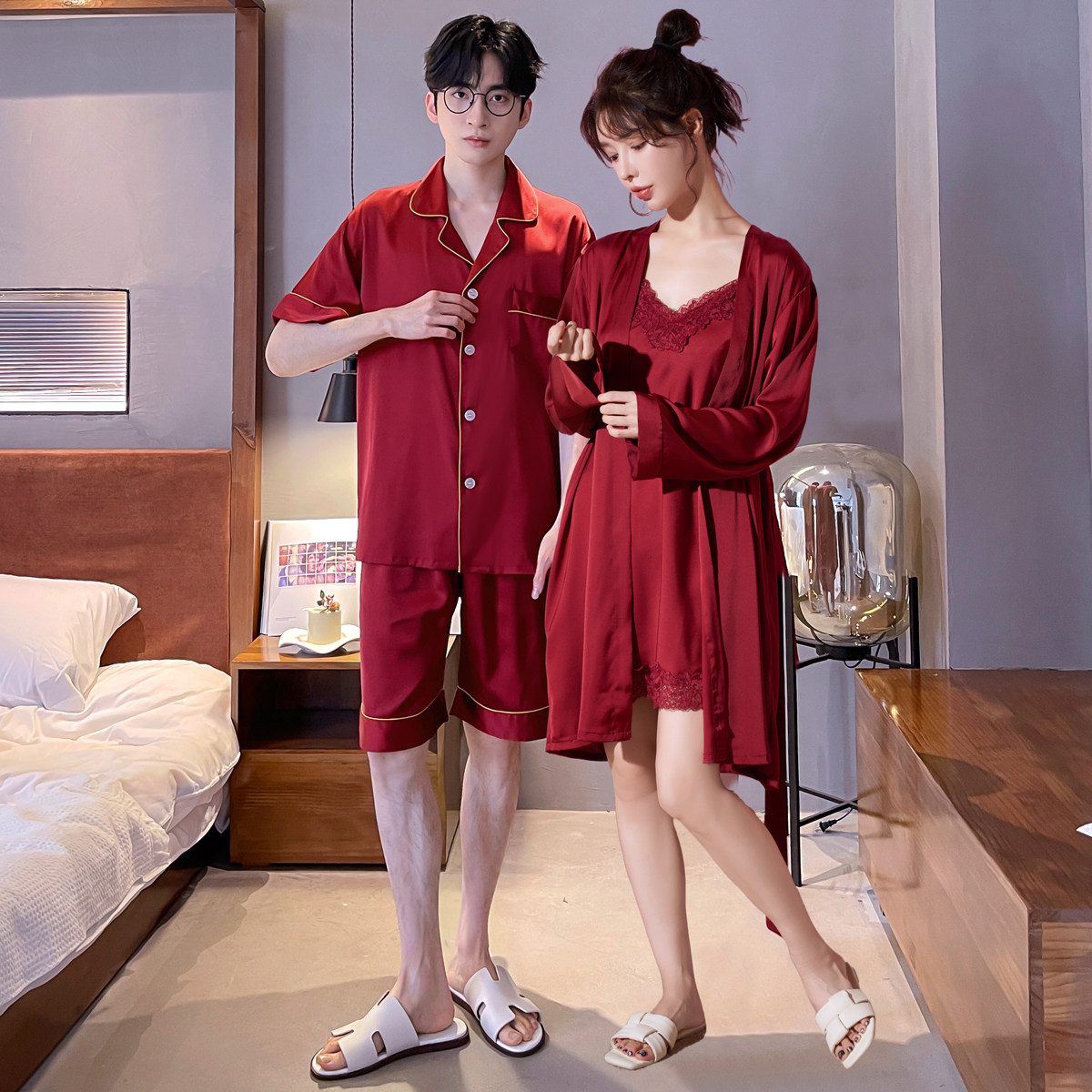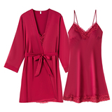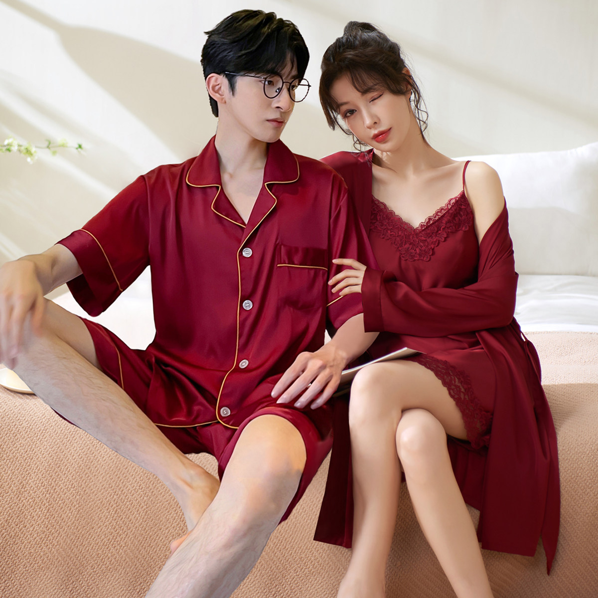 乐姿梦 Летняя шелковая пижама для невесты, нарукавники, красный цветной комплект, высококлассный оберег на день рождения, для влюбленных, короткий рукав