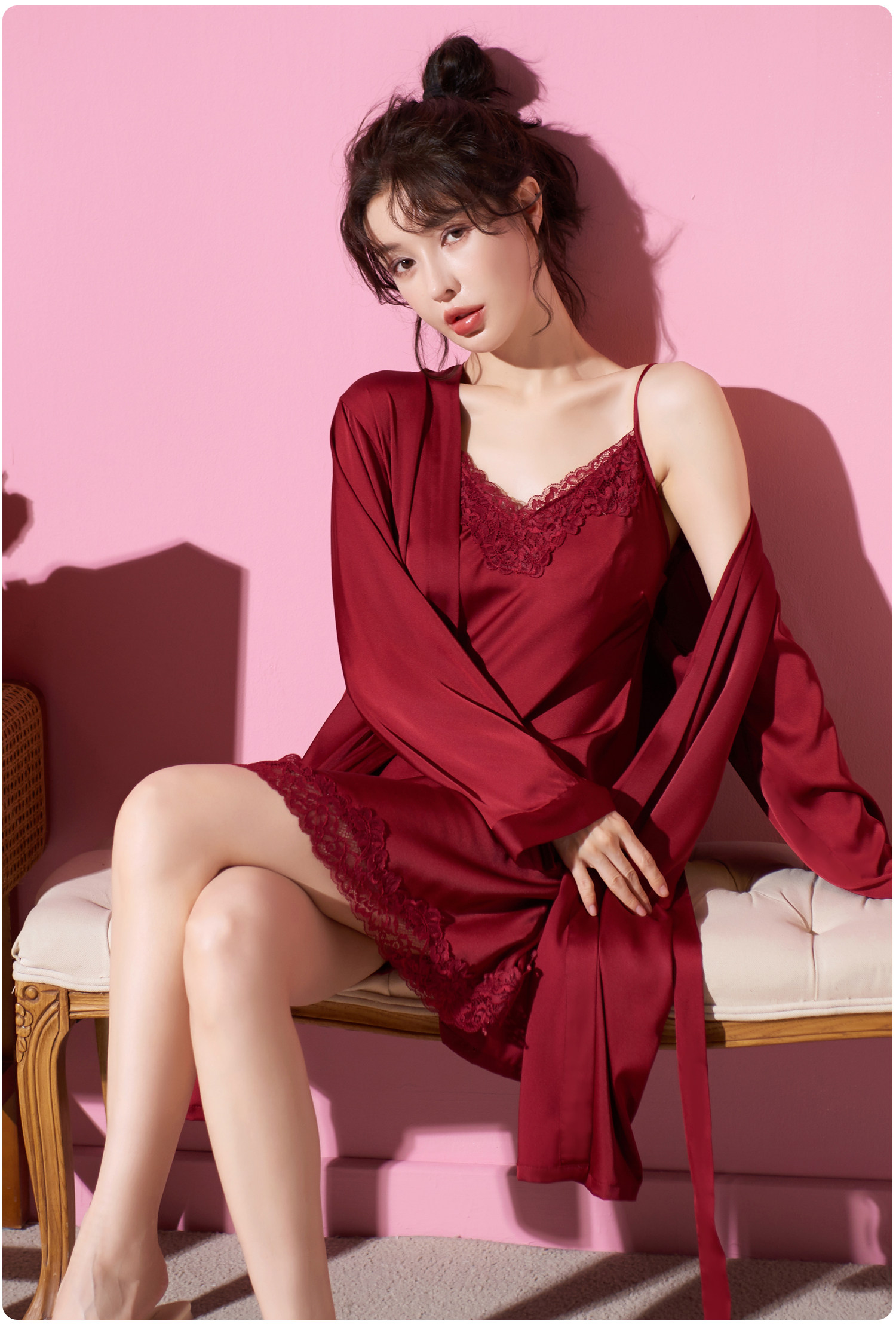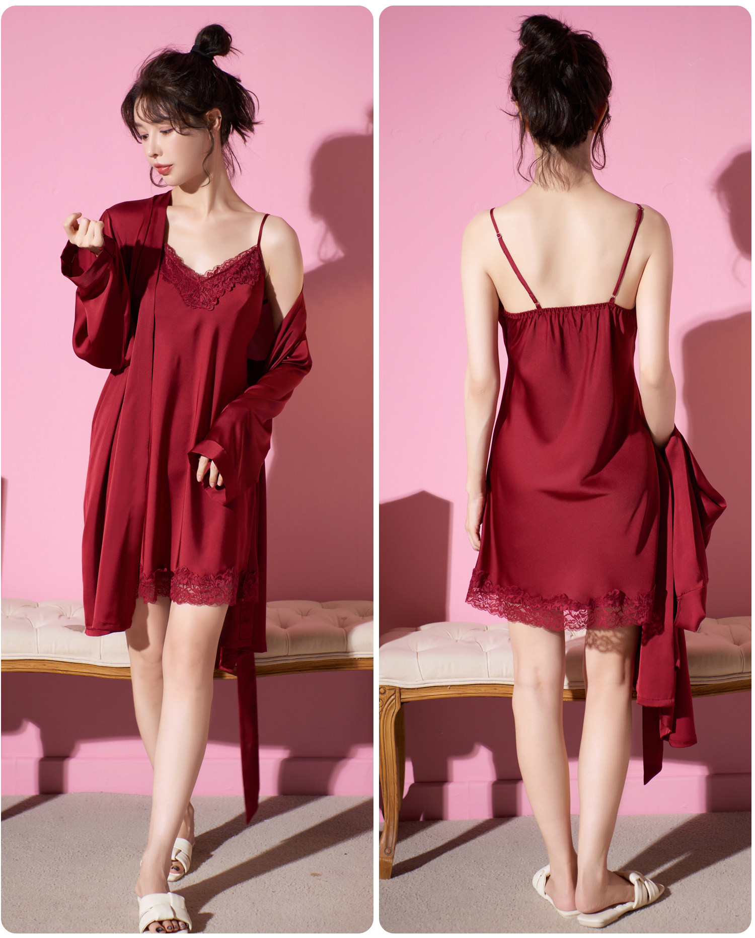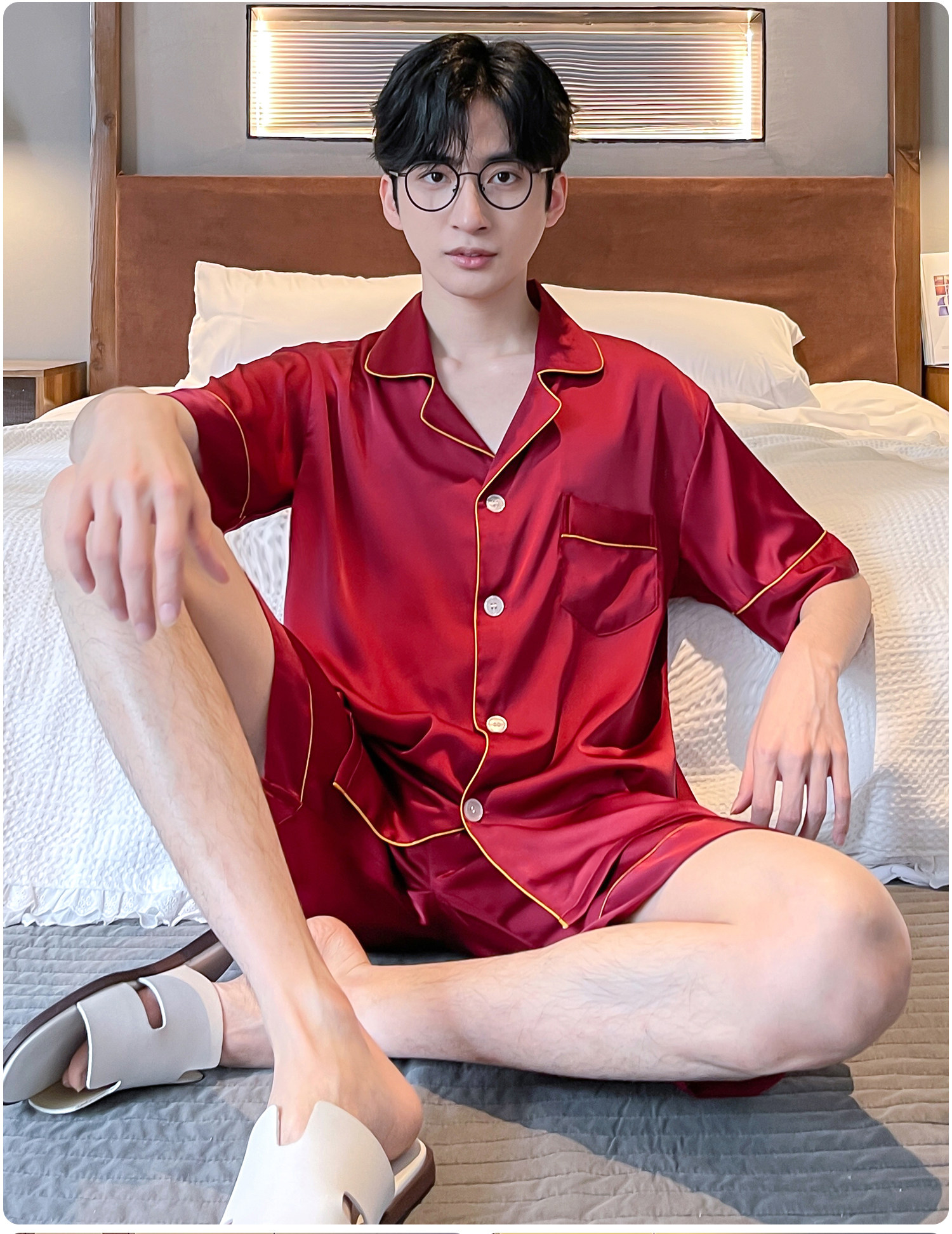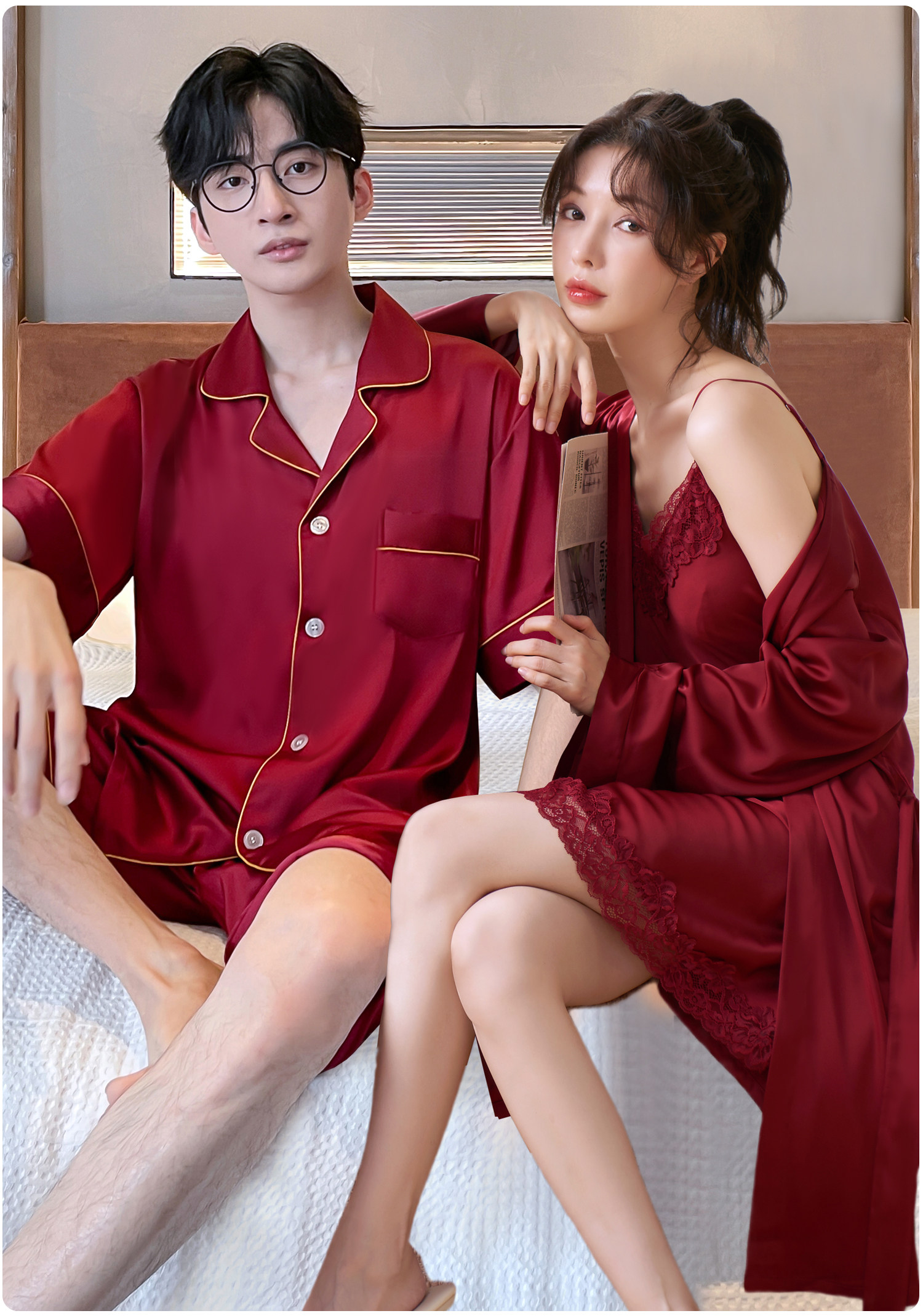 乐姿梦 Летняя шелковая пижама для невесты, нарукавники, красный цветной комплект, высококлассный оберег на день рождения, для влюбленных, короткий рукав
