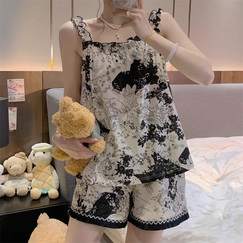 Шорты с кисточками, летняя хлопковая милая пижама, тонкий комплект, эффект подтяжки, популярно в интернете