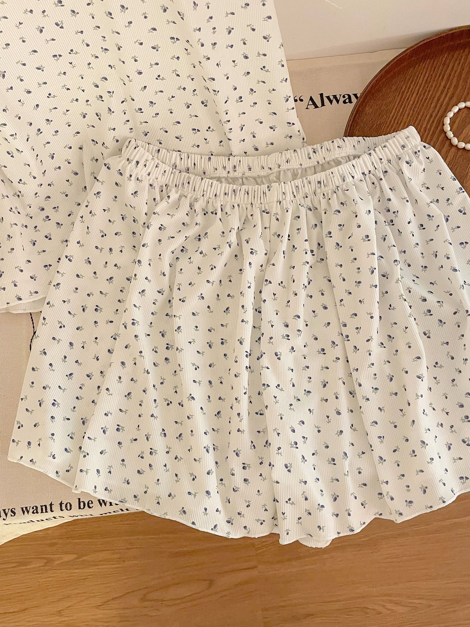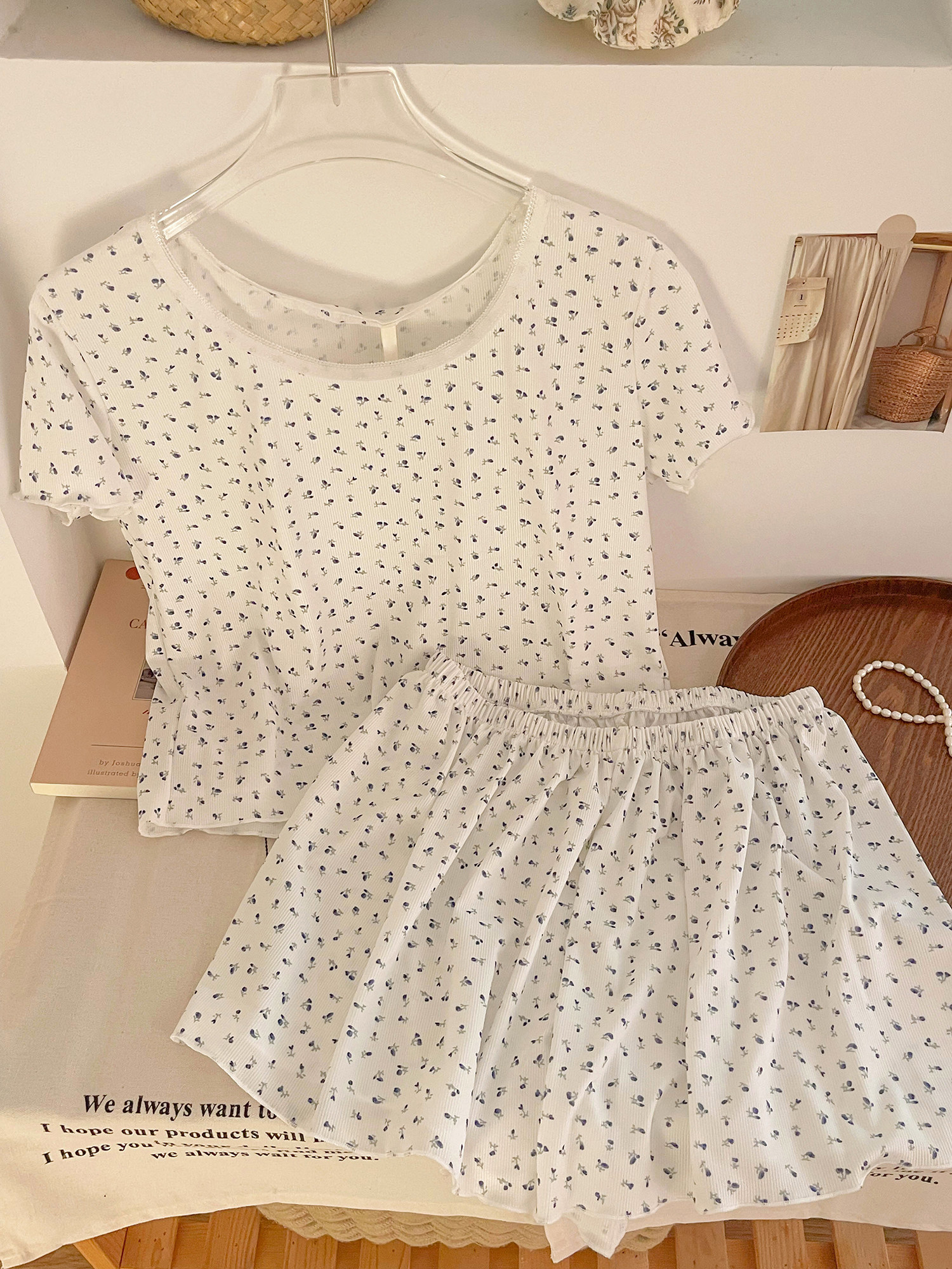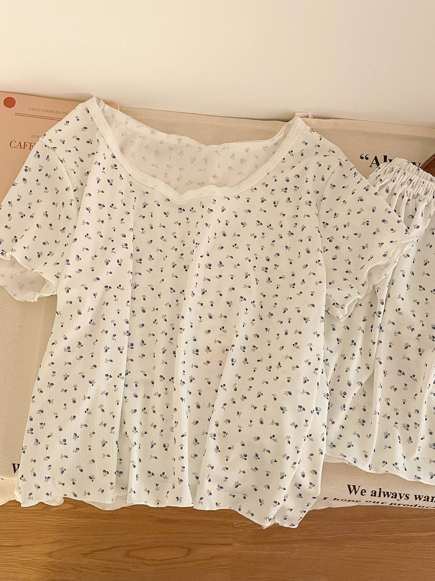 Футболка с коротким рукавом, летняя пижама, комплект, летний костюм, цветочный принт, облегающий крой, короткий рукав, популярно в интернете, большой размер