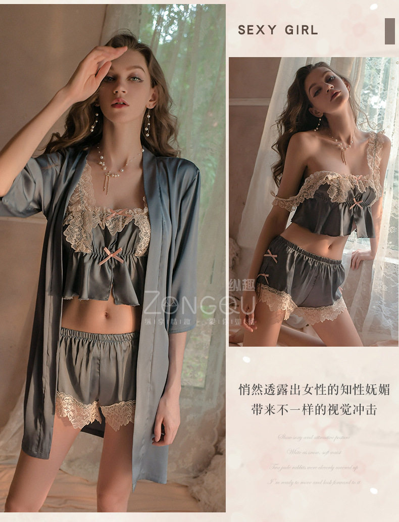 Летняя пижама, сексуальная юбка, шелковые шорты, комплект, эффект подтяжки
