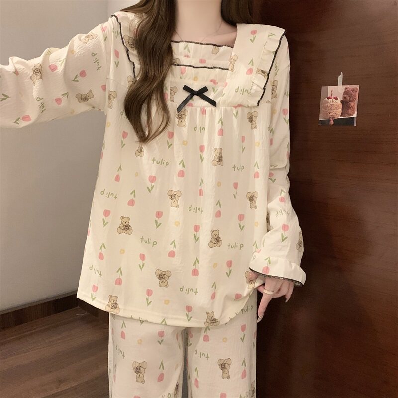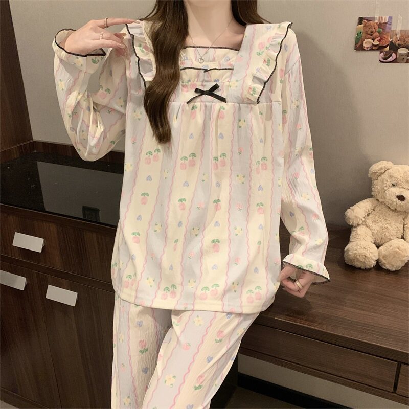 Брендовый свежий лонгслив, осенняя пижама, комплект для школьников и студентов