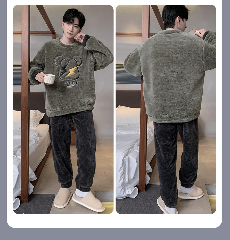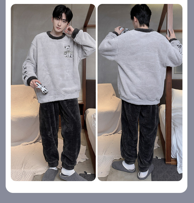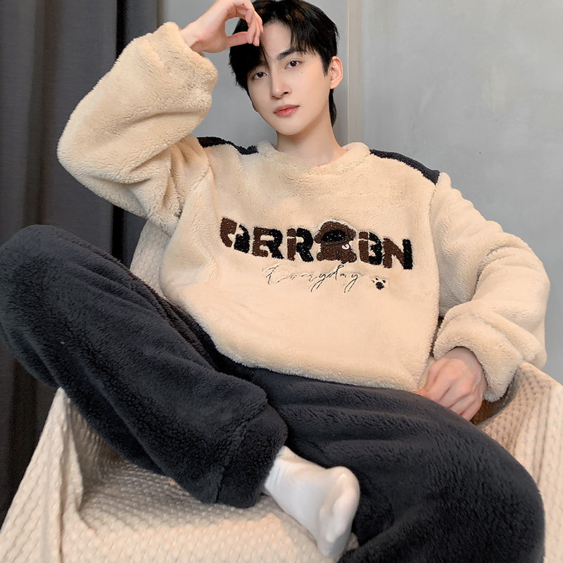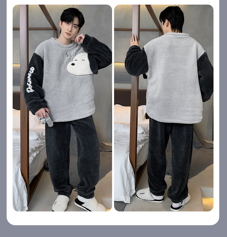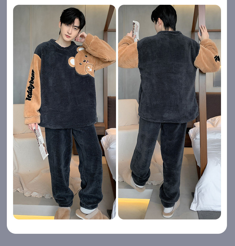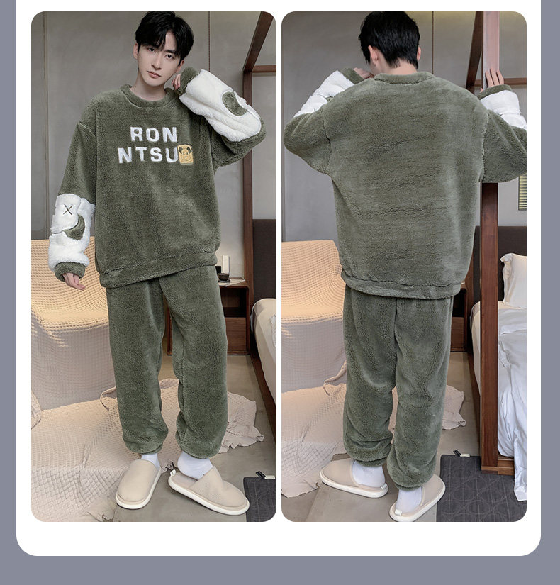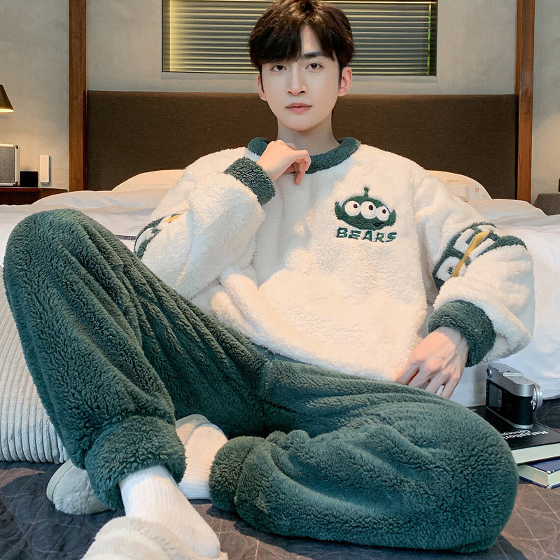 Мужская коралловая бархатная демисезонная мультяшная пижама для отдыха, фланелевый бархатный утепленный комплект, подходит для подростков