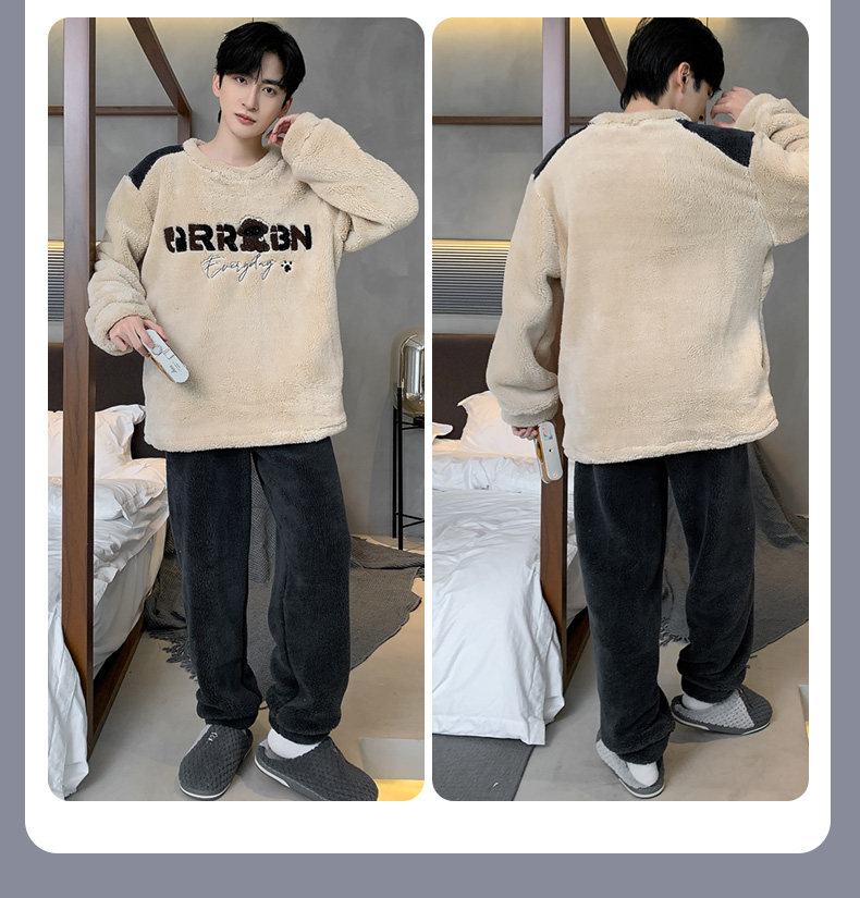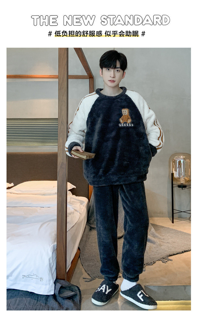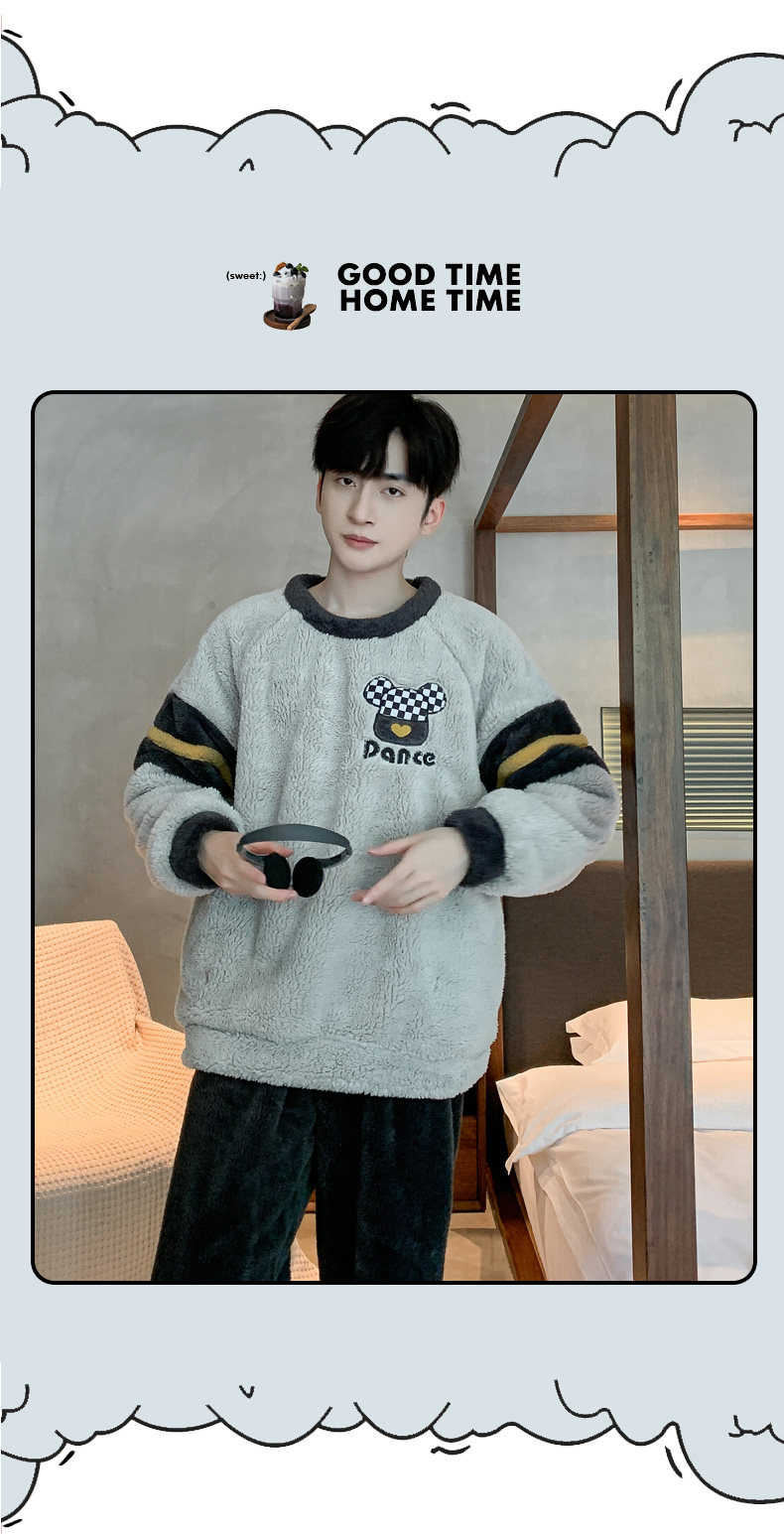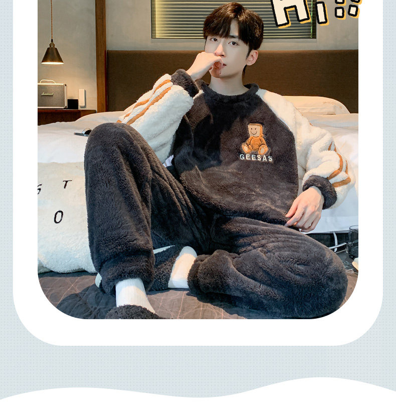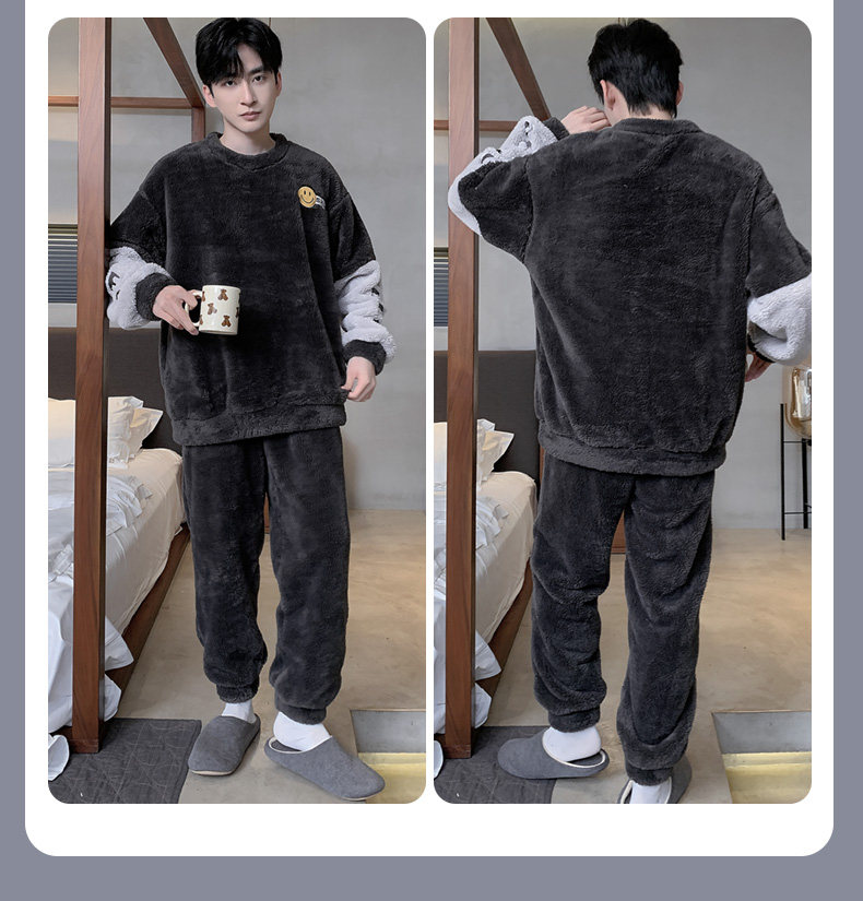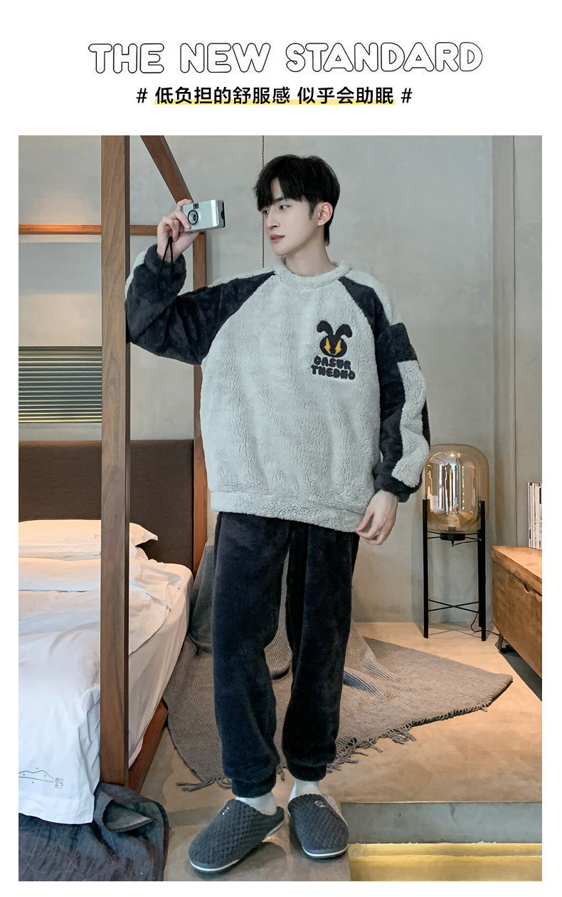 Мужская коралловая бархатная демисезонная мультяшная пижама для отдыха, фланелевый бархатный утепленный комплект, подходит для подростков