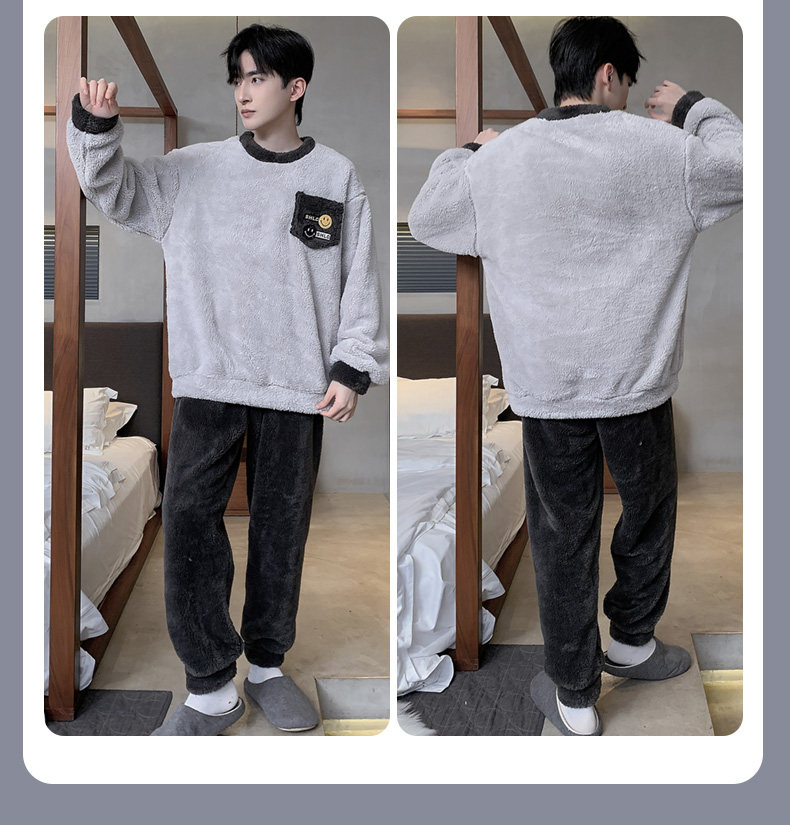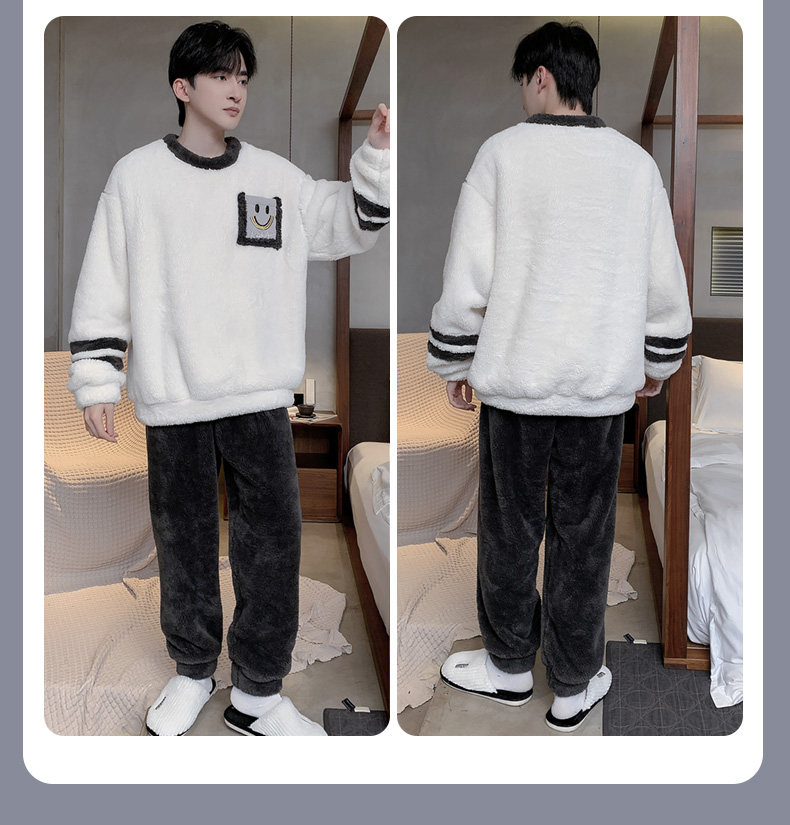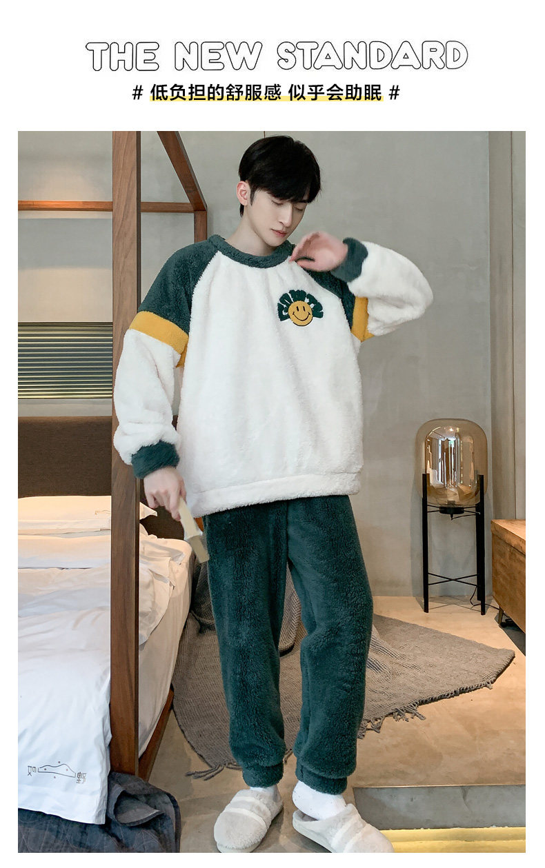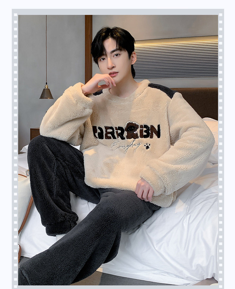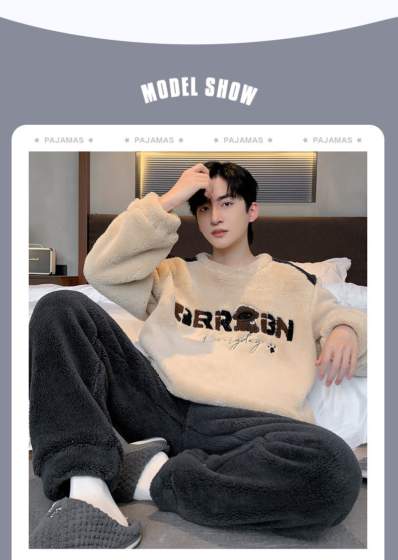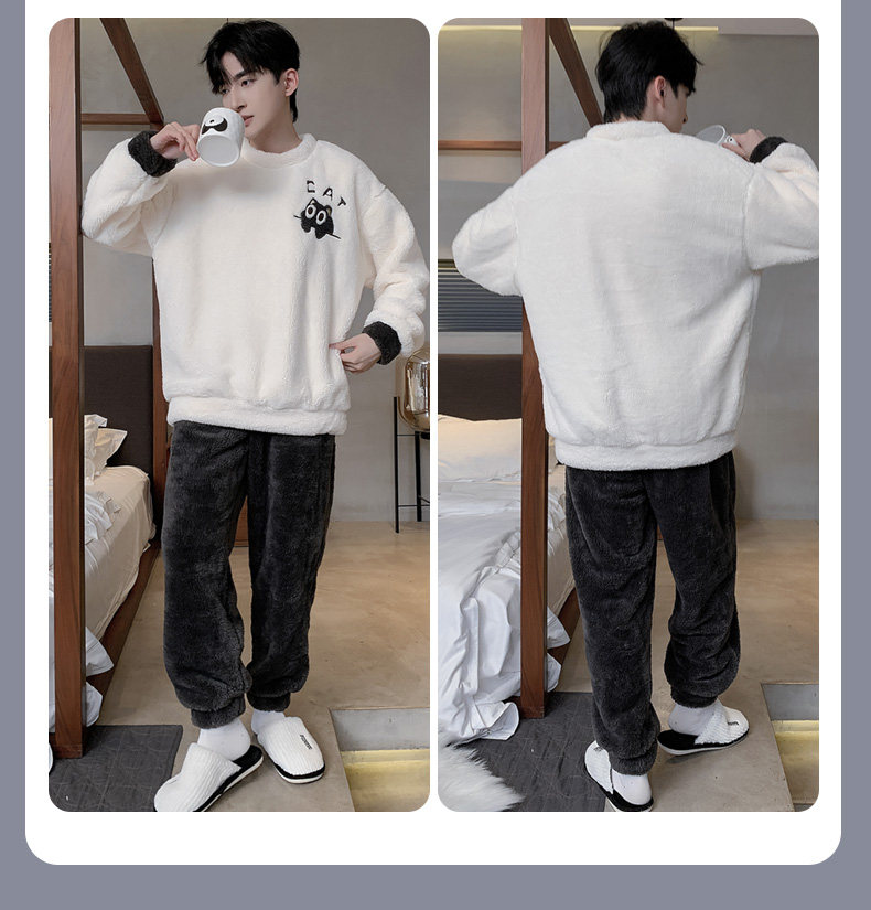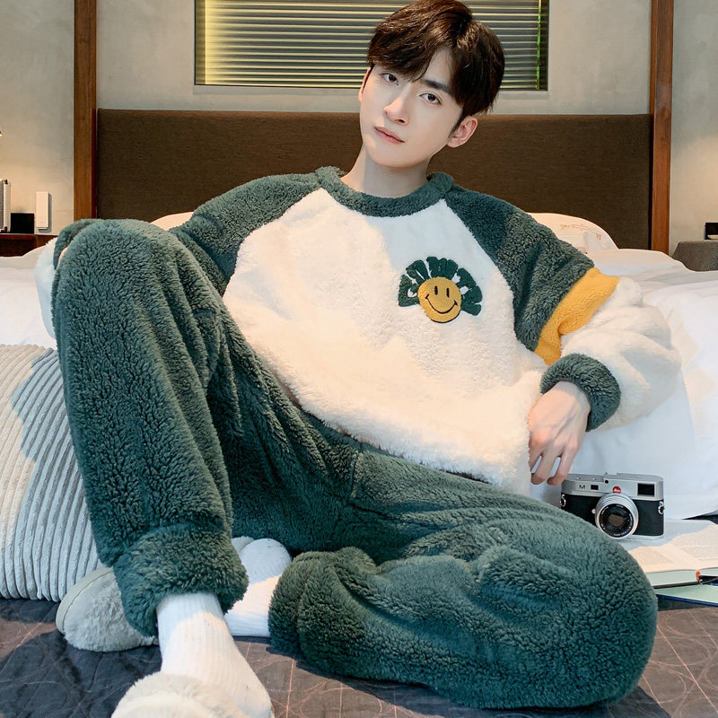 Мужская коралловая бархатная демисезонная мультяшная пижама для отдыха, фланелевый бархатный утепленный комплект, подходит для подростков