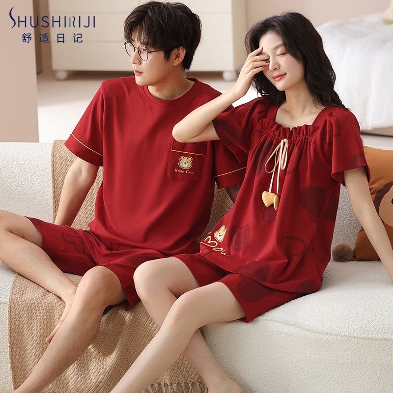 Красная хлопковая пижама, комплект подходит для мужчин и женщин, милый оберег на день рождения, для влюбленных