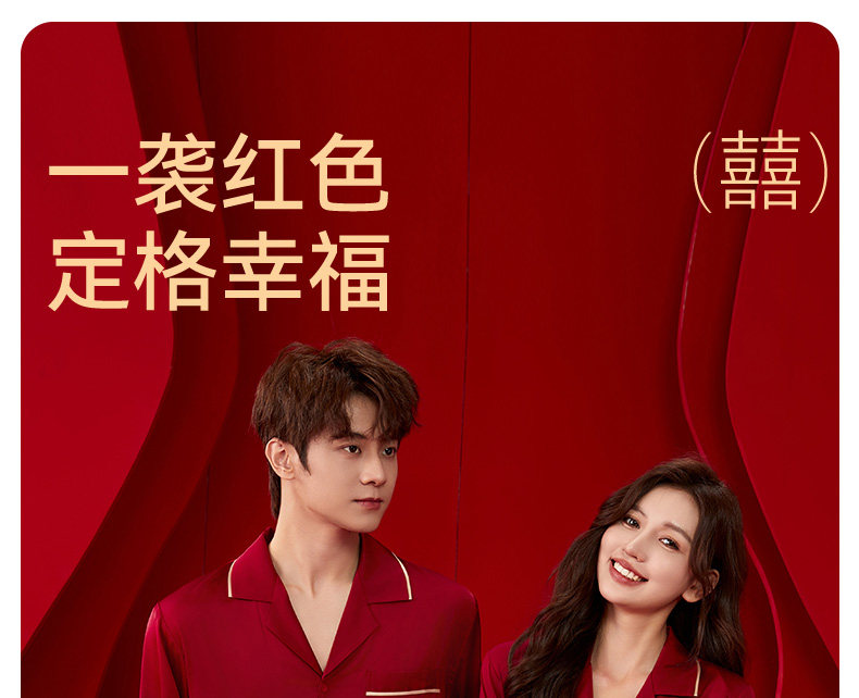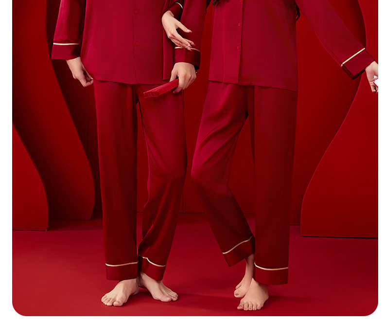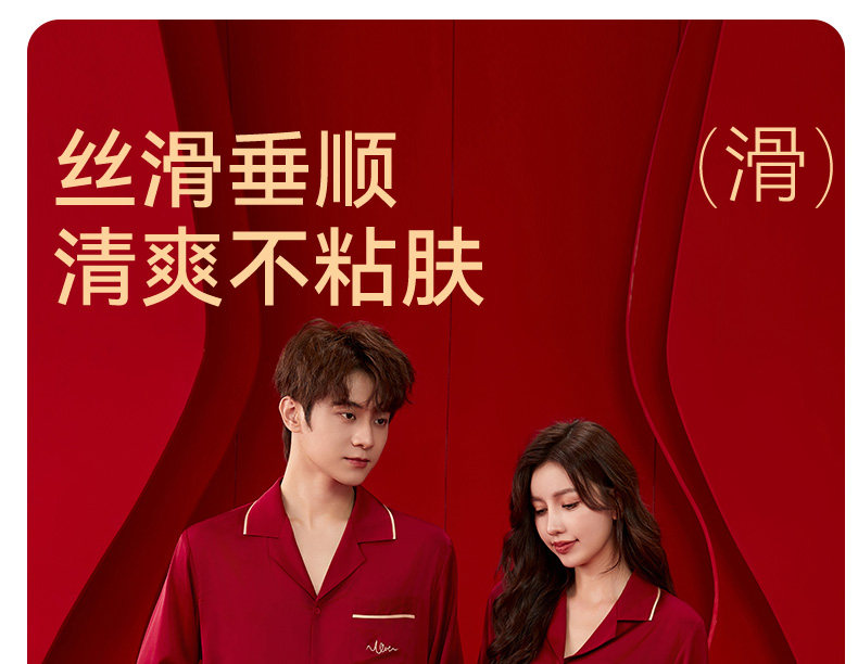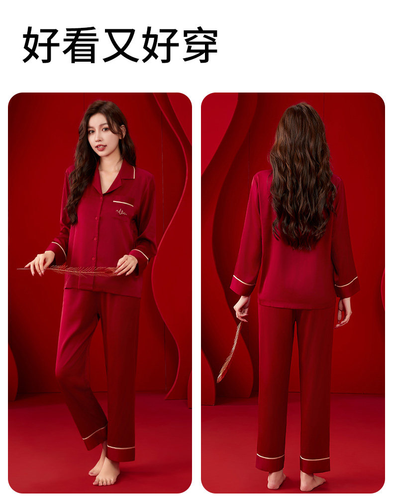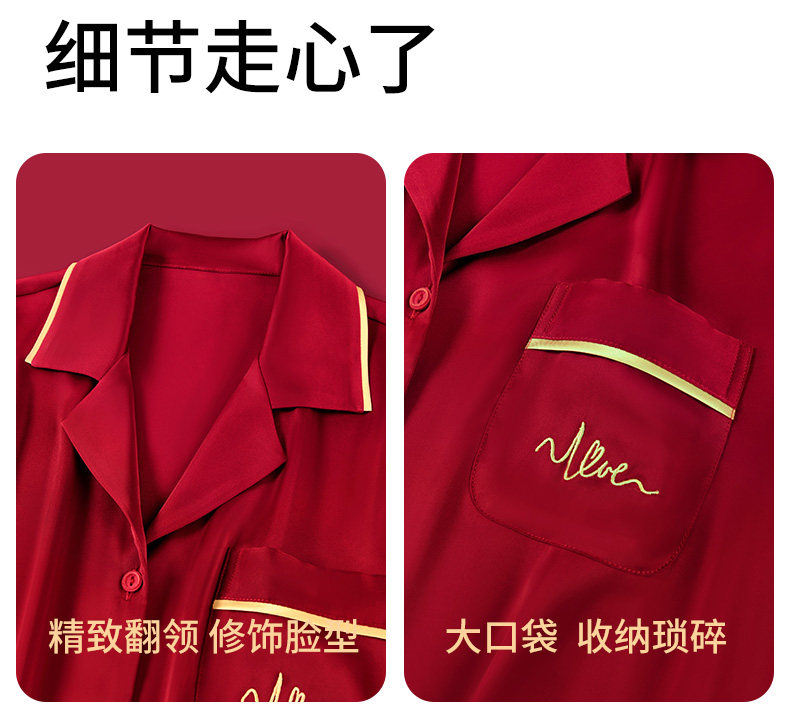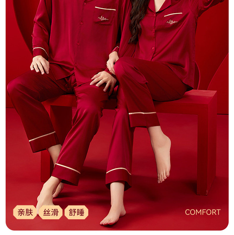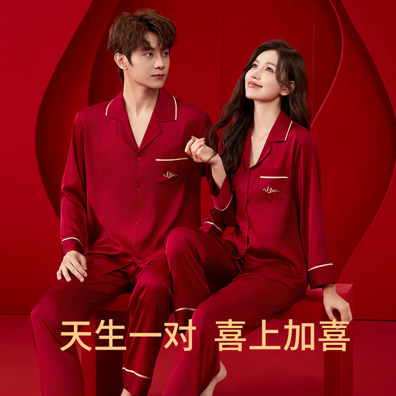 浪莎 Красная пижама, летний тонкий шелковый комплект, для влюбленных, изысканный стиль, с вышивкой