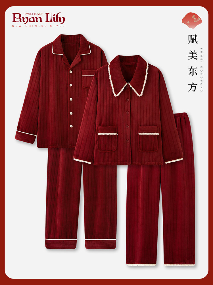 Демисезонная флисовая коралловая пижама, бархатный красный фланелевый комплект подходит для мужчин и женщин, для влюбленных, большой размер