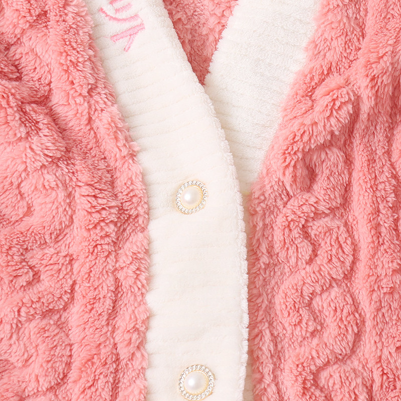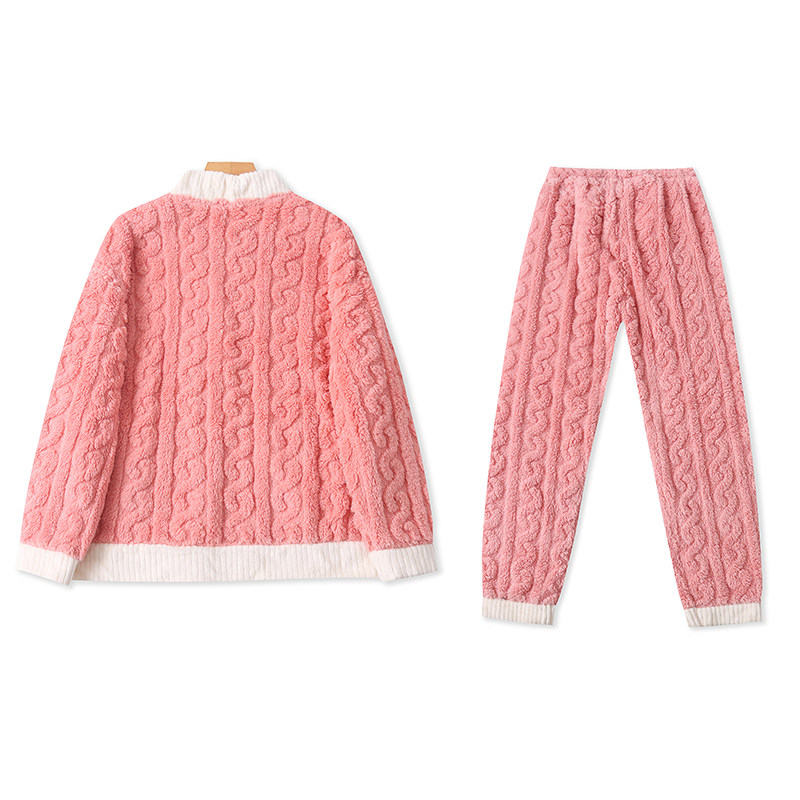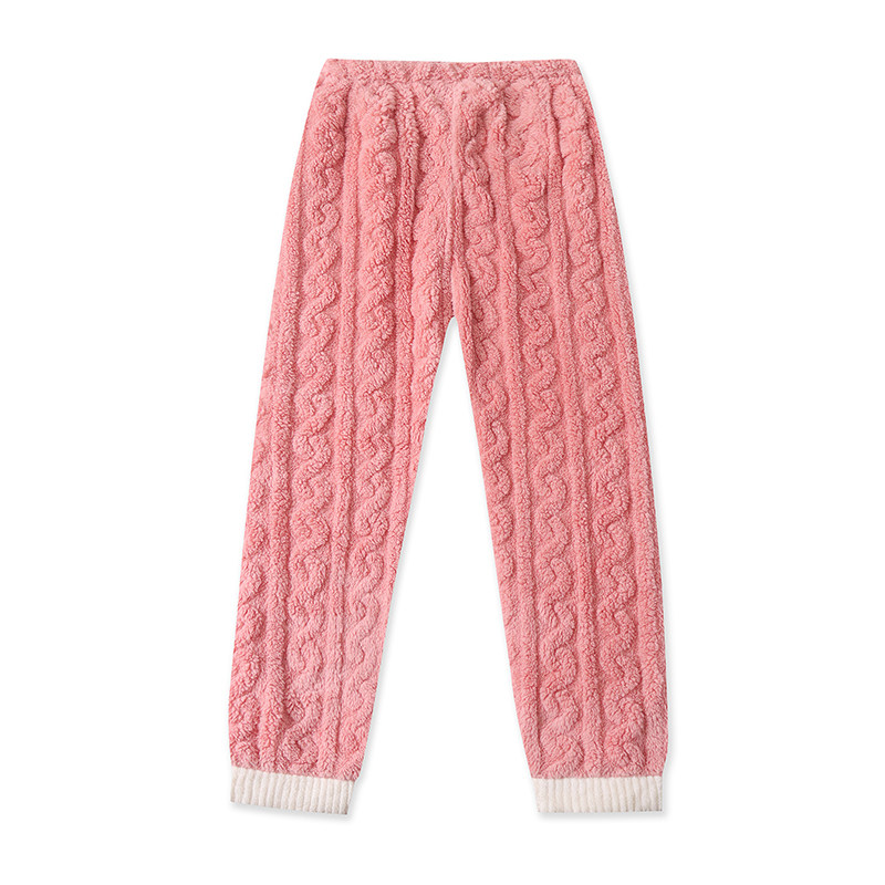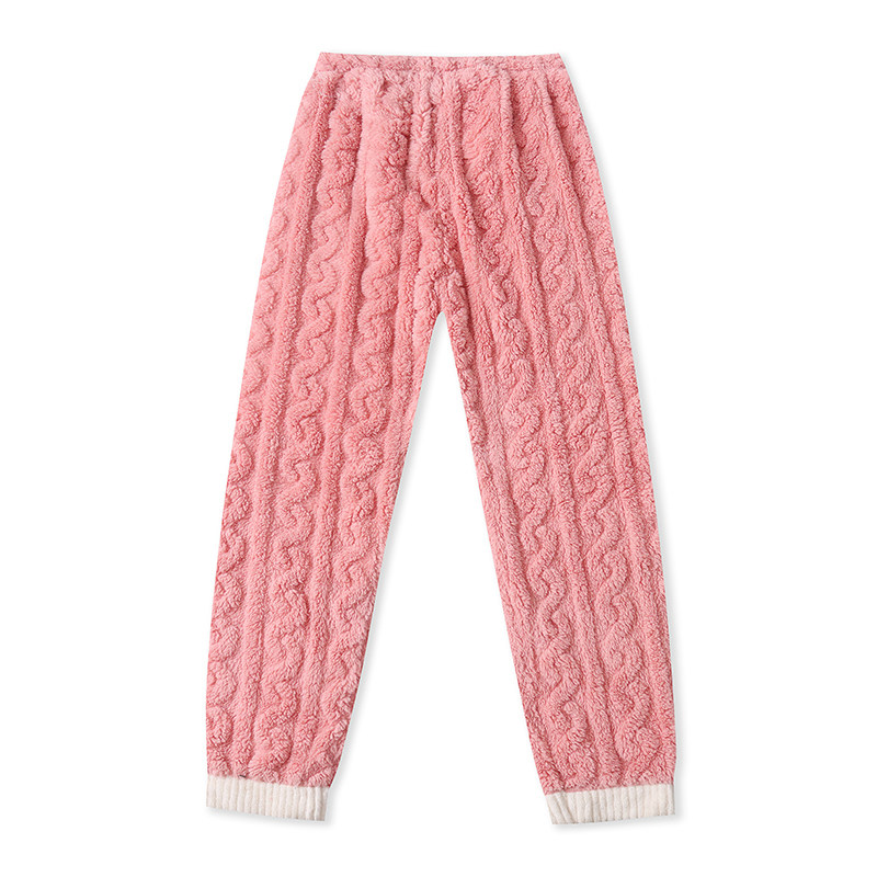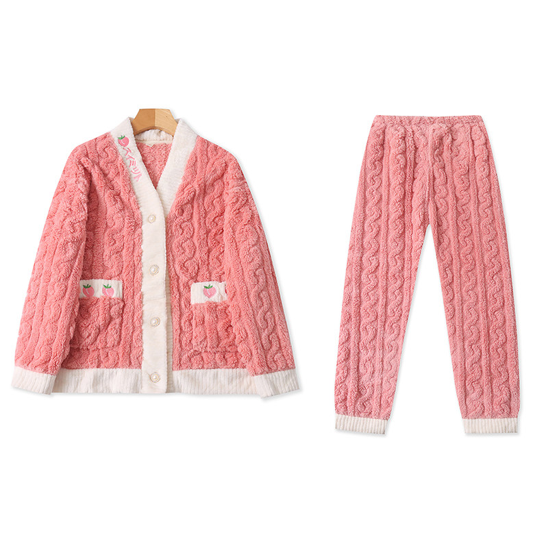 Бархатная коралловая пижама, зимний комплект, штаны, увеличенная толщина, V-образный вырез, эластичная талия