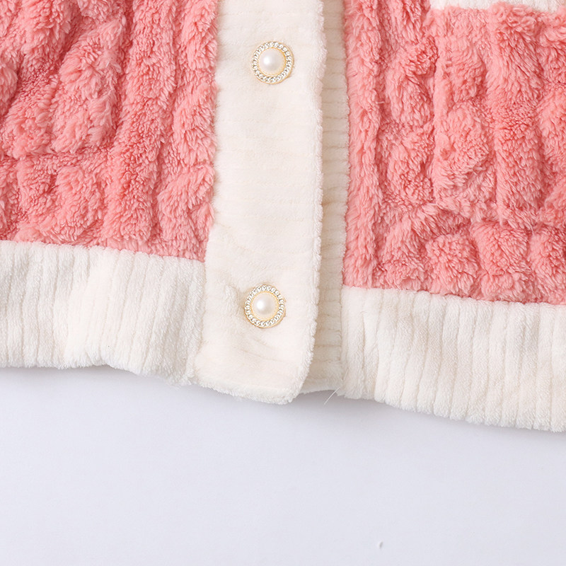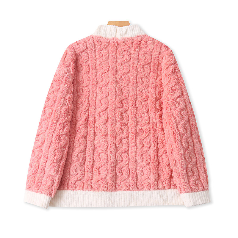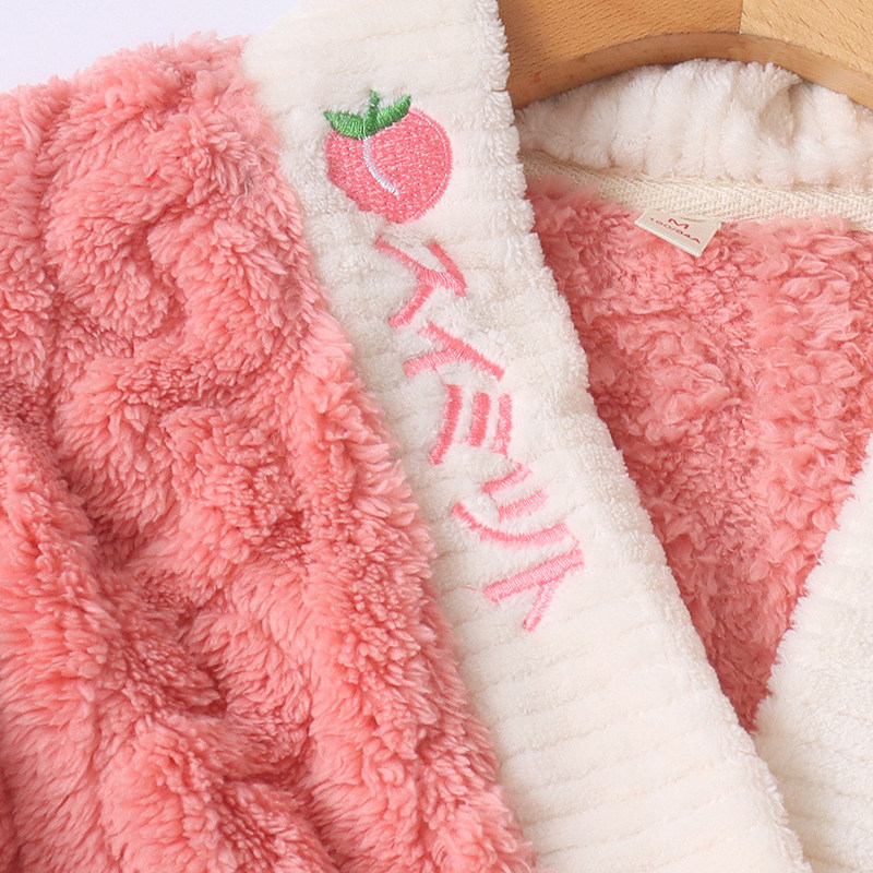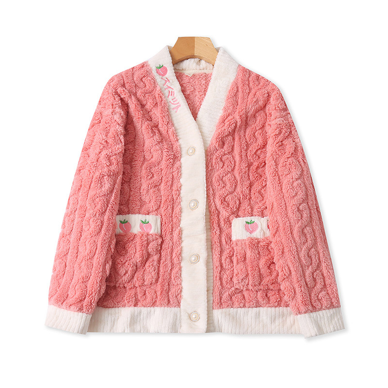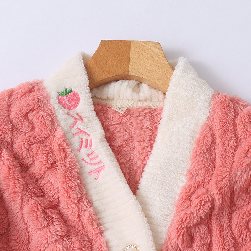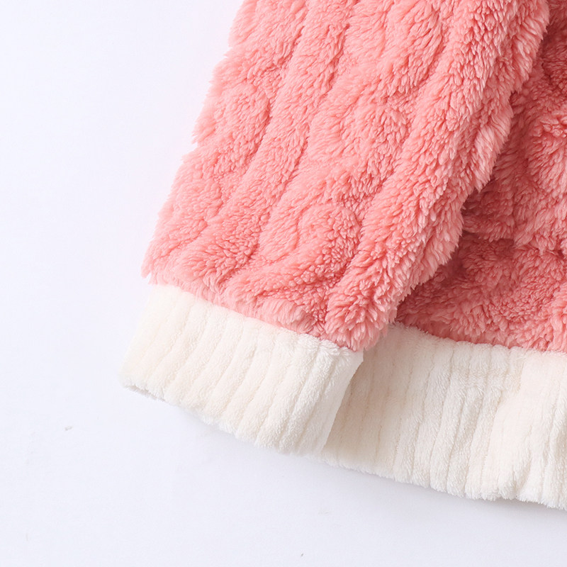 Бархатная коралловая пижама, зимний комплект, штаны, увеличенная толщина, V-образный вырез, эластичная талия