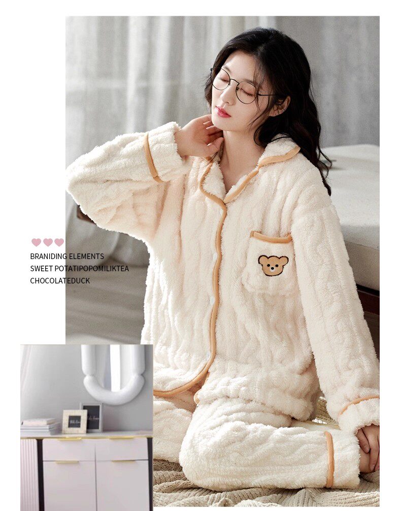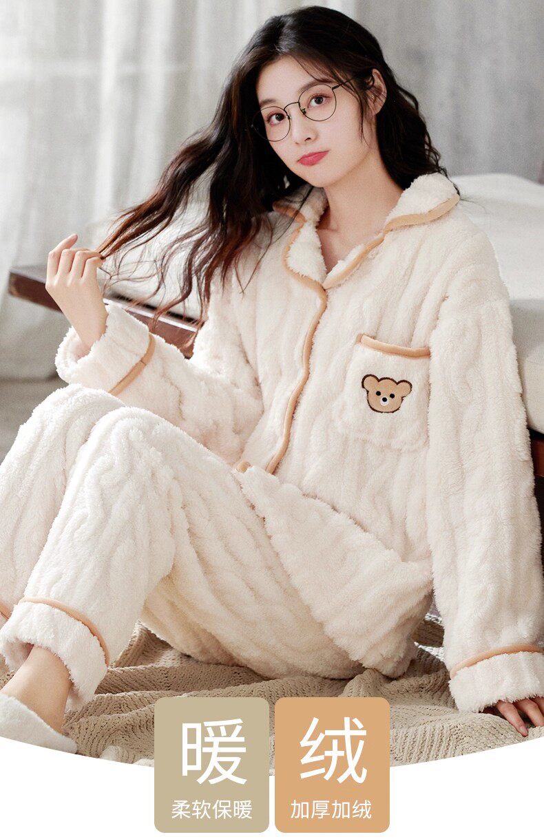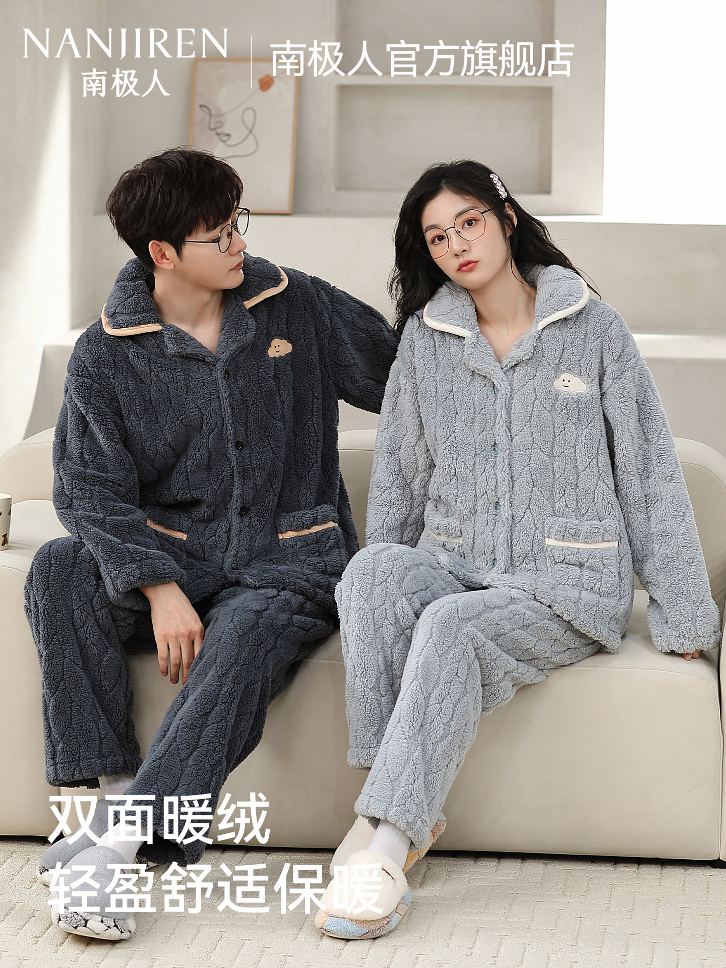 南极人 Коралловая бархатная удерживающая тепло демисезонная утепленная пижама для влюбленных, мягкий комплект