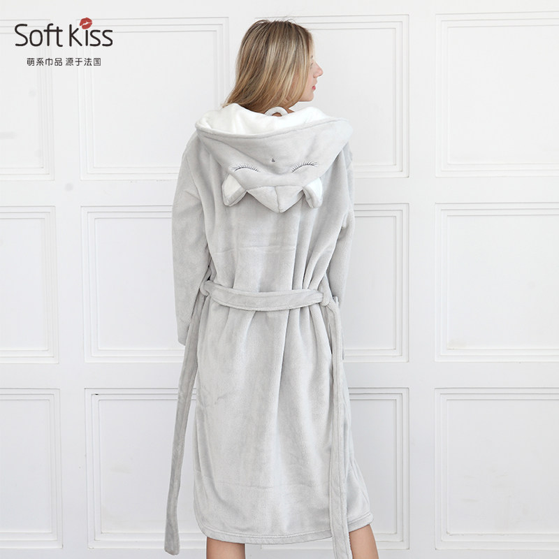 Демисезонный длинный банный халат, коралловая бархатная милая фланелевая мужская пижама, для влюбленных, увеличенная толщина