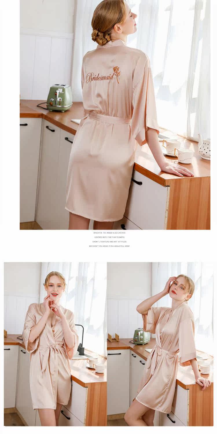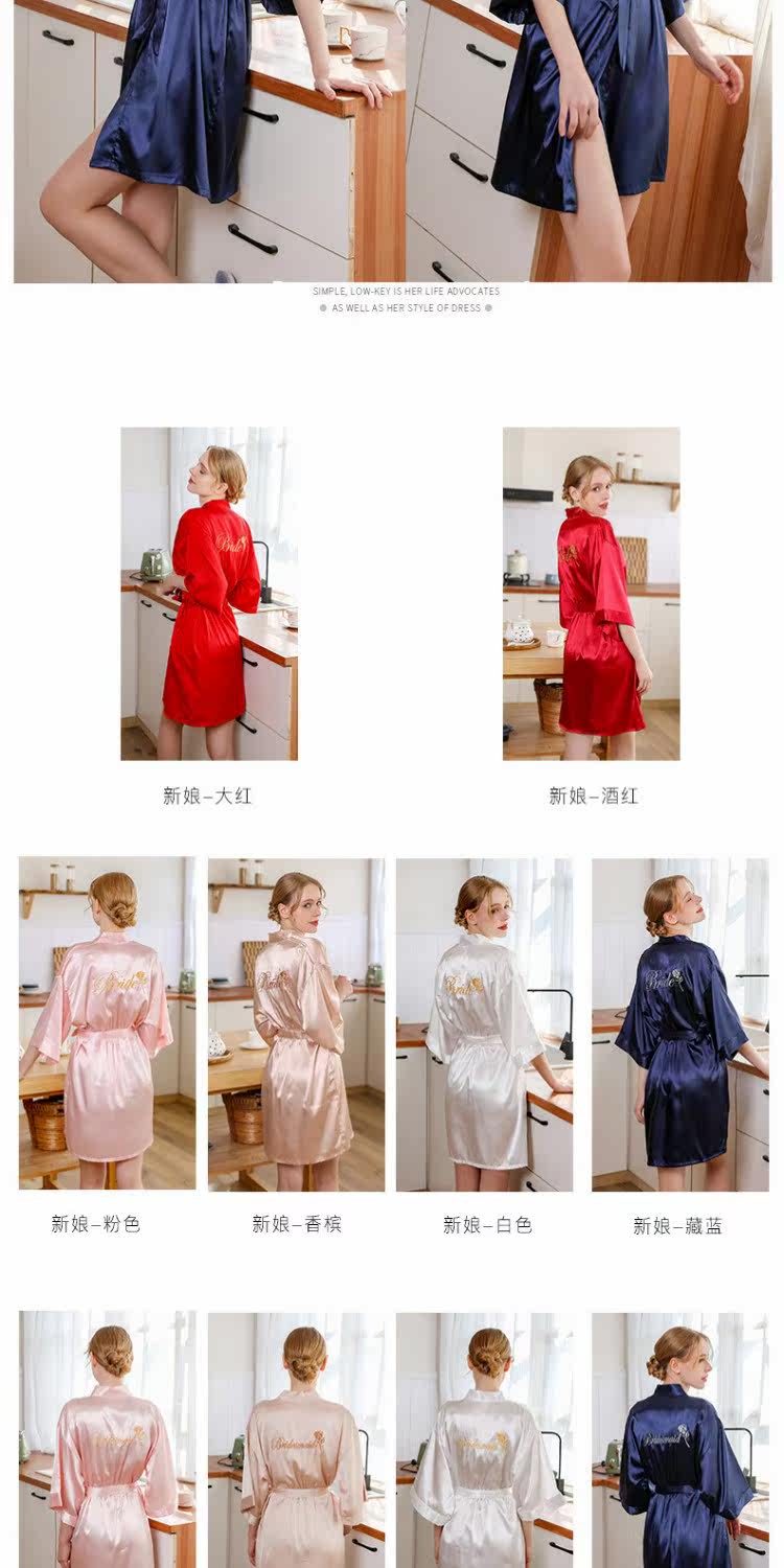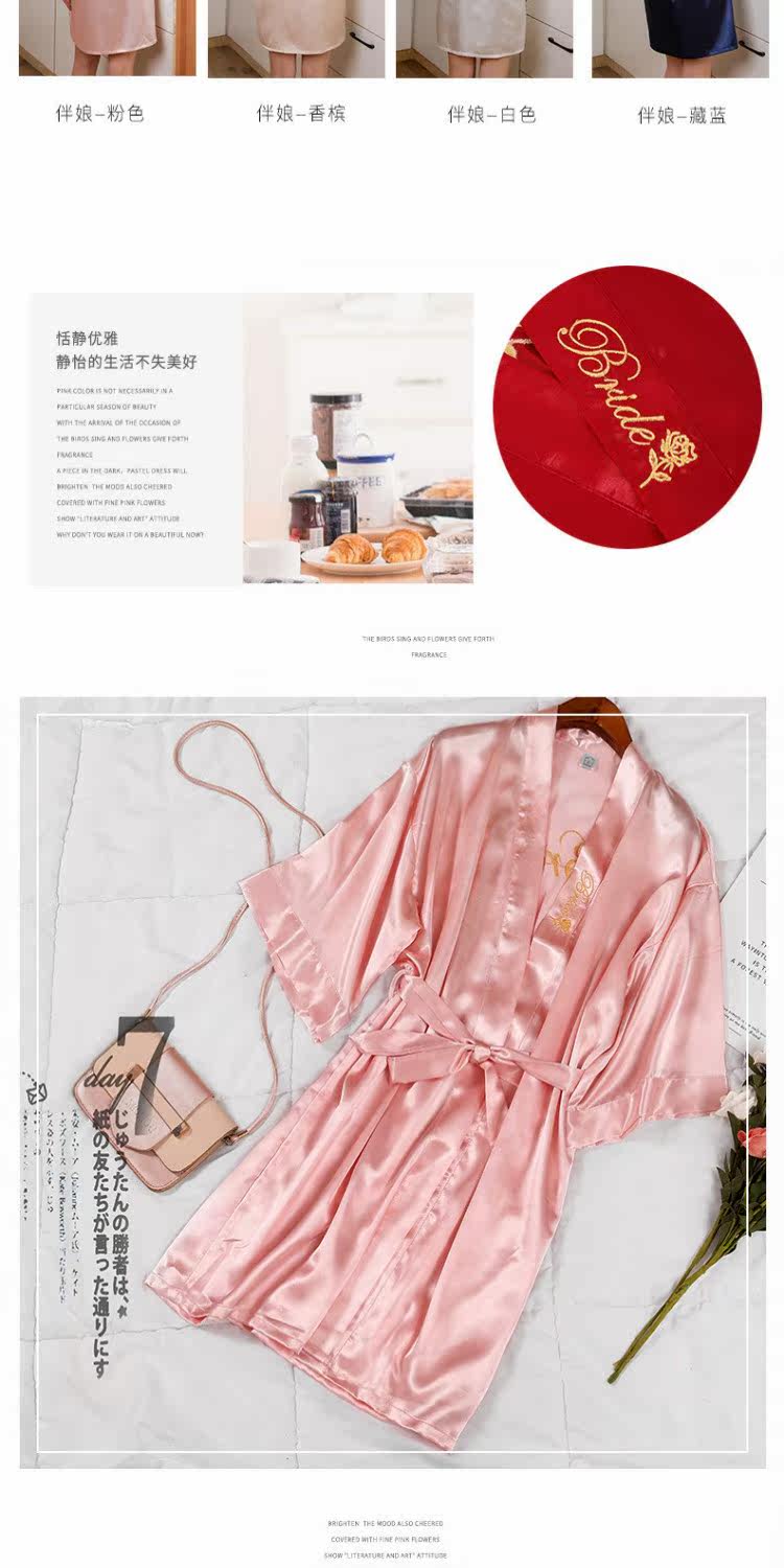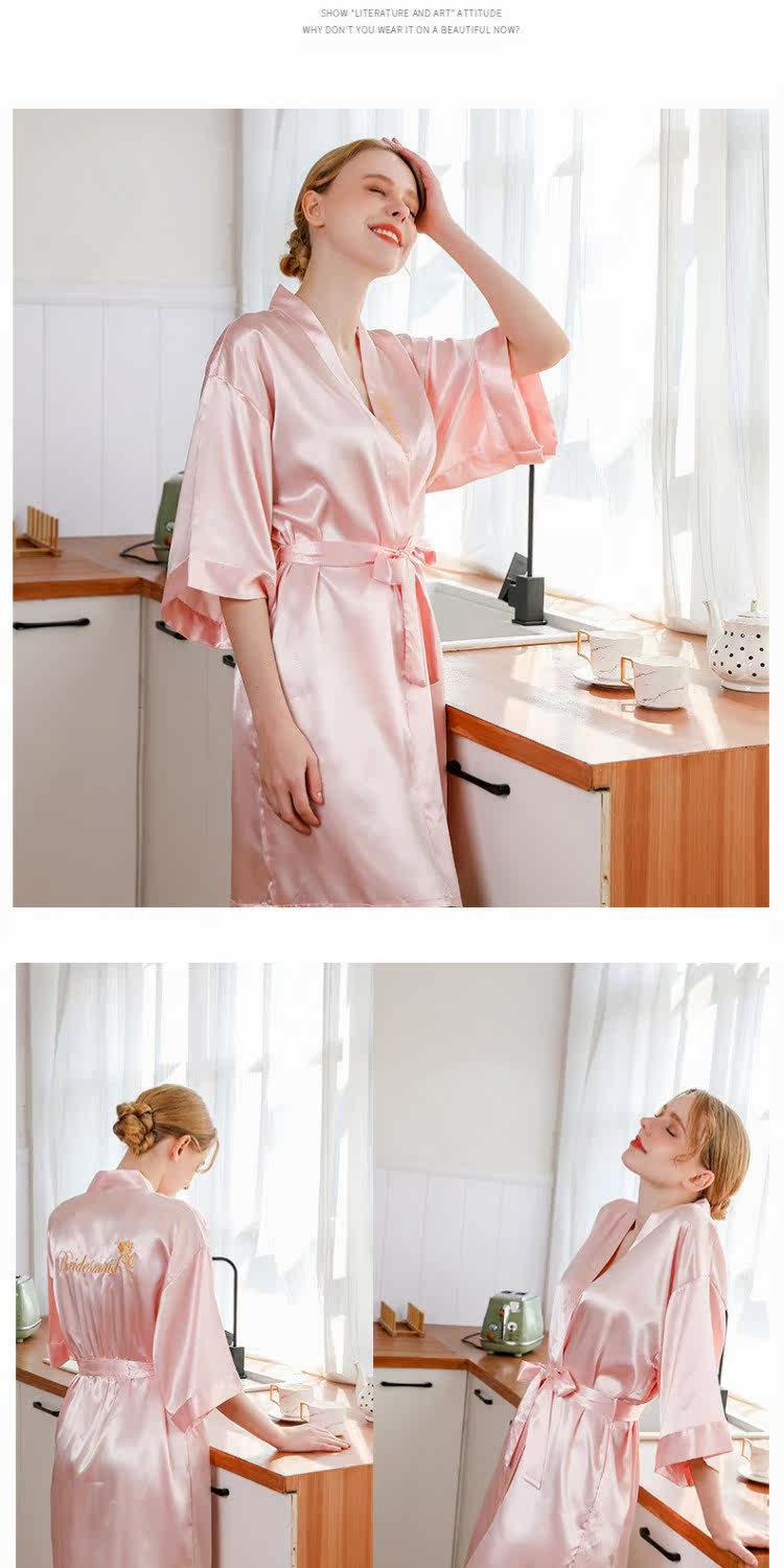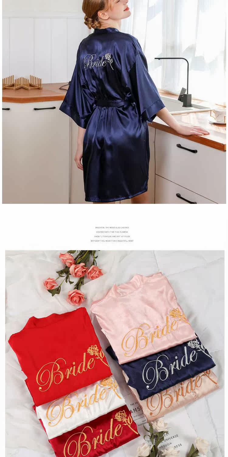 Шелковый банный халат для невесты, для салонов красоты, для подружки невесты, с вышивкой, с печатью вашего логотипа