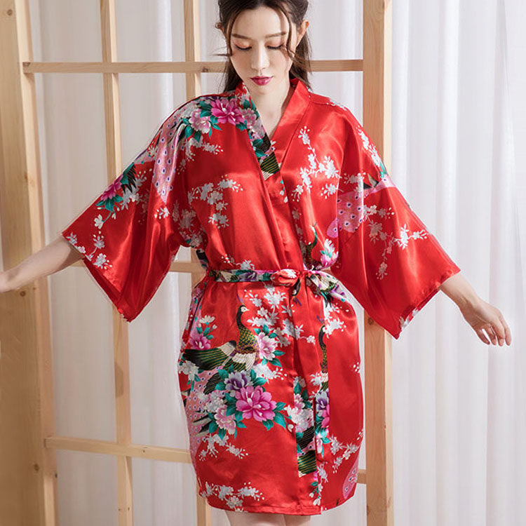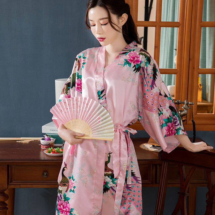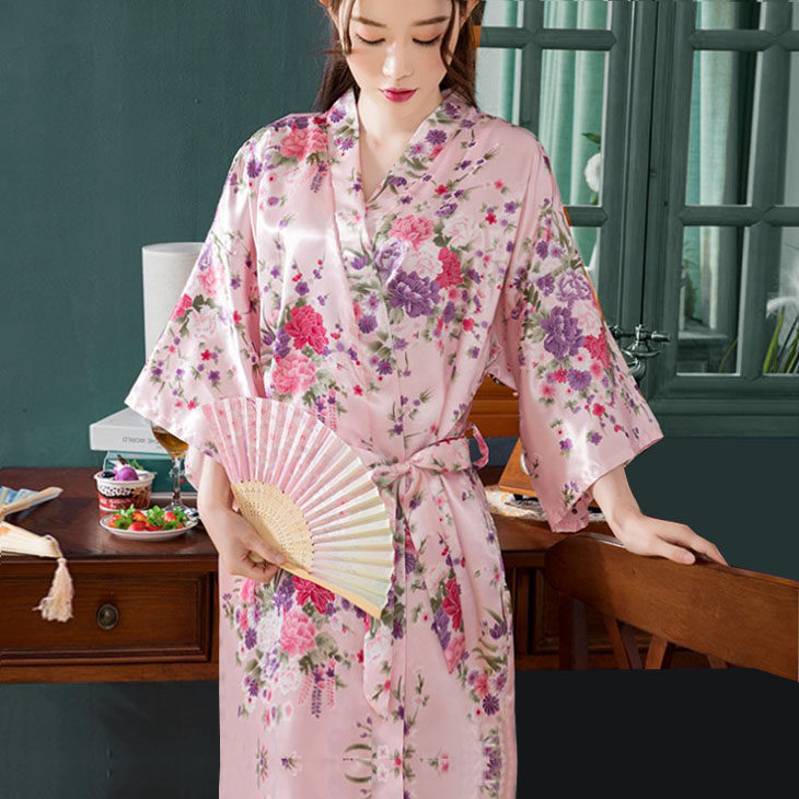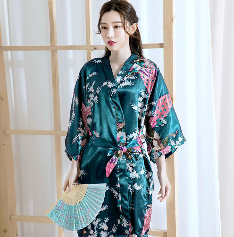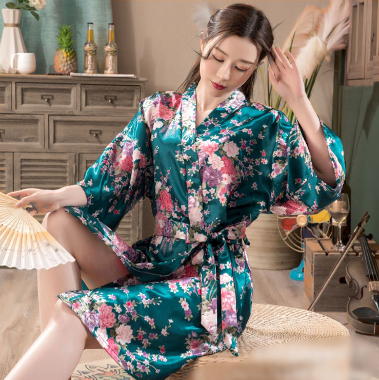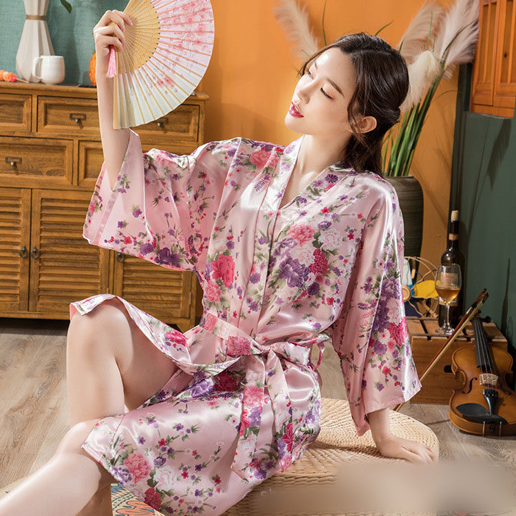 Японское кимоно, летняя ретро пижама, сексуальный шелковый банный халат