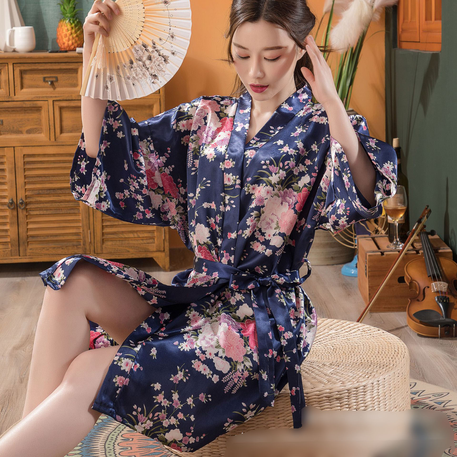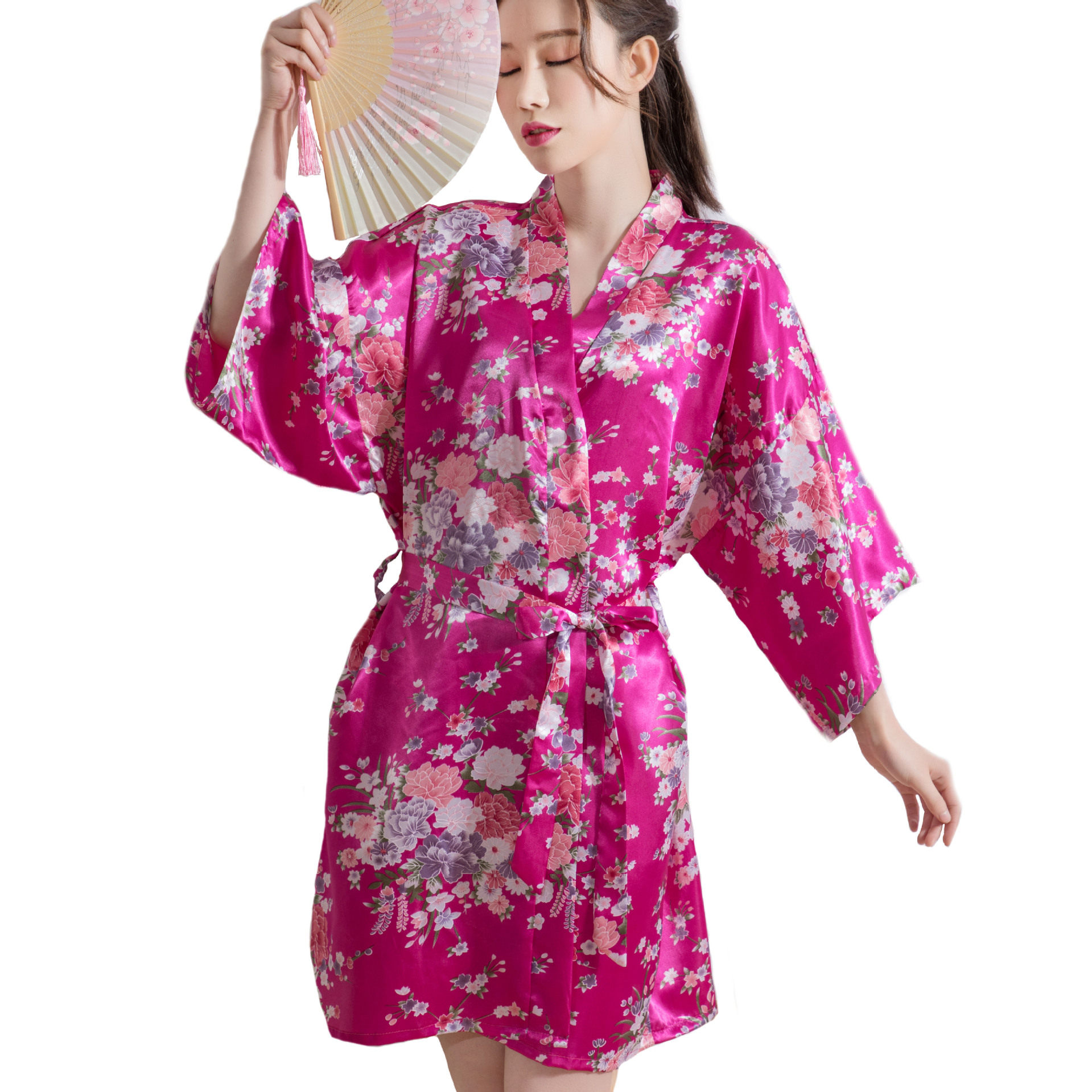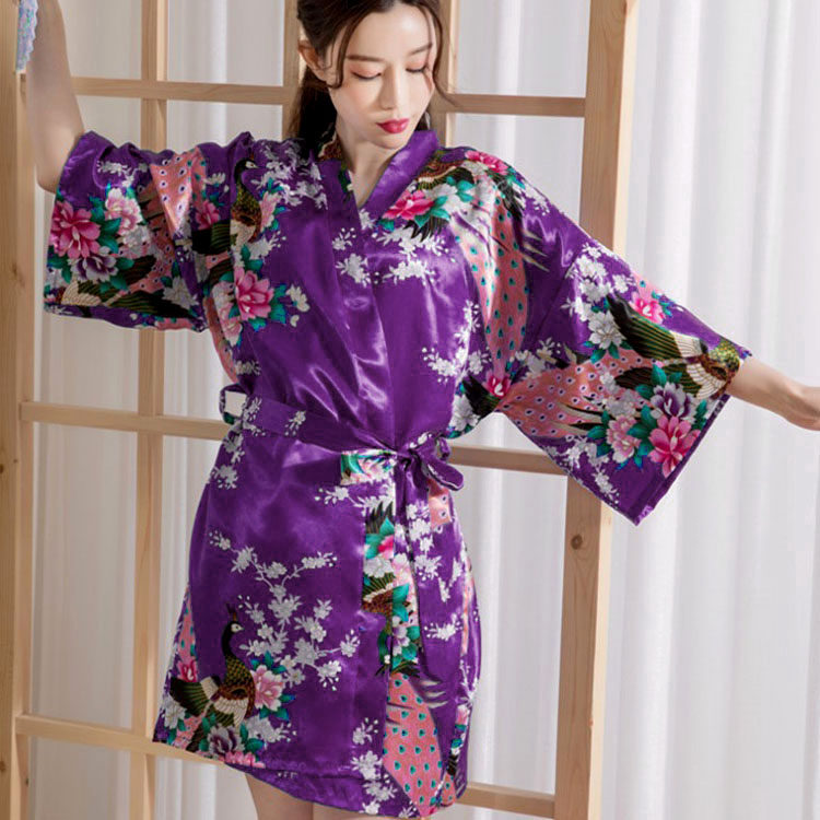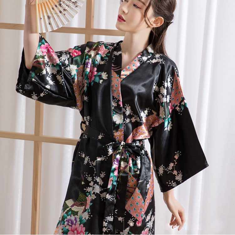 Японское кимоно, летняя ретро пижама, сексуальный шелковый банный халат