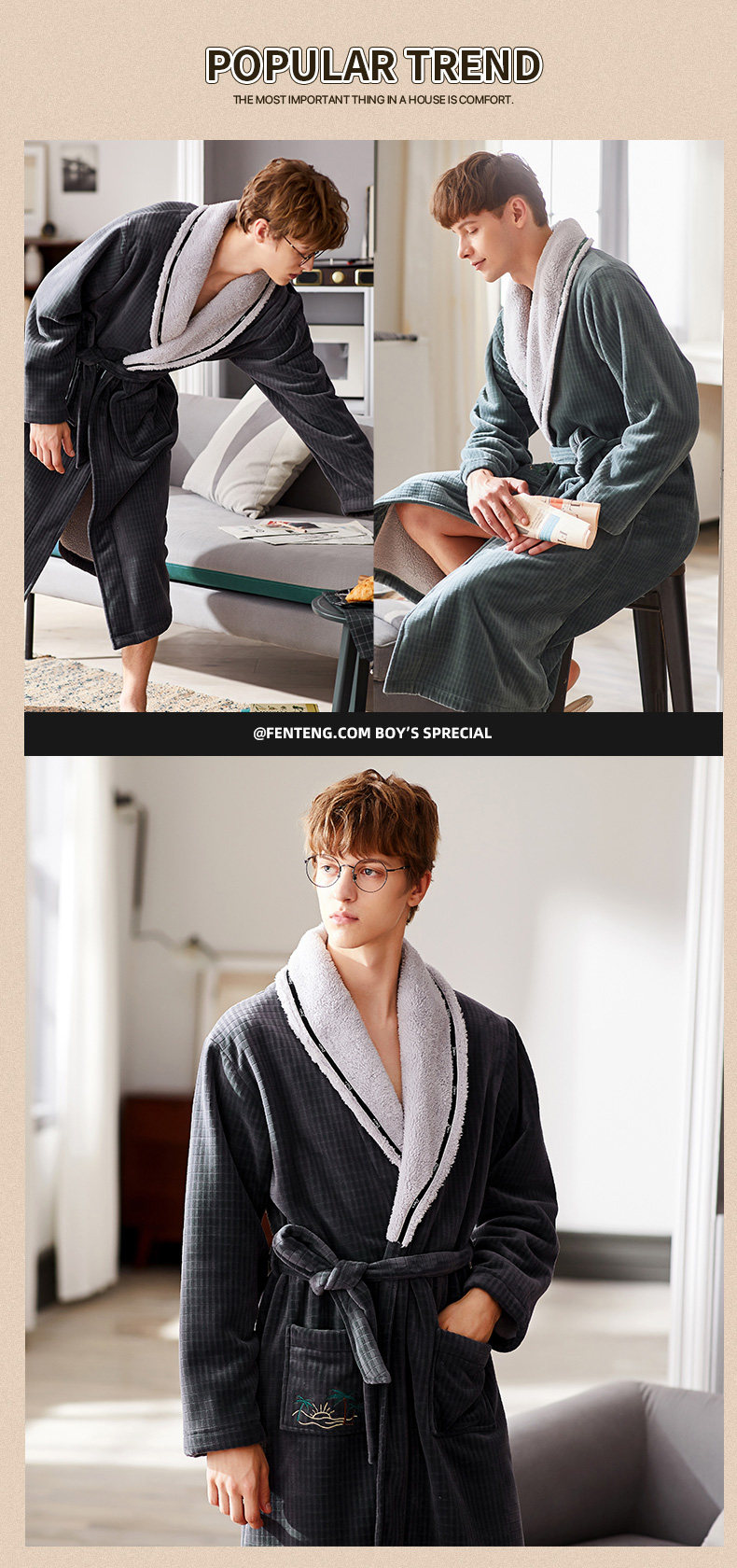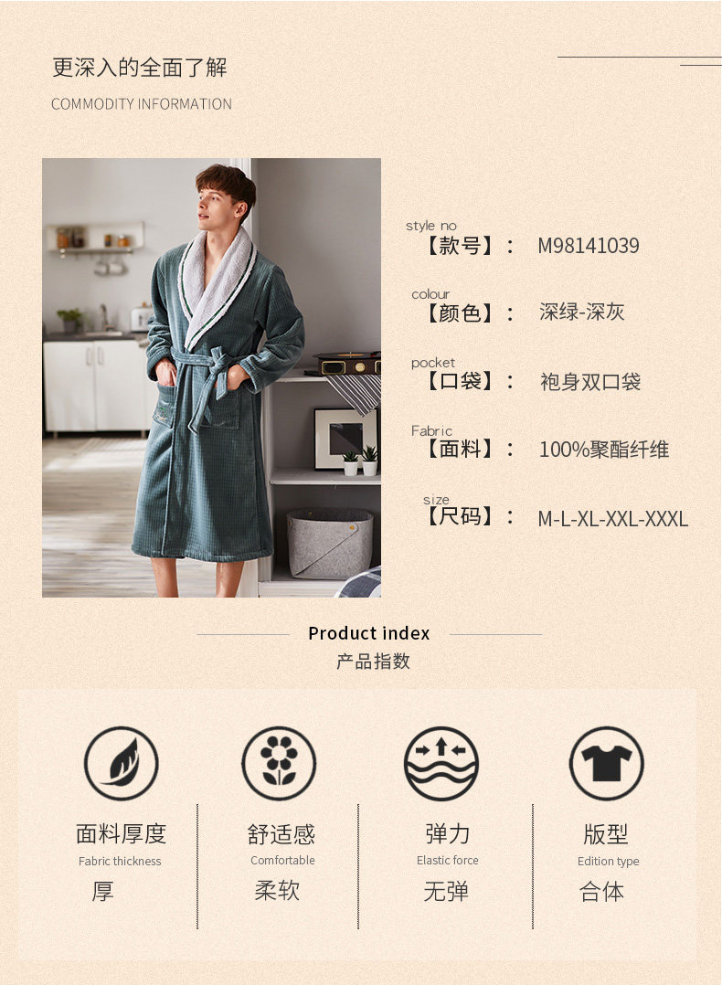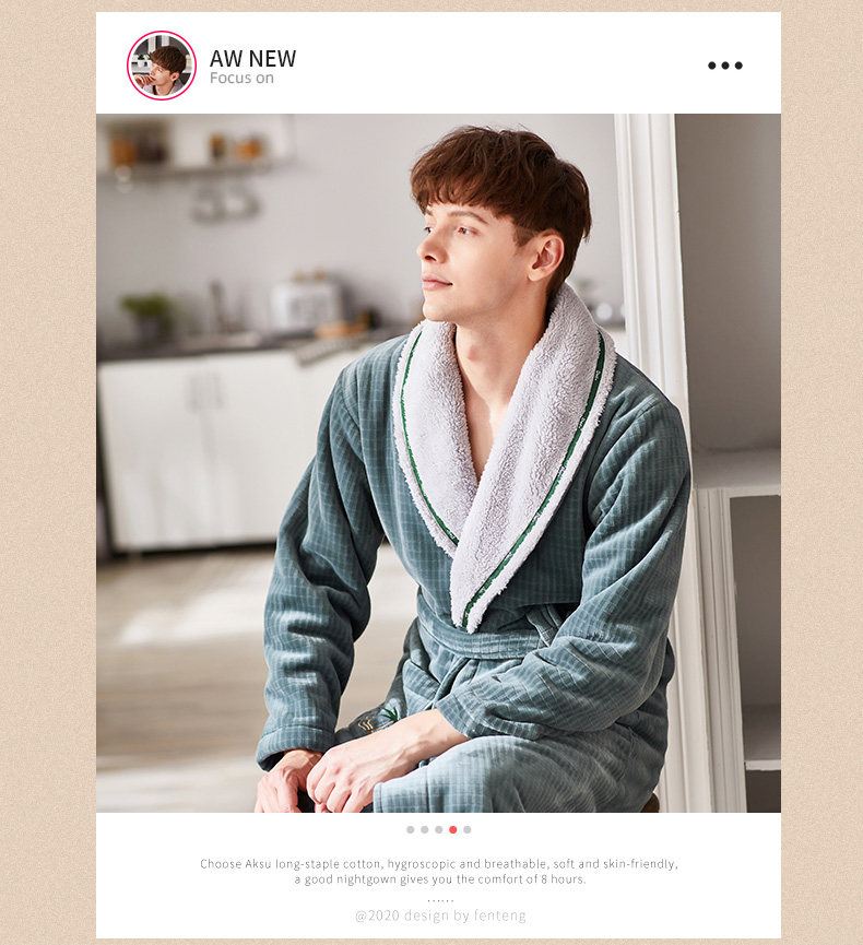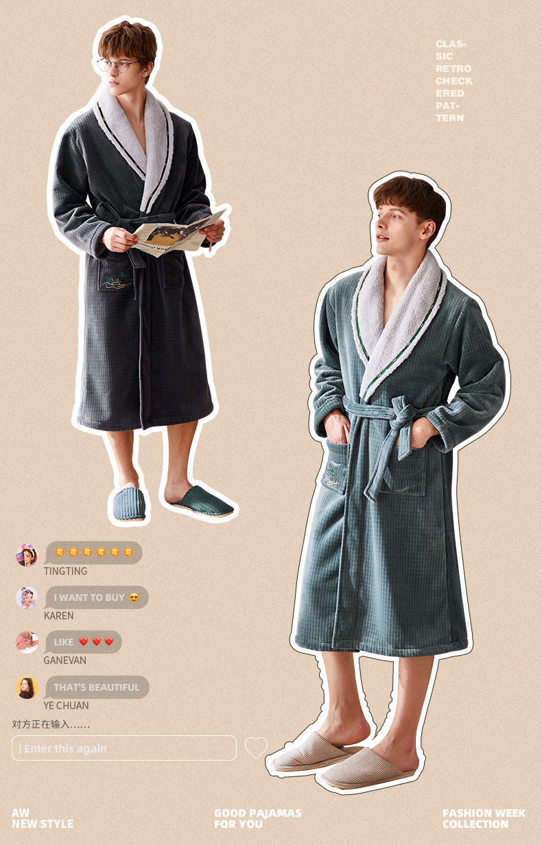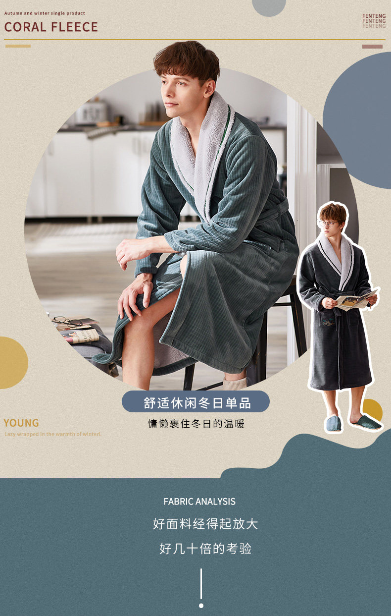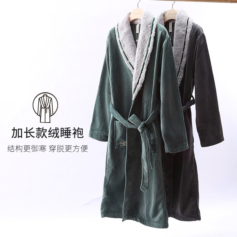 芬腾 Демисезонный коралловый бархатный банный халат, длинный лонгслив, бархатная фланелевая пижама, простой и элегантный дизайн