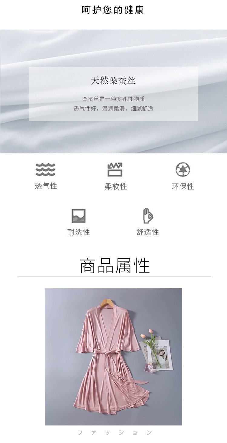 Шелковая пижама, тонкий сексуальный комфортный шелковый банный халат, V-образный вырез