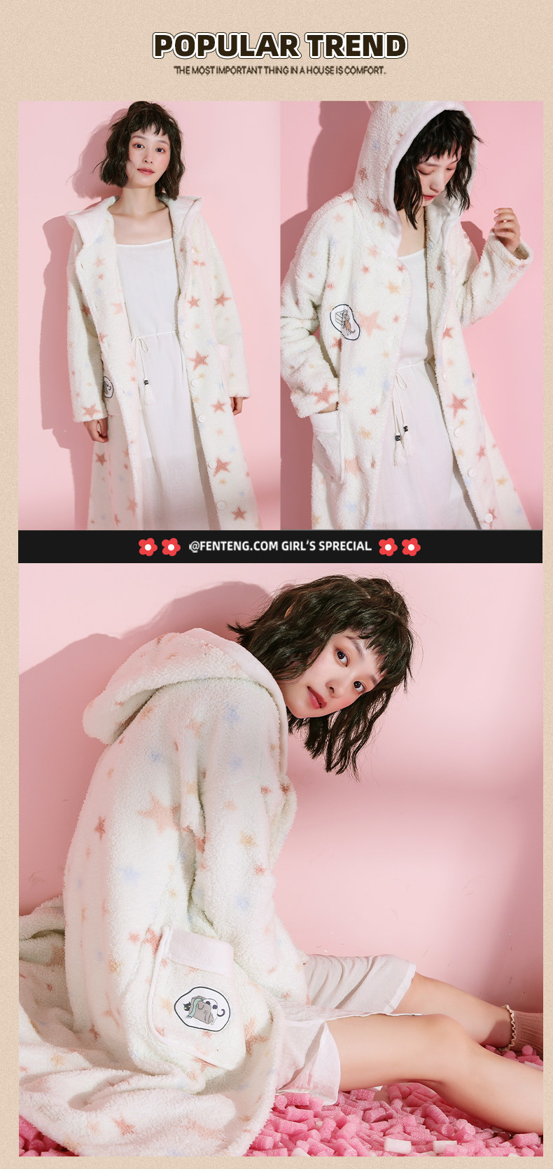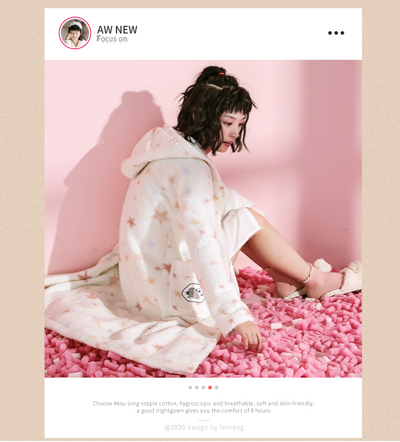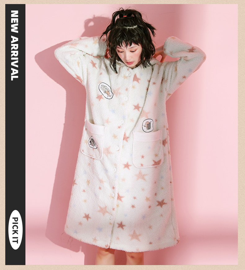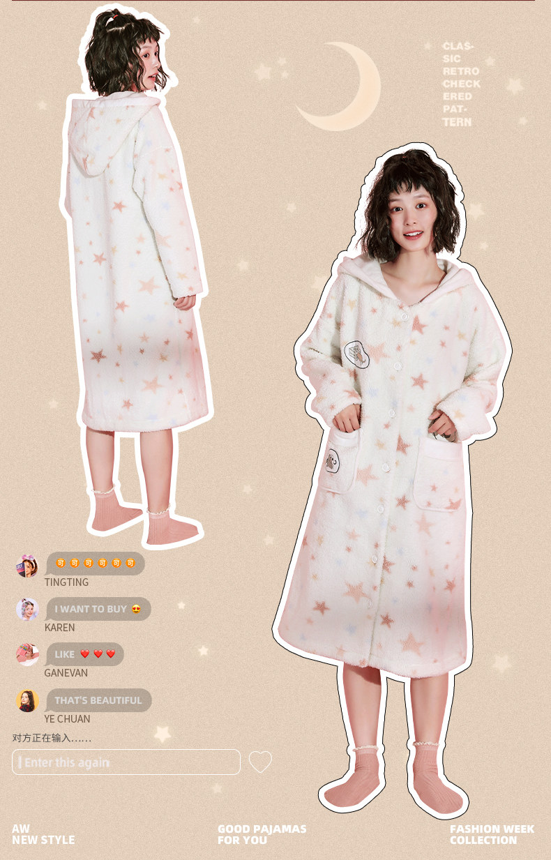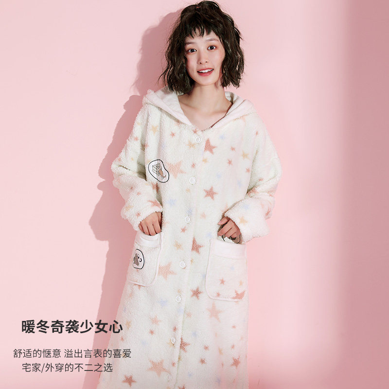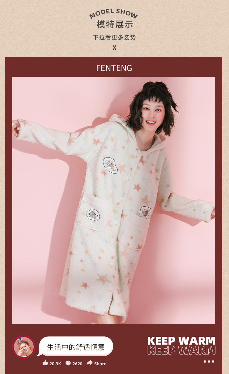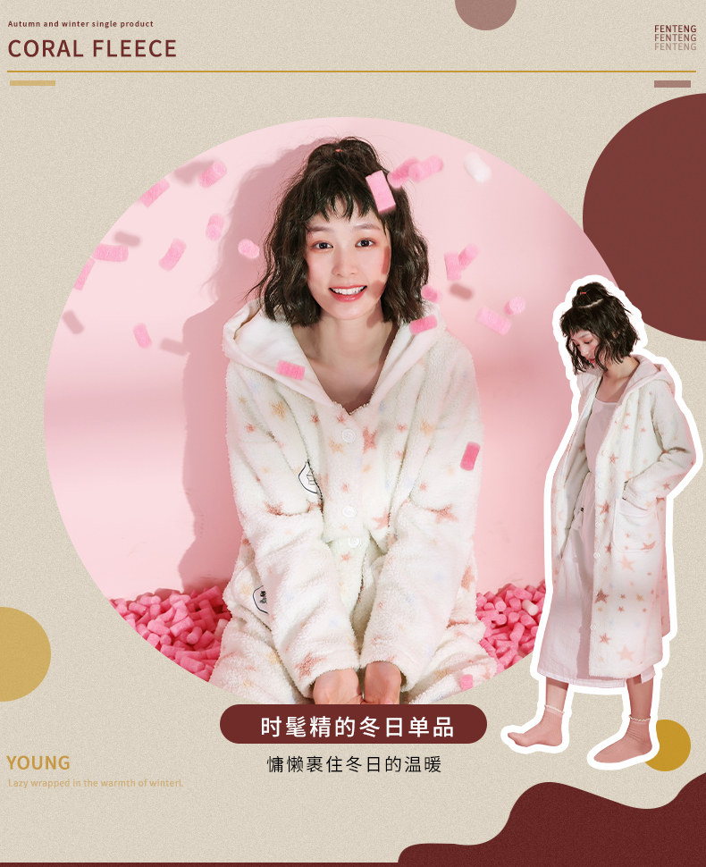 芬腾 Коралловая бархатная демисезонная пижама, длинный милый зимний банный халат