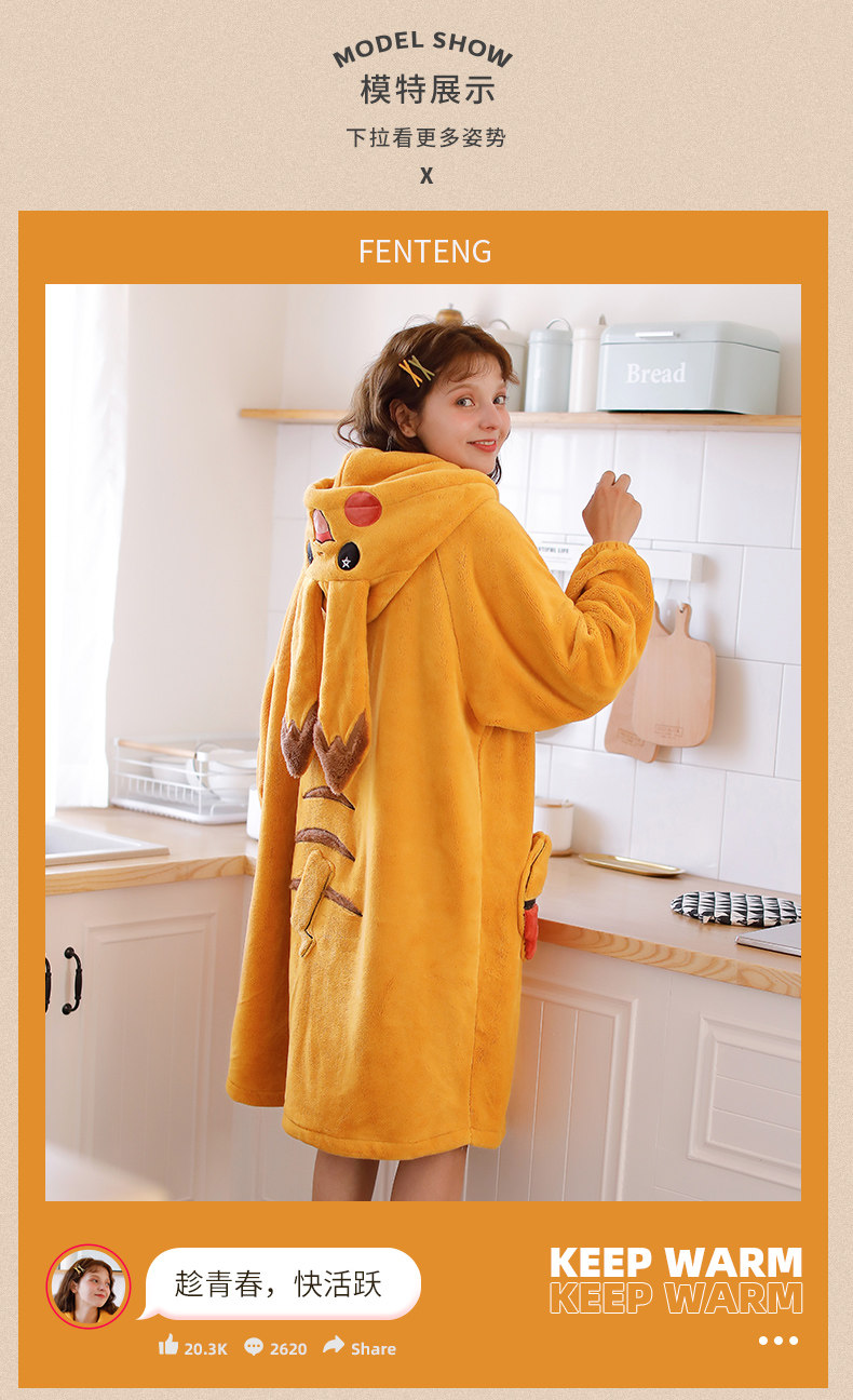 芬腾 Бархатный демисезонный коралловый зимний удерживающий тепло банный халат, бархатная пижама, увеличенная толщина