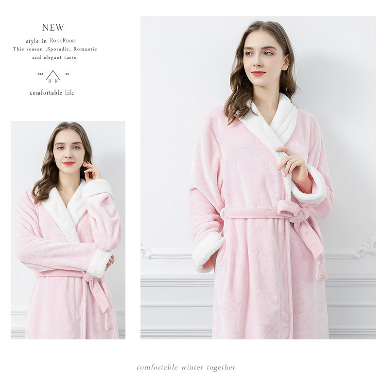 Демисезонный банный халат, удерживающая тепло фланелевая длинная цветная коралловая бархатная пижама, большой размер