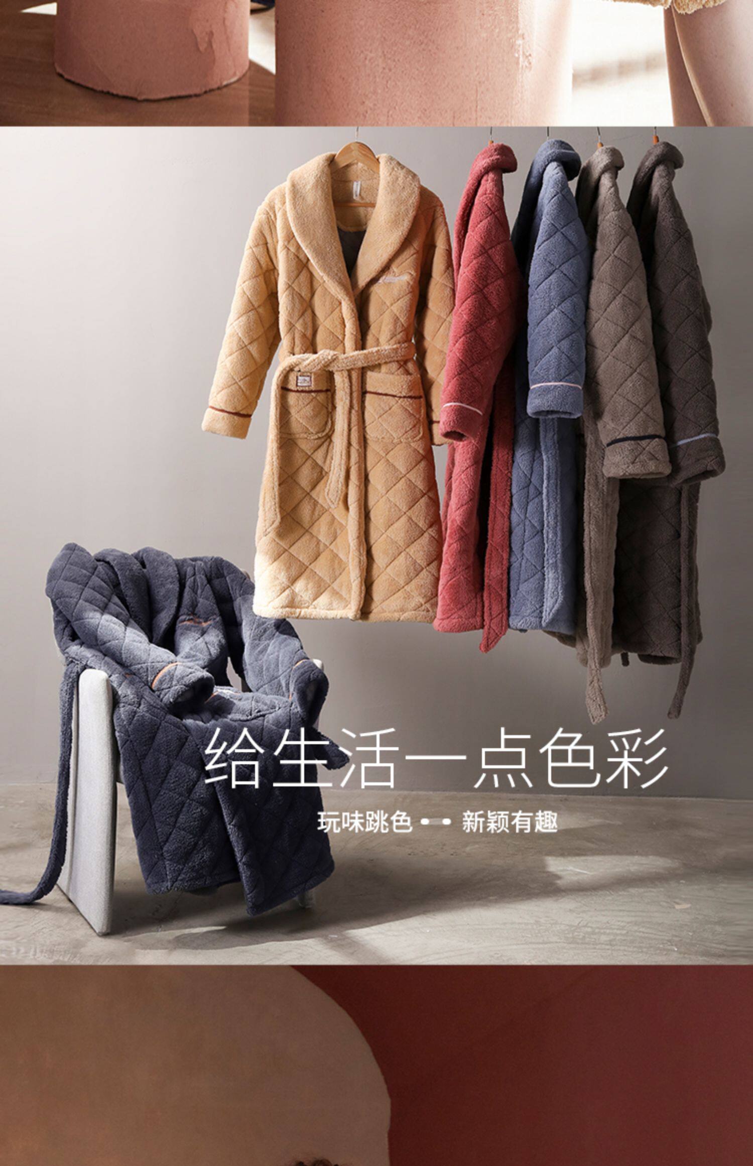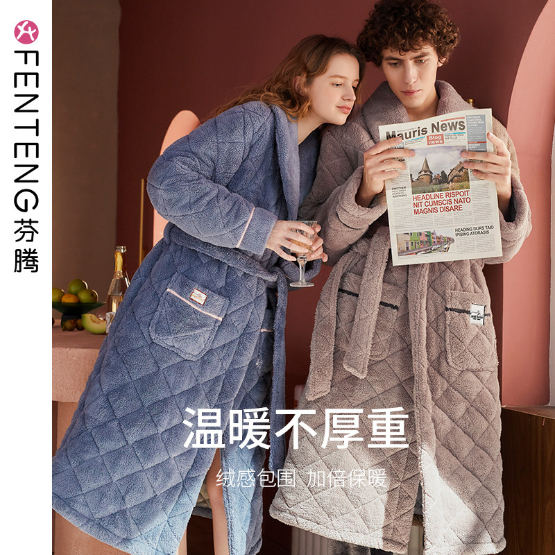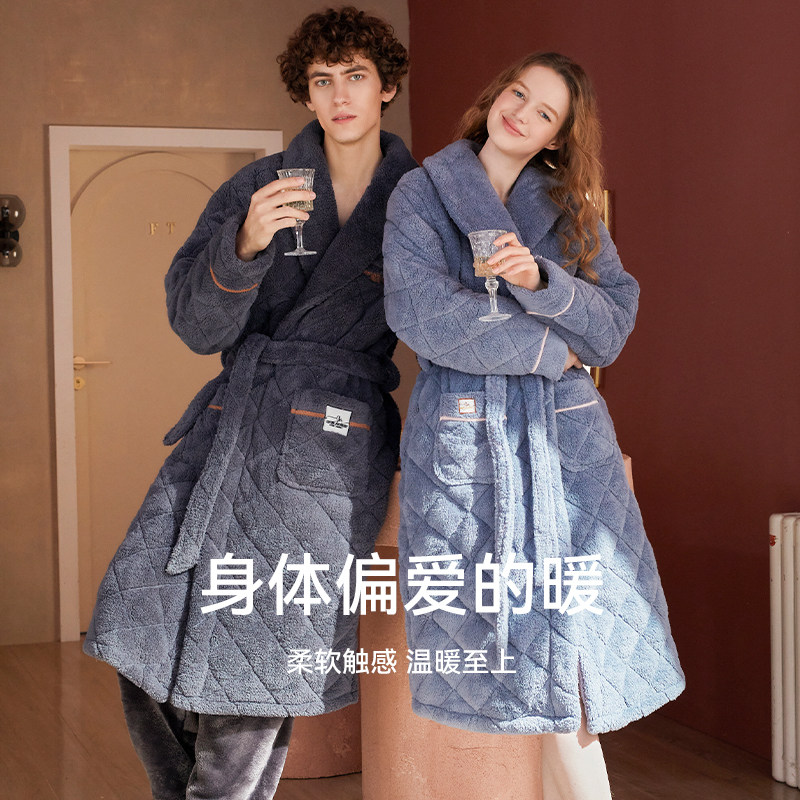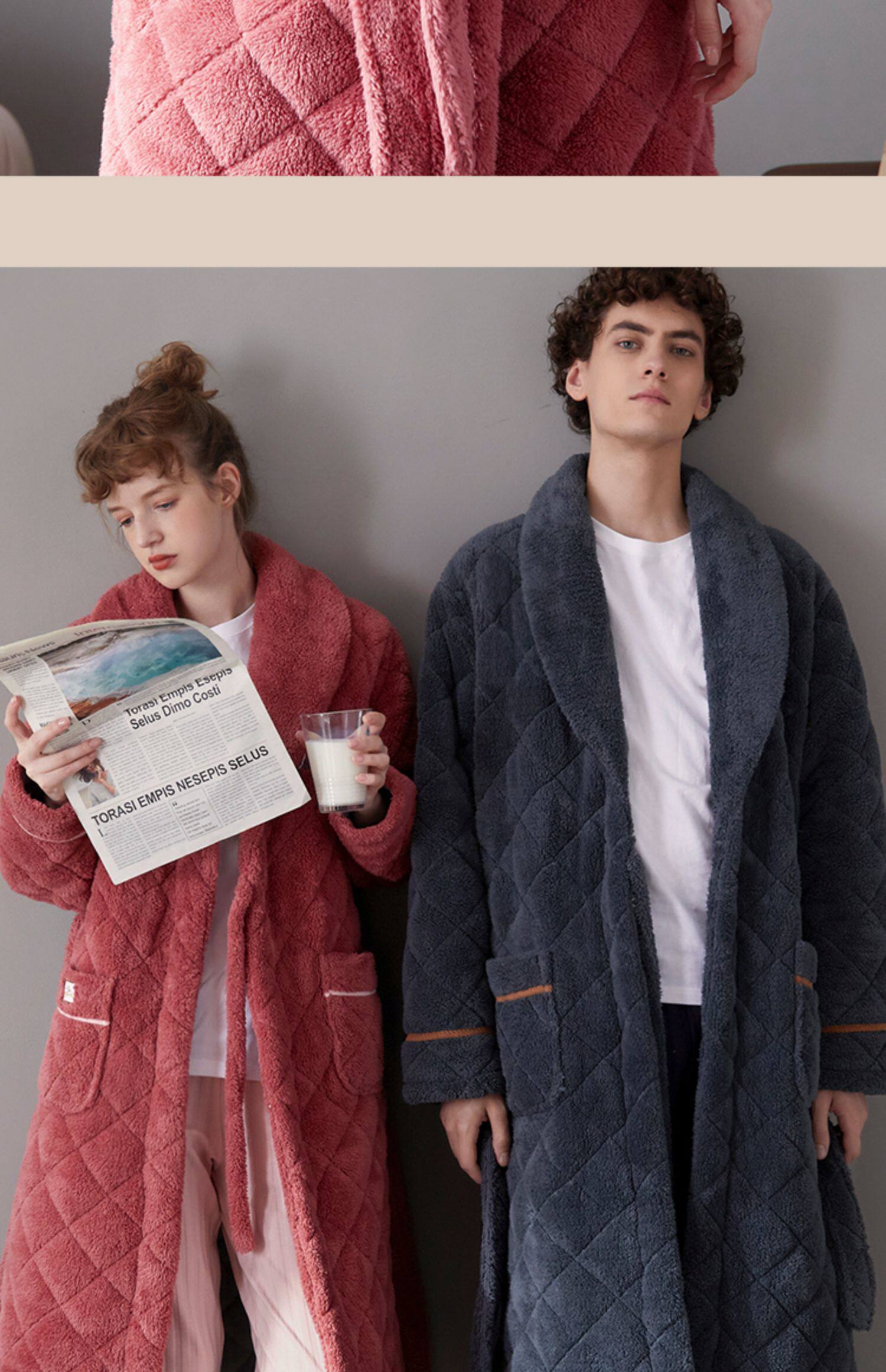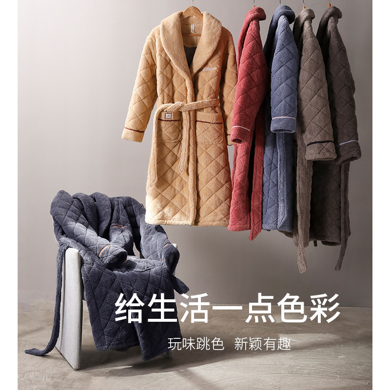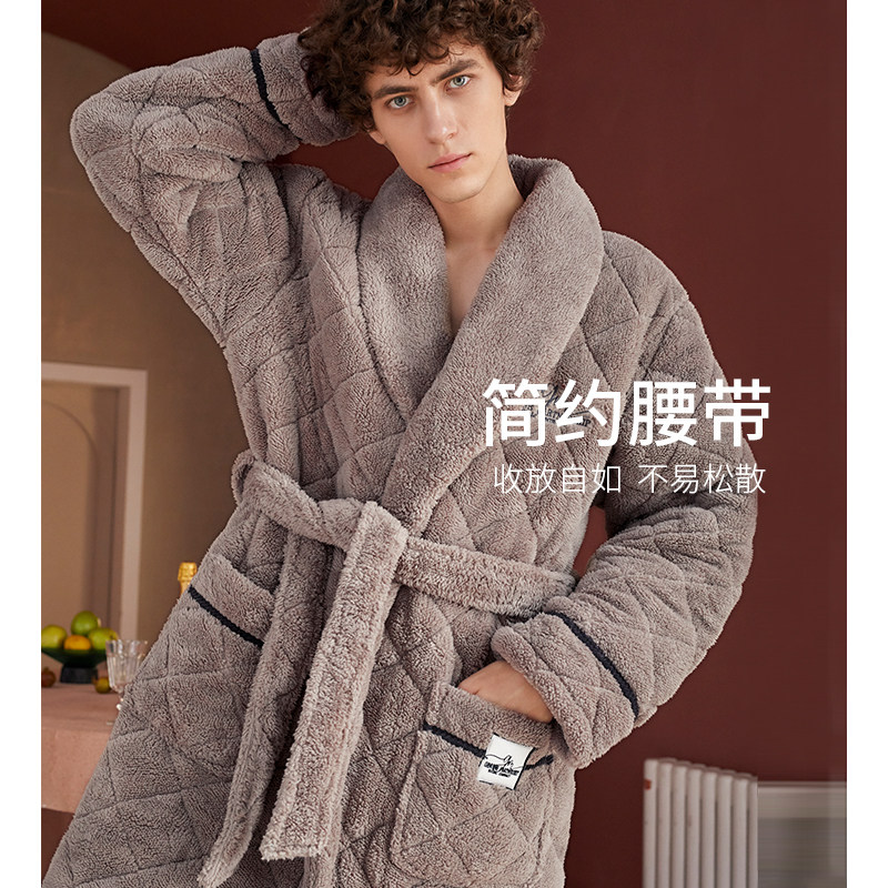 Стеганый коралловый бархатный зимний банный халат, мужская длинная утепленная куртка, увеличенная толщина, для влюбленных