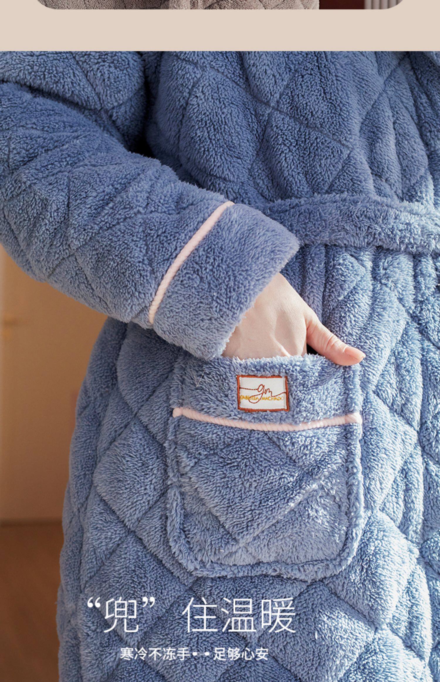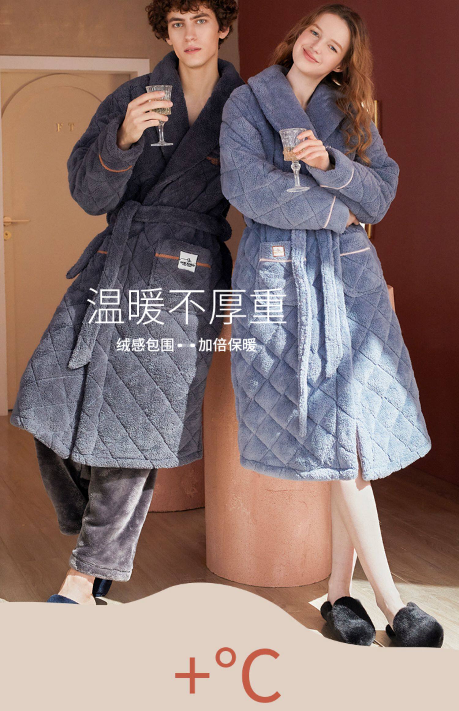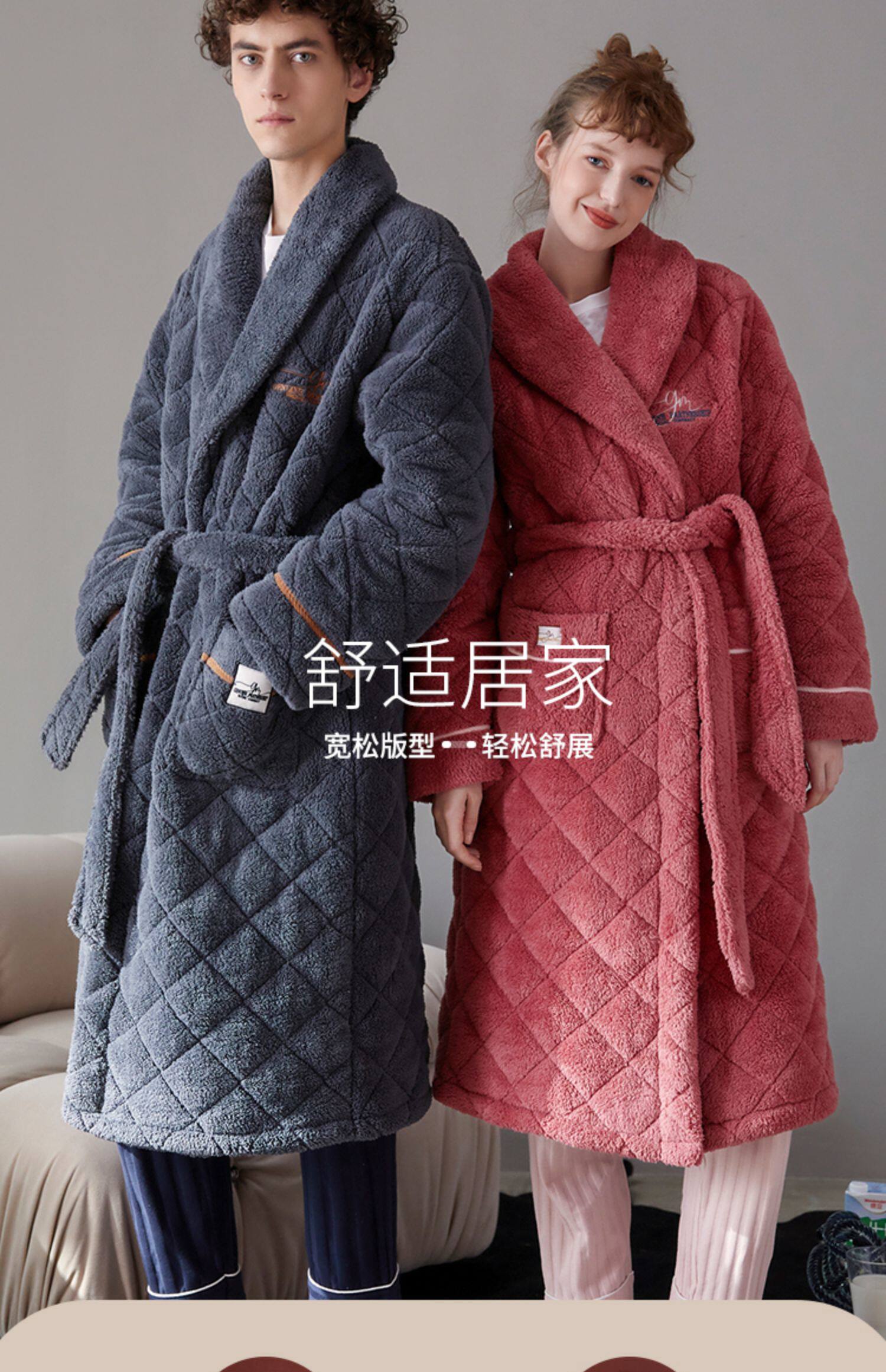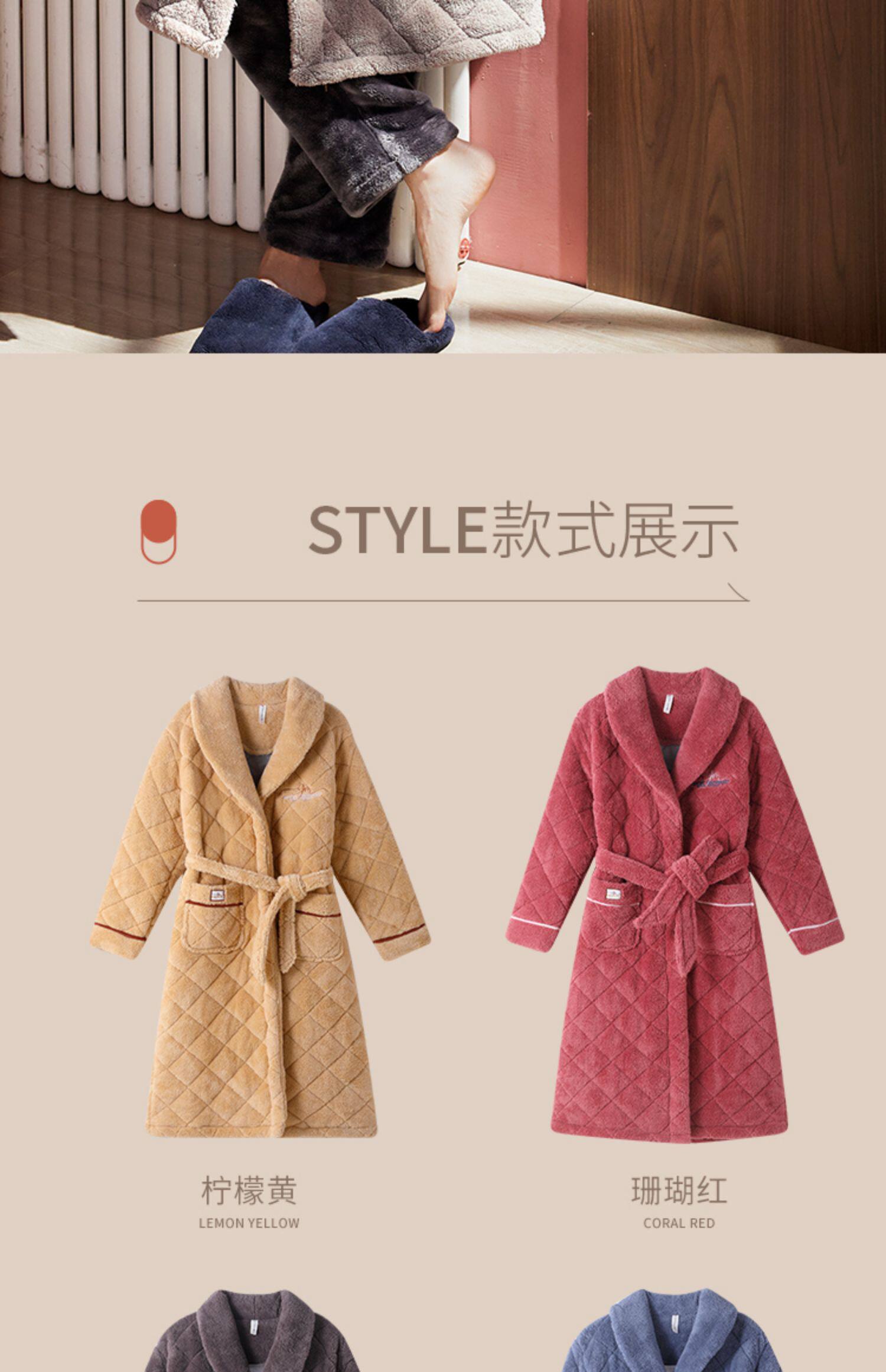 Стеганый коралловый бархатный зимний банный халат, мужская длинная утепленная куртка, увеличенная толщина, для влюбленных