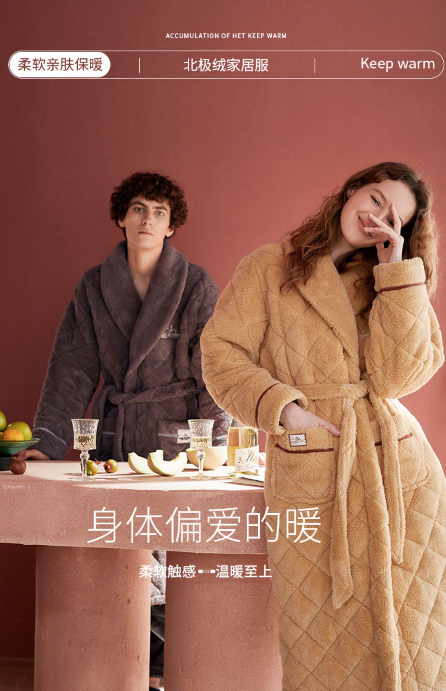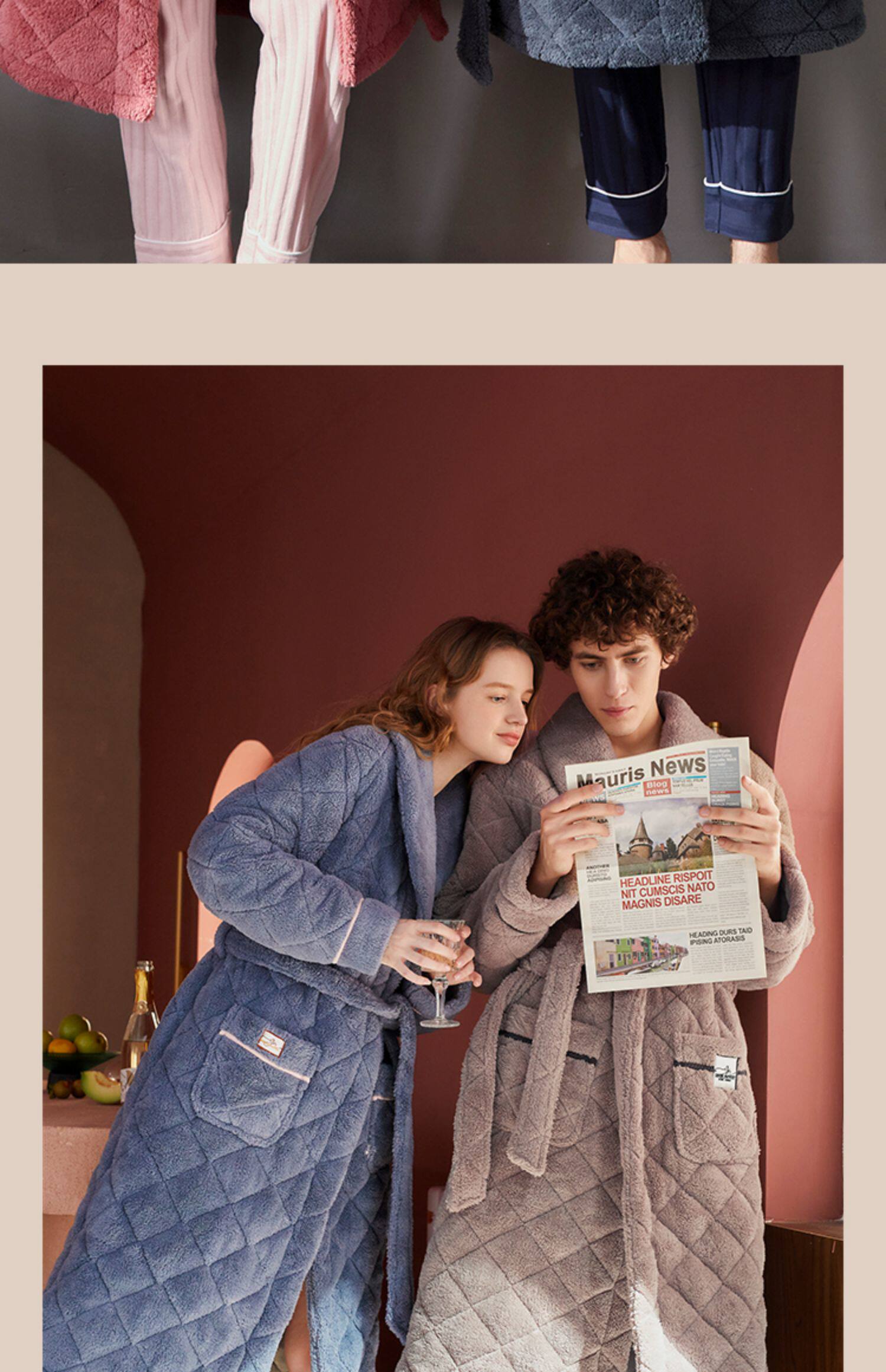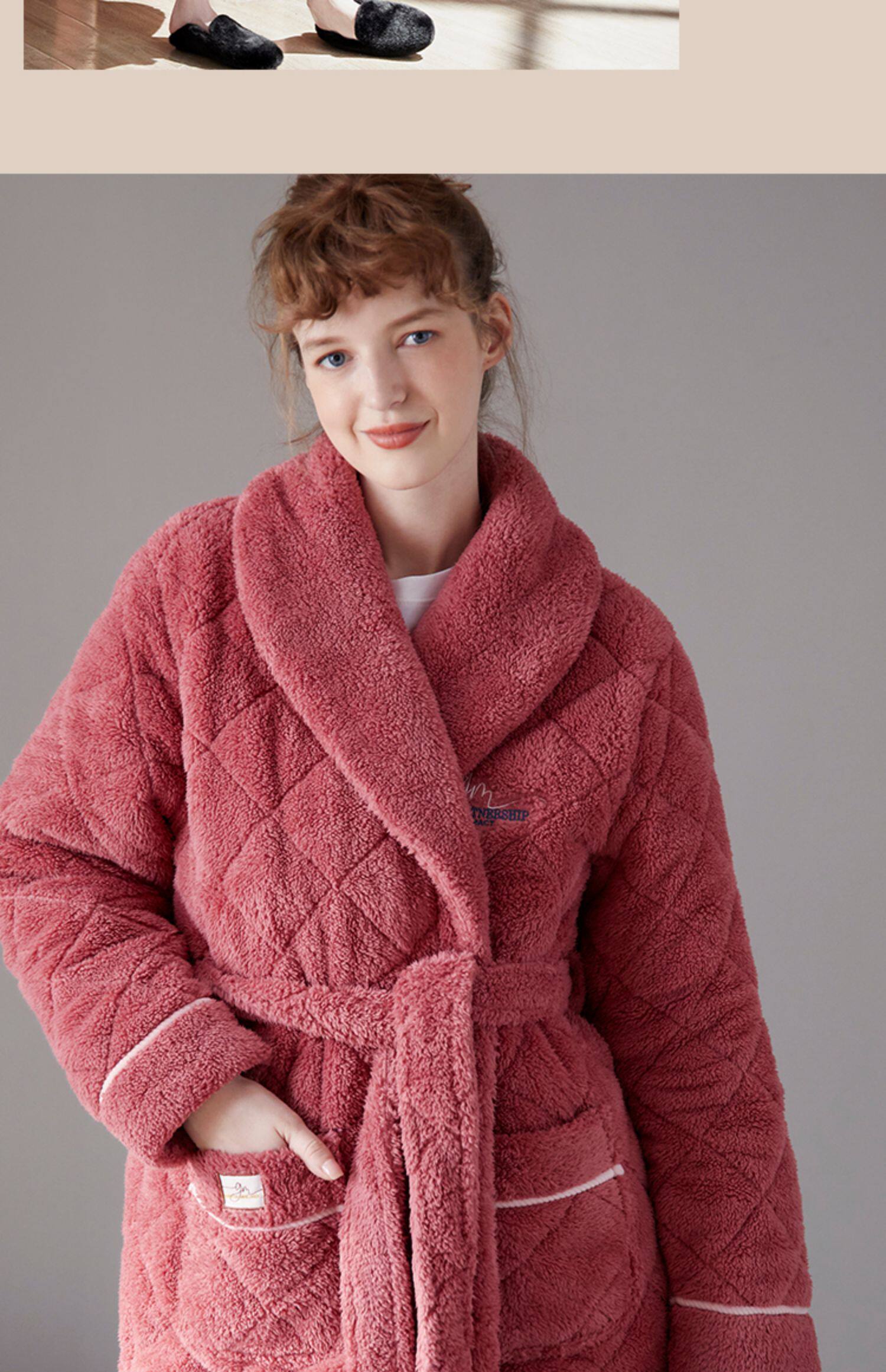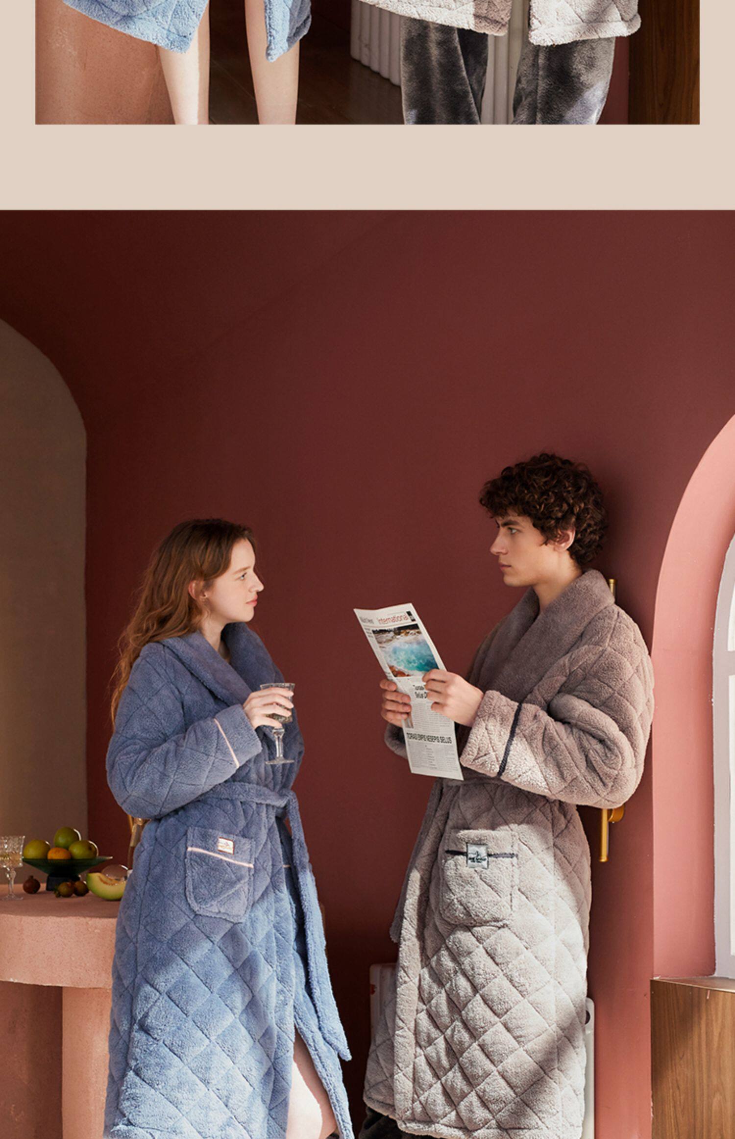 Стеганый коралловый бархатный зимний банный халат, мужская длинная утепленная куртка, увеличенная толщина, для влюбленных