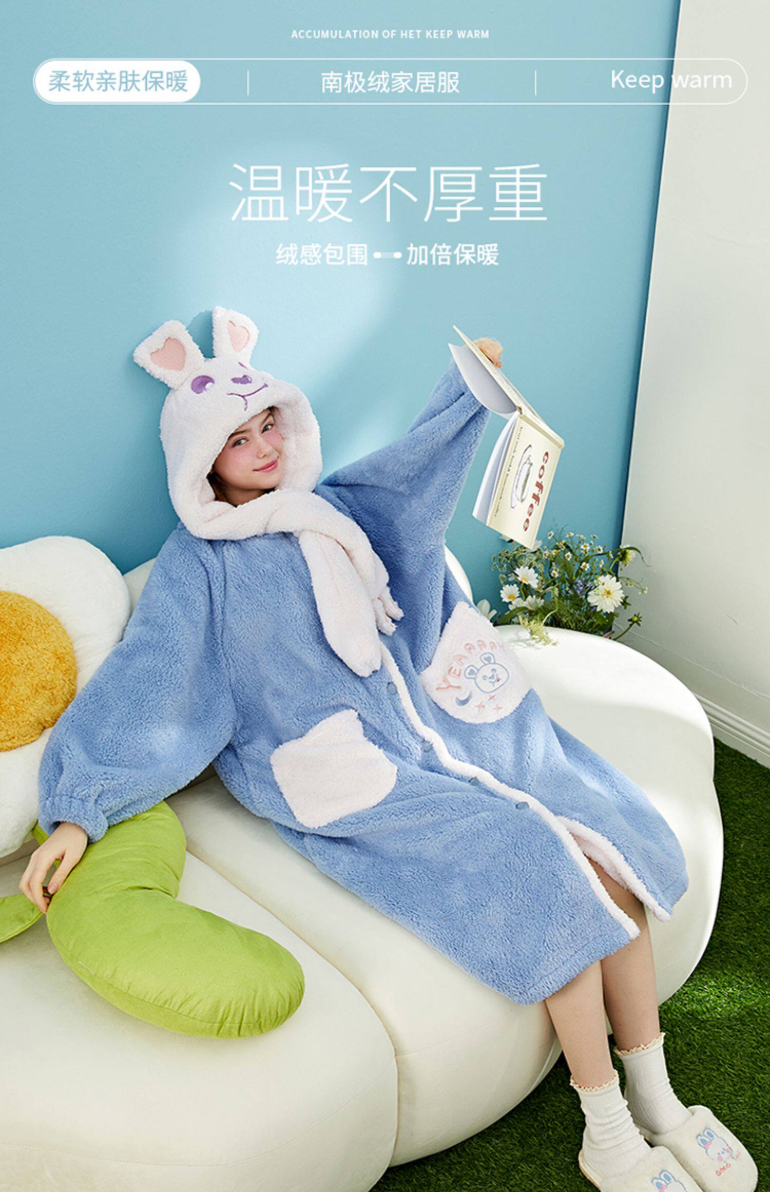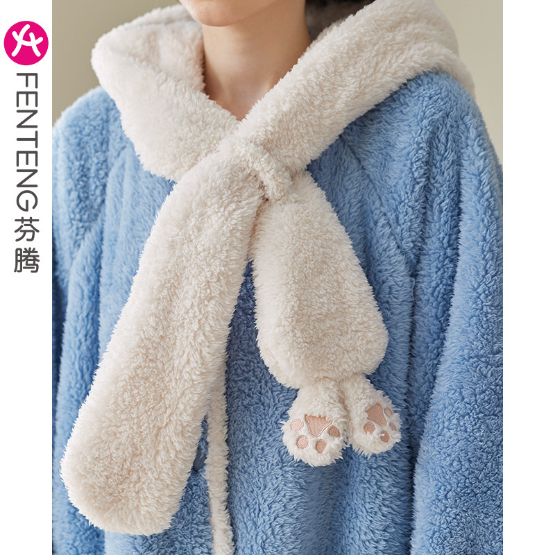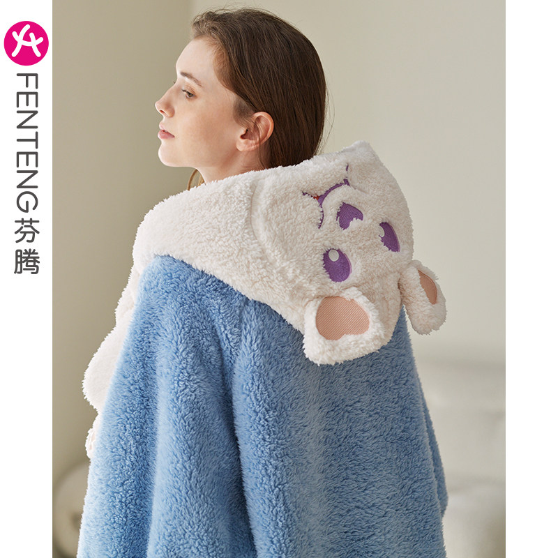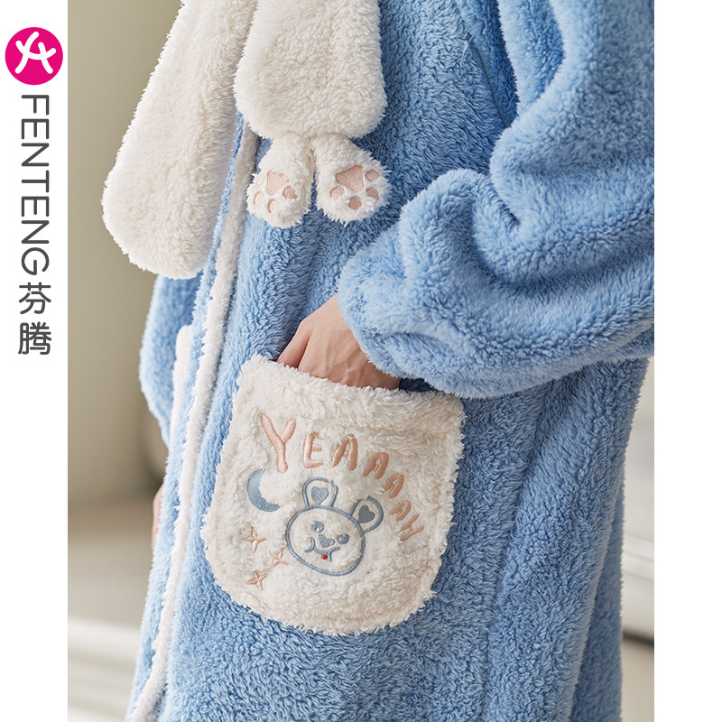 Бархатный банный халат, демисезонная коралловая бархатная мультяшная пижама, для влюбленных