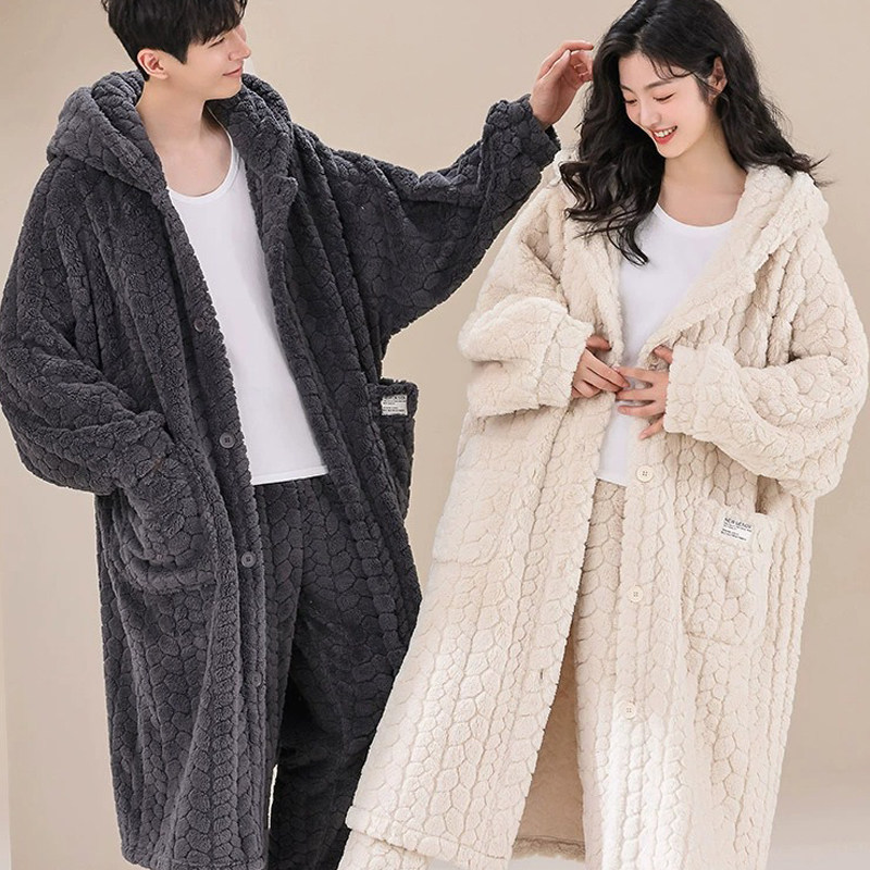 Коралловый бархатный длинный демисезонный утепленный банный халат, фланелевая пижама для влюбленных, комплект