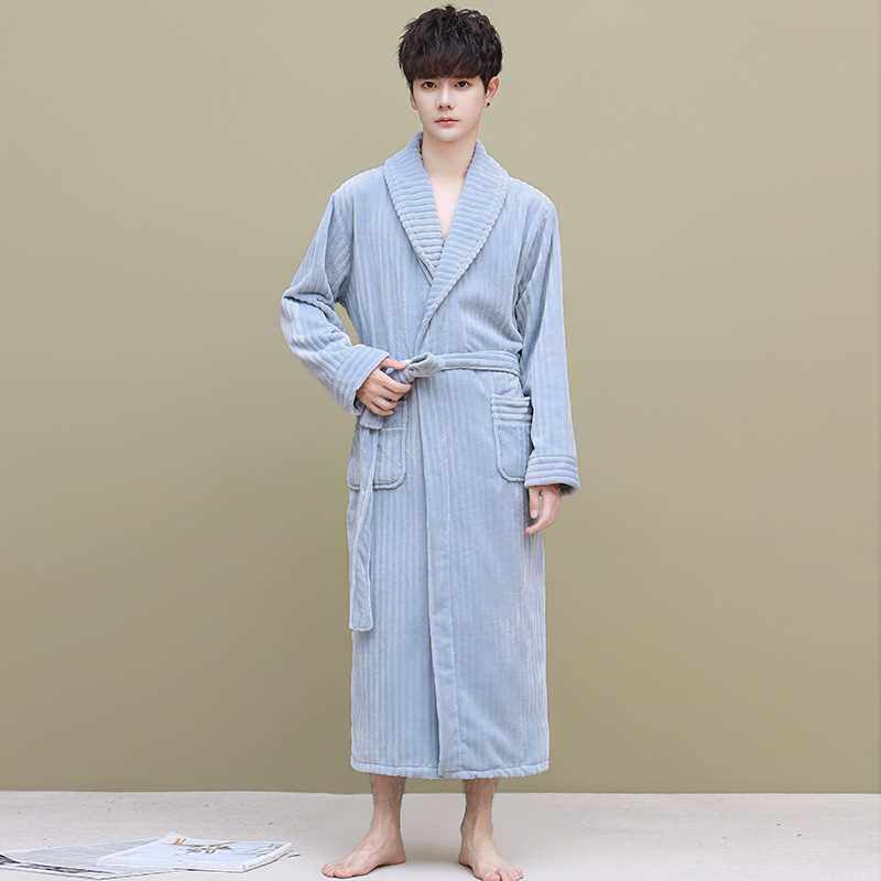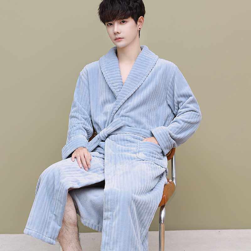 Коралловый бархатный демисезонный утепленный банный халат, фланелевая пижама, увеличенная толщина, большой размер