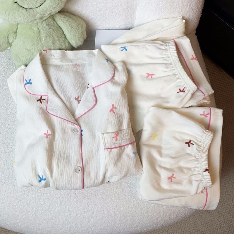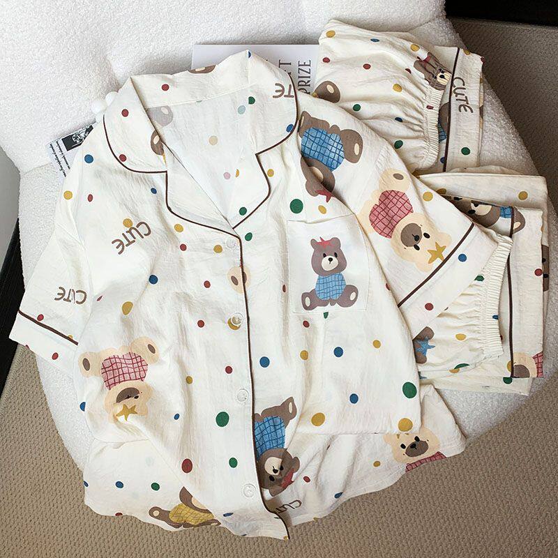 Хлопковая летняя пижама, тонкий осенний милый комплект для школьников, 100% хлопок, короткий рукав, 3 предмета