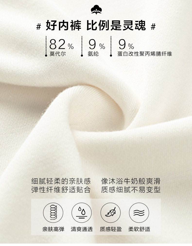 Ткань:82%модальный, 9%модифицированный белок полипропиленовый волокон, 9%спандекс
