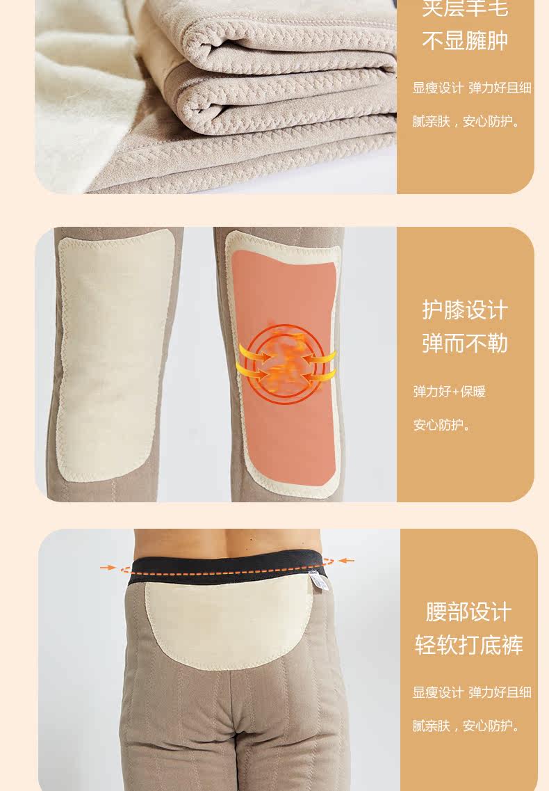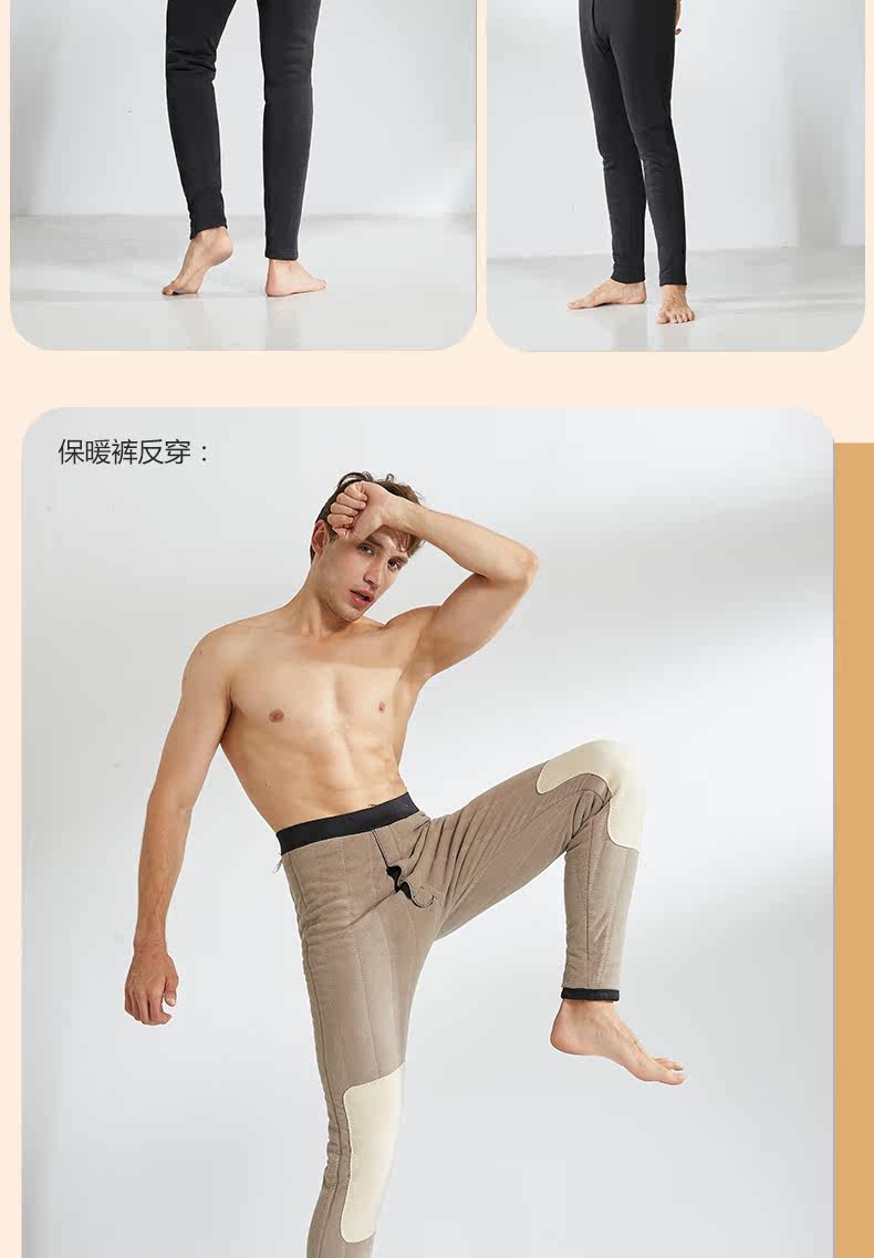 Мужские утепленные зимние штаны, шерстяные базовые наколенники, шерстяное бархатное термобелье, облегающий крой