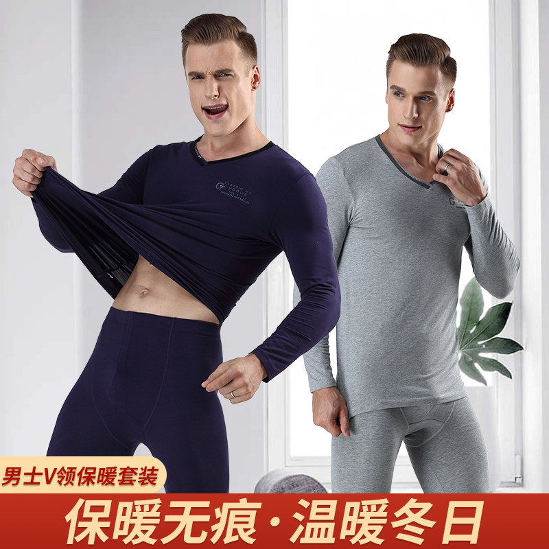 Удерживающее тепло тонкое нижнее белье, термобелье, комплект, хлопковый свитер, V-образный вырез, большой размер