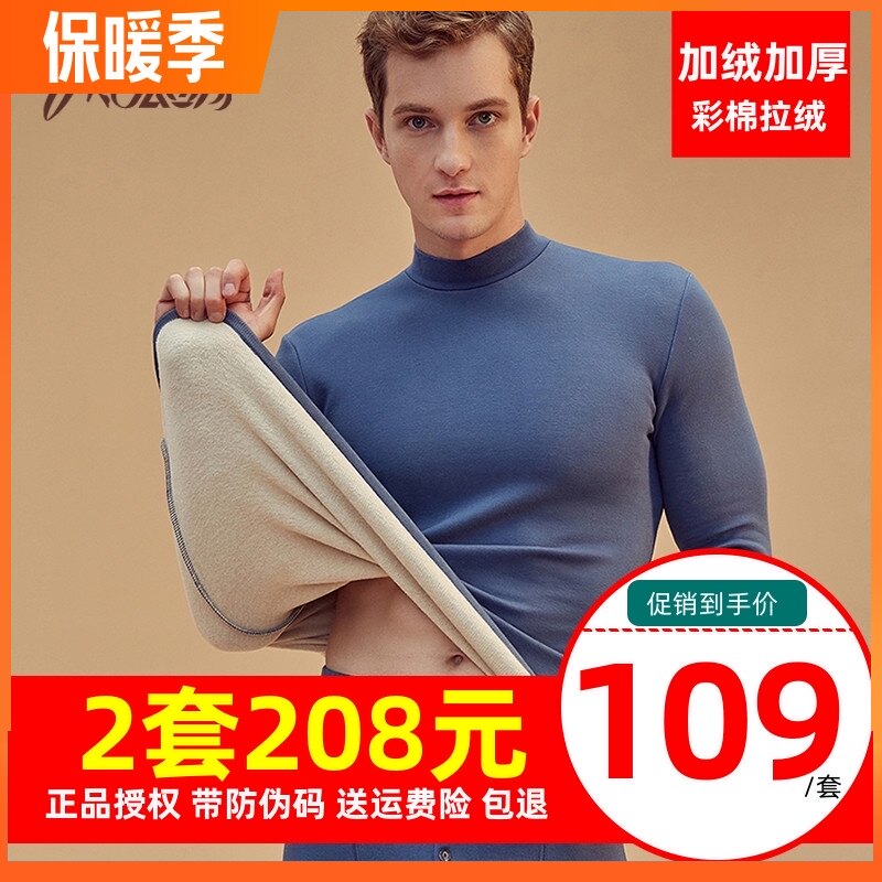 Удерживающее тепло нижнее белье, утепленный комплект, хлопковое бархатное термобелье, высокий воротник