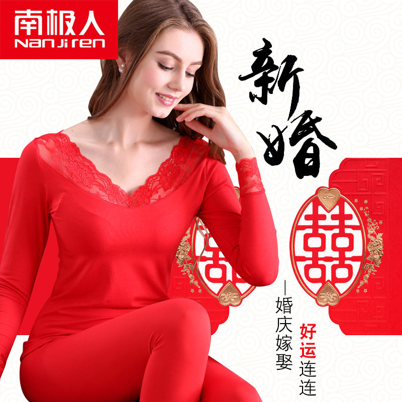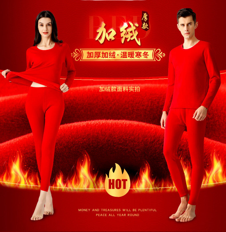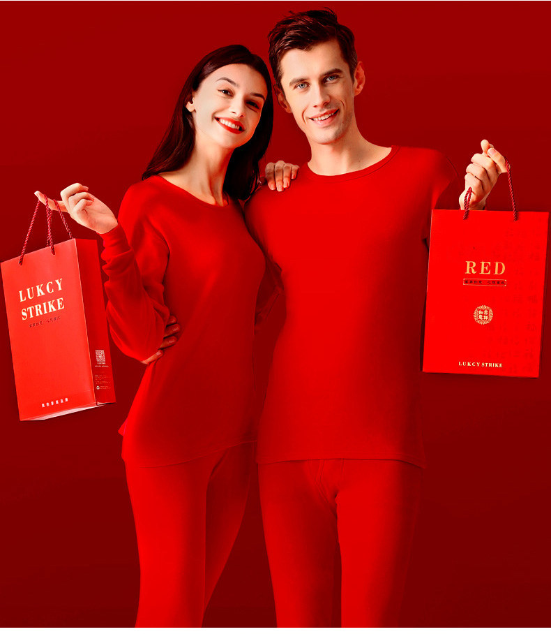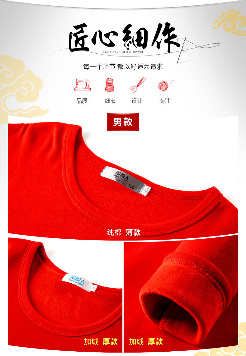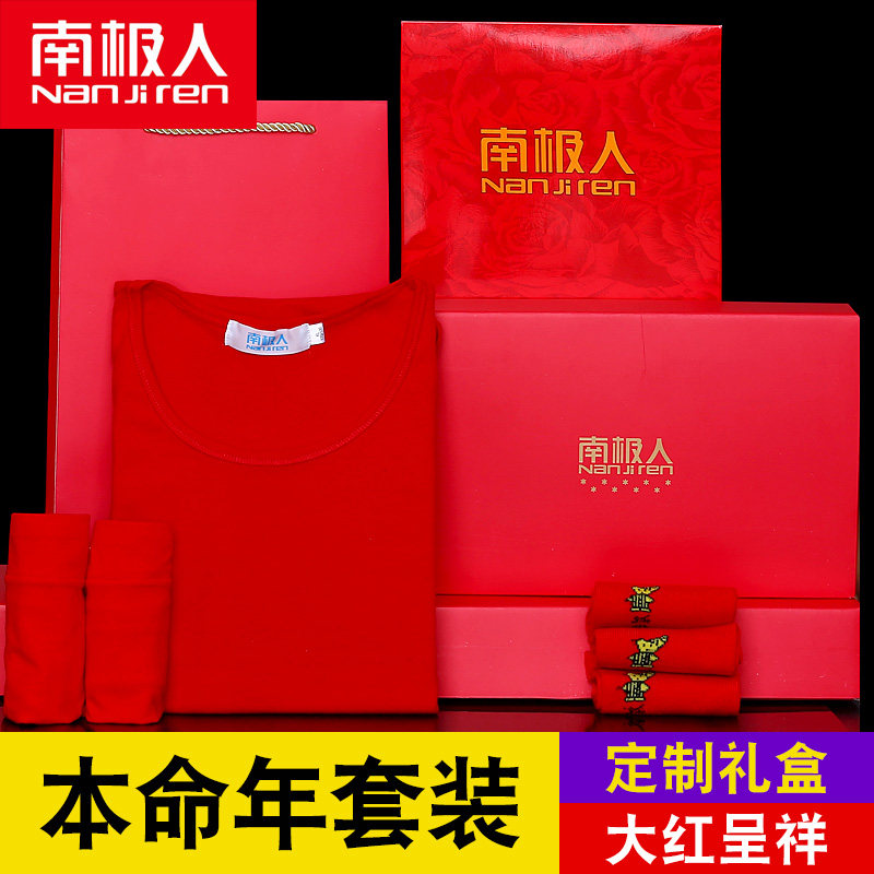 南极人 Удерживающий тепло оберег на день рождения, мужское хлопковое нижнее белье для влюбленных, флисовое термобелье, штаны, красный комплект