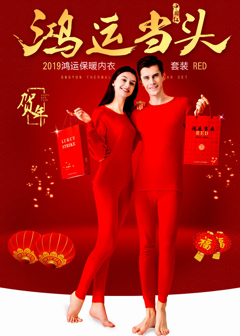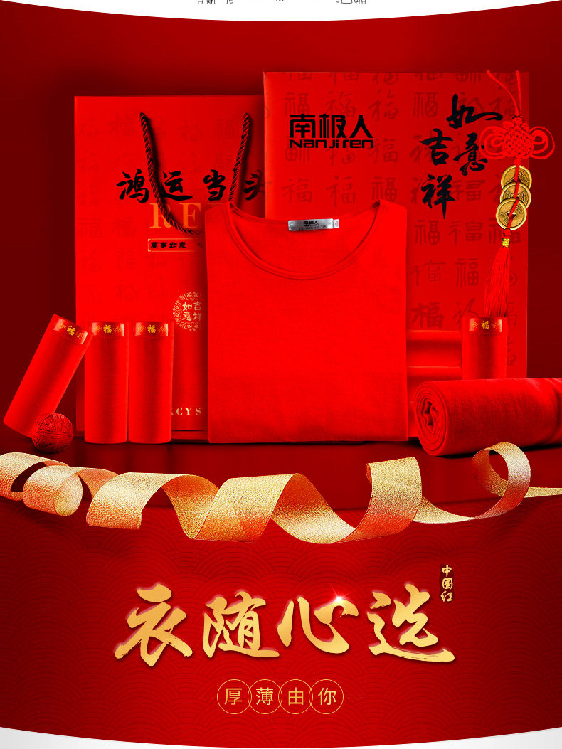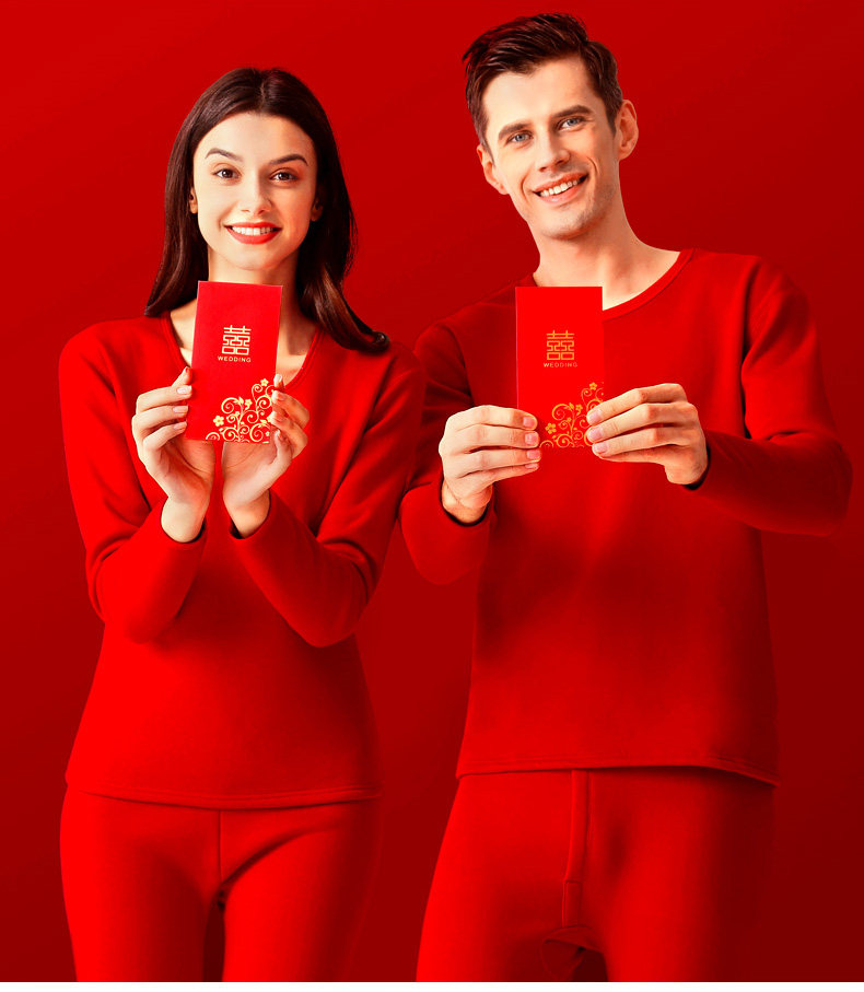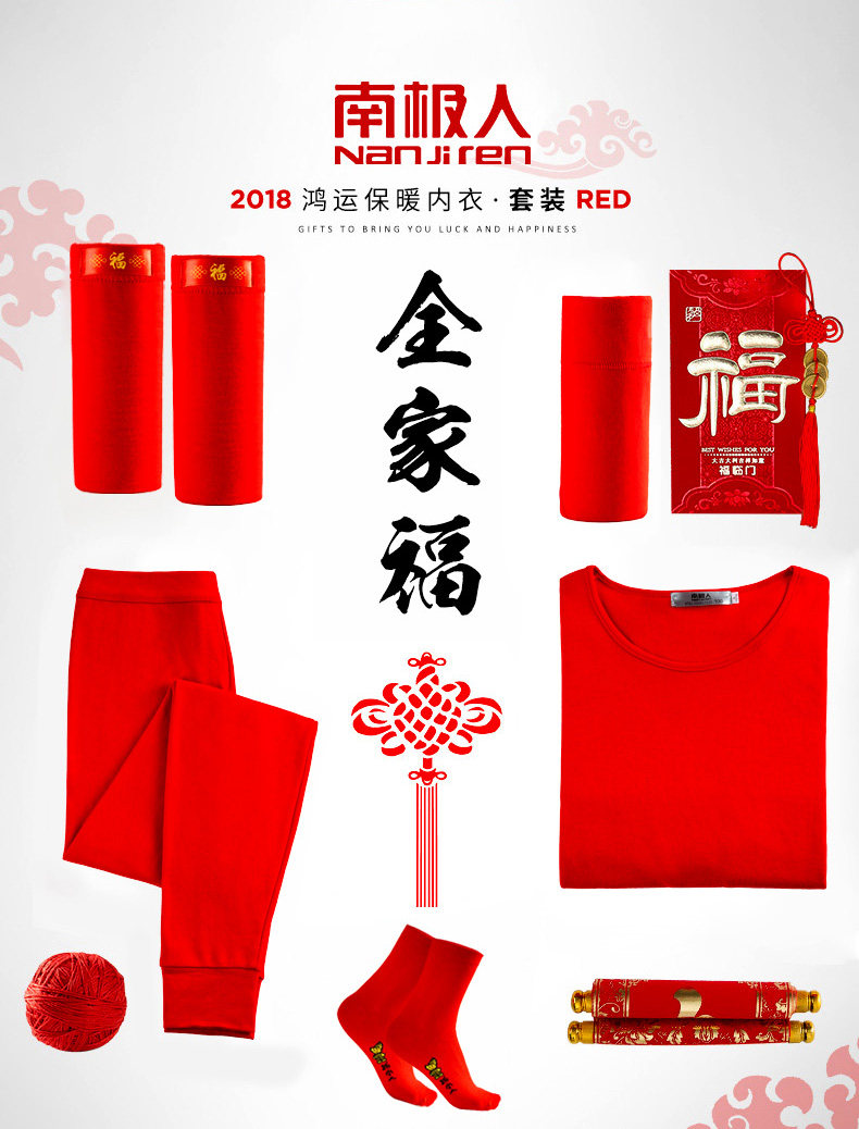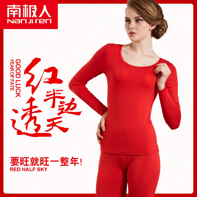 南极人 Удерживающий тепло оберег на день рождения, мужское хлопковое нижнее белье для влюбленных, флисовое термобелье, штаны, красный комплект